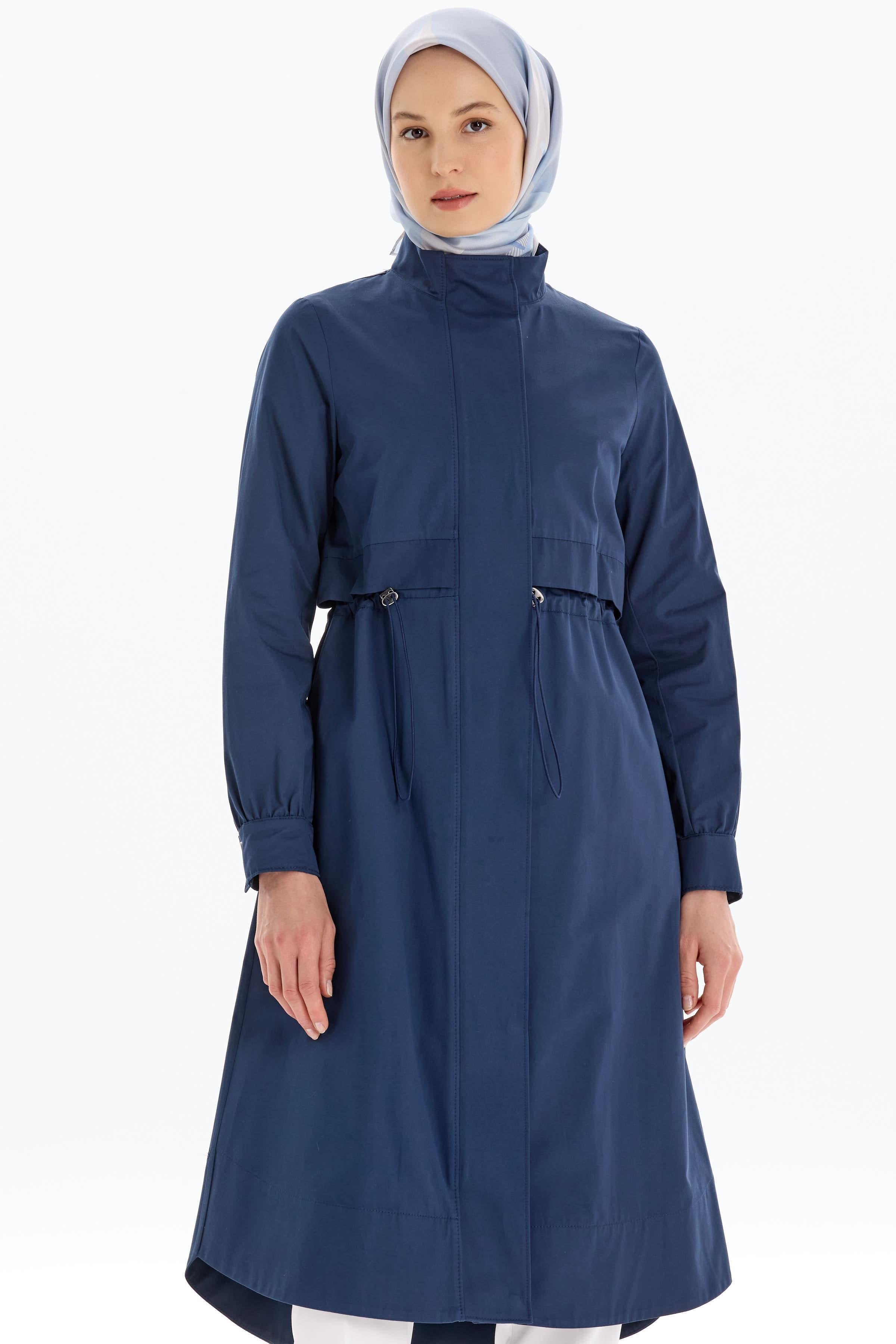 Bel Lastikli Fermuar Kapamalı Trençkot - Lacivert