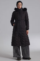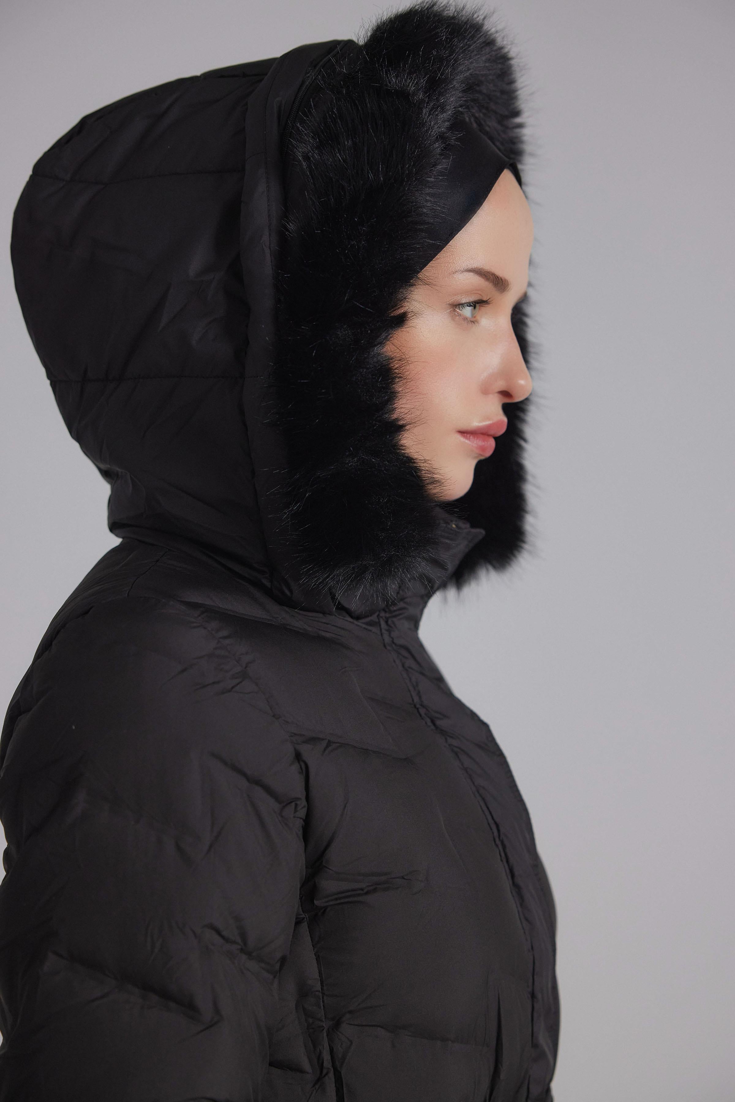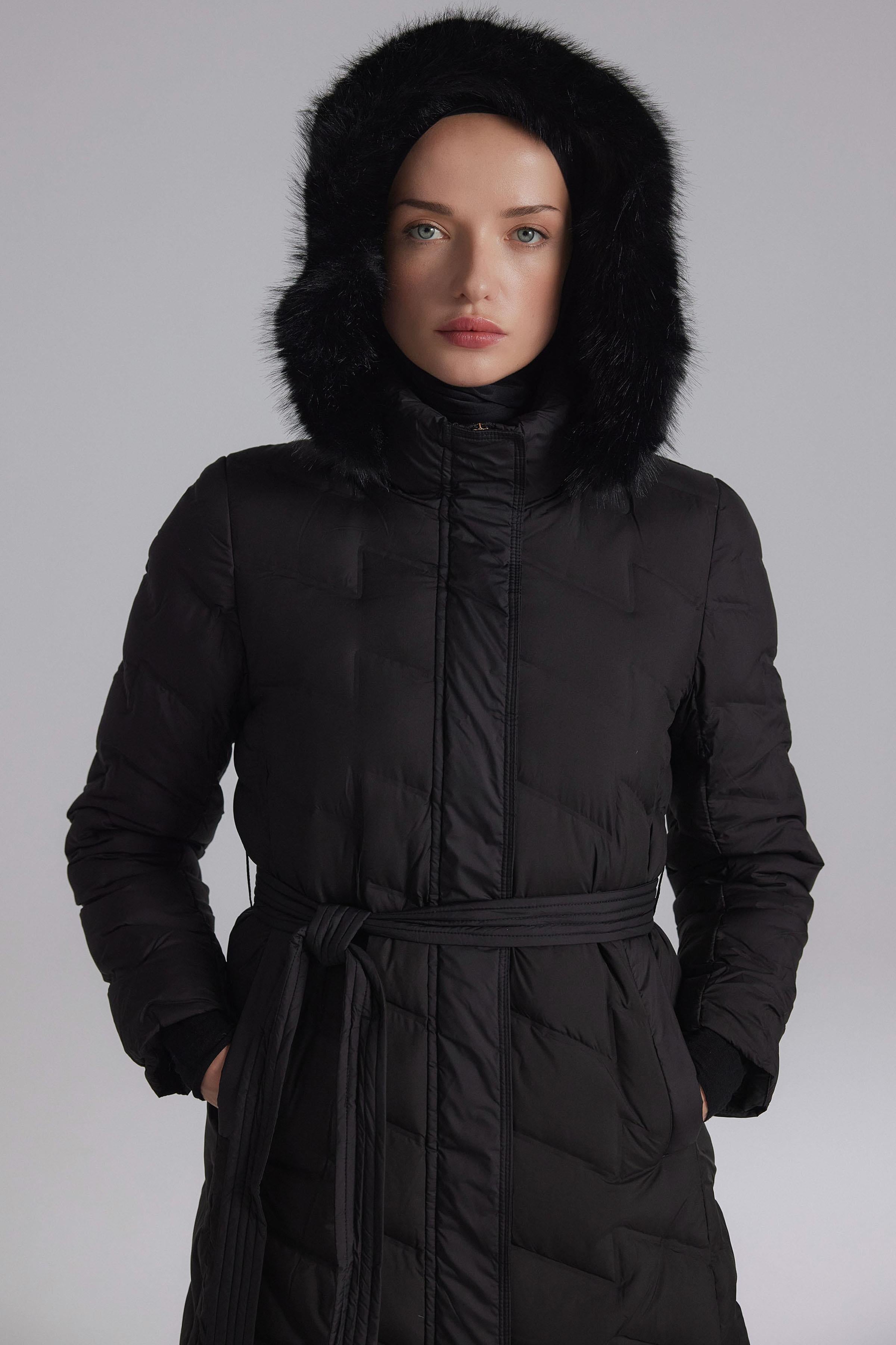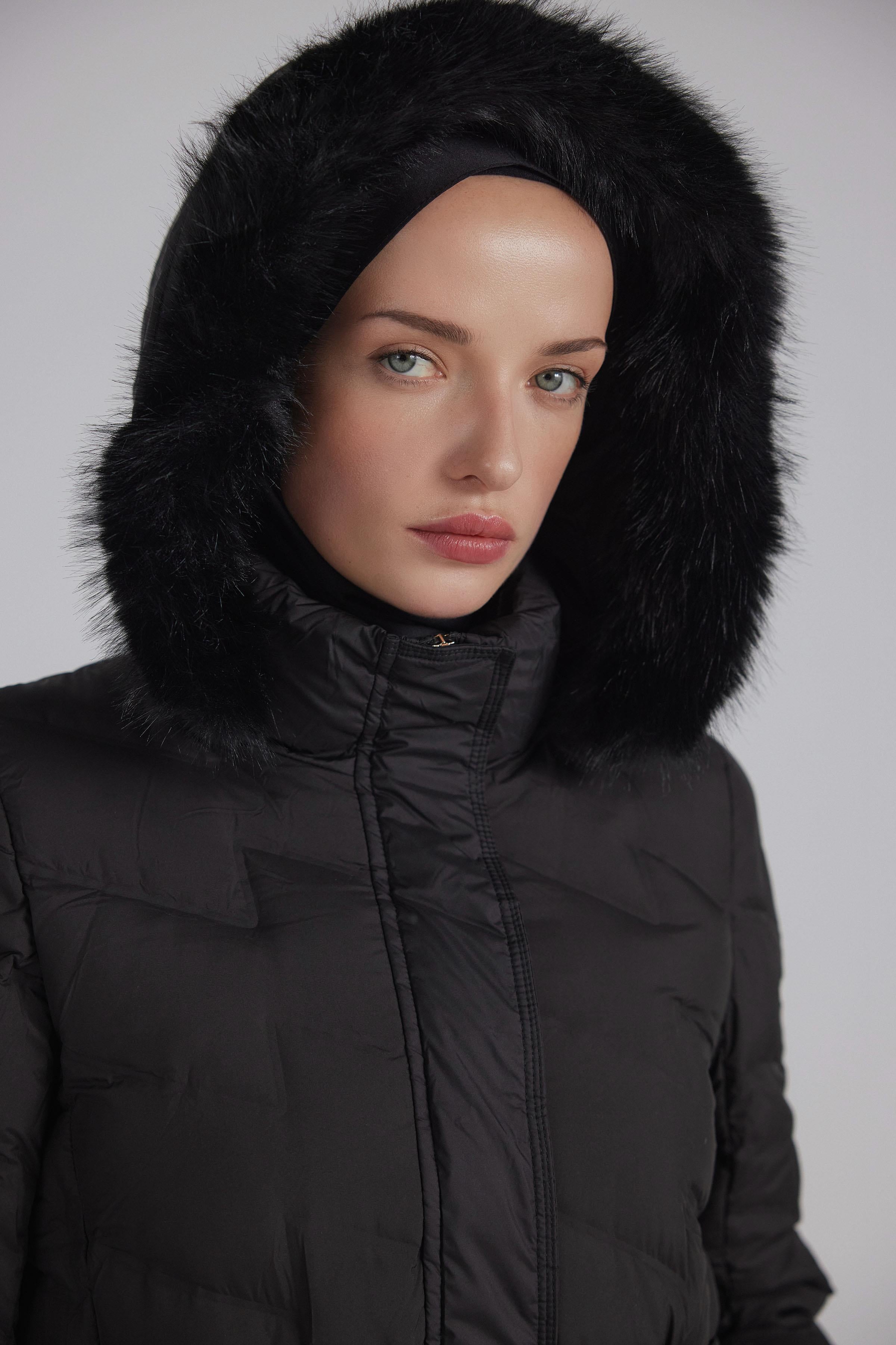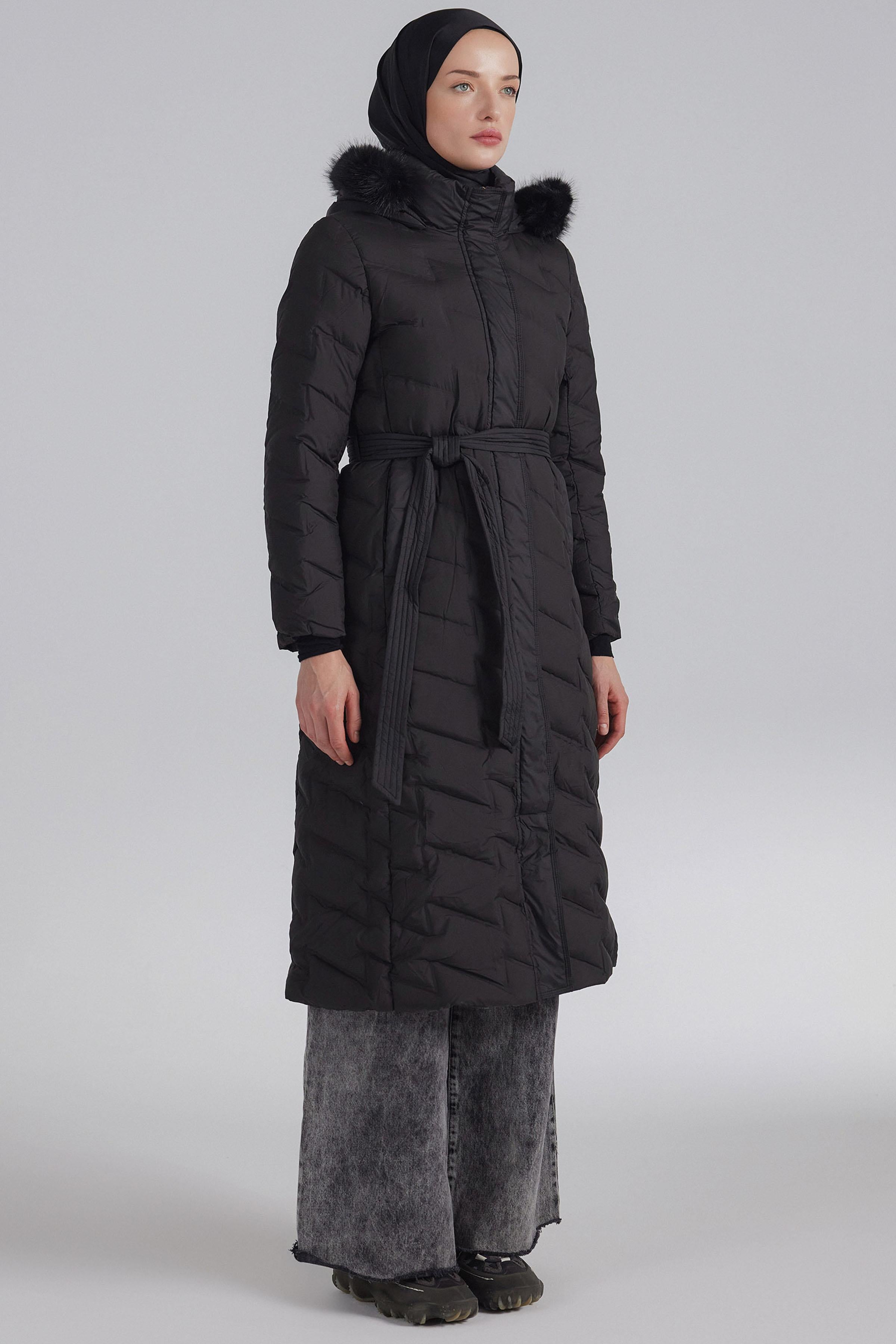 Blok Desenli Kaz Tüyü Kaban - Siyah