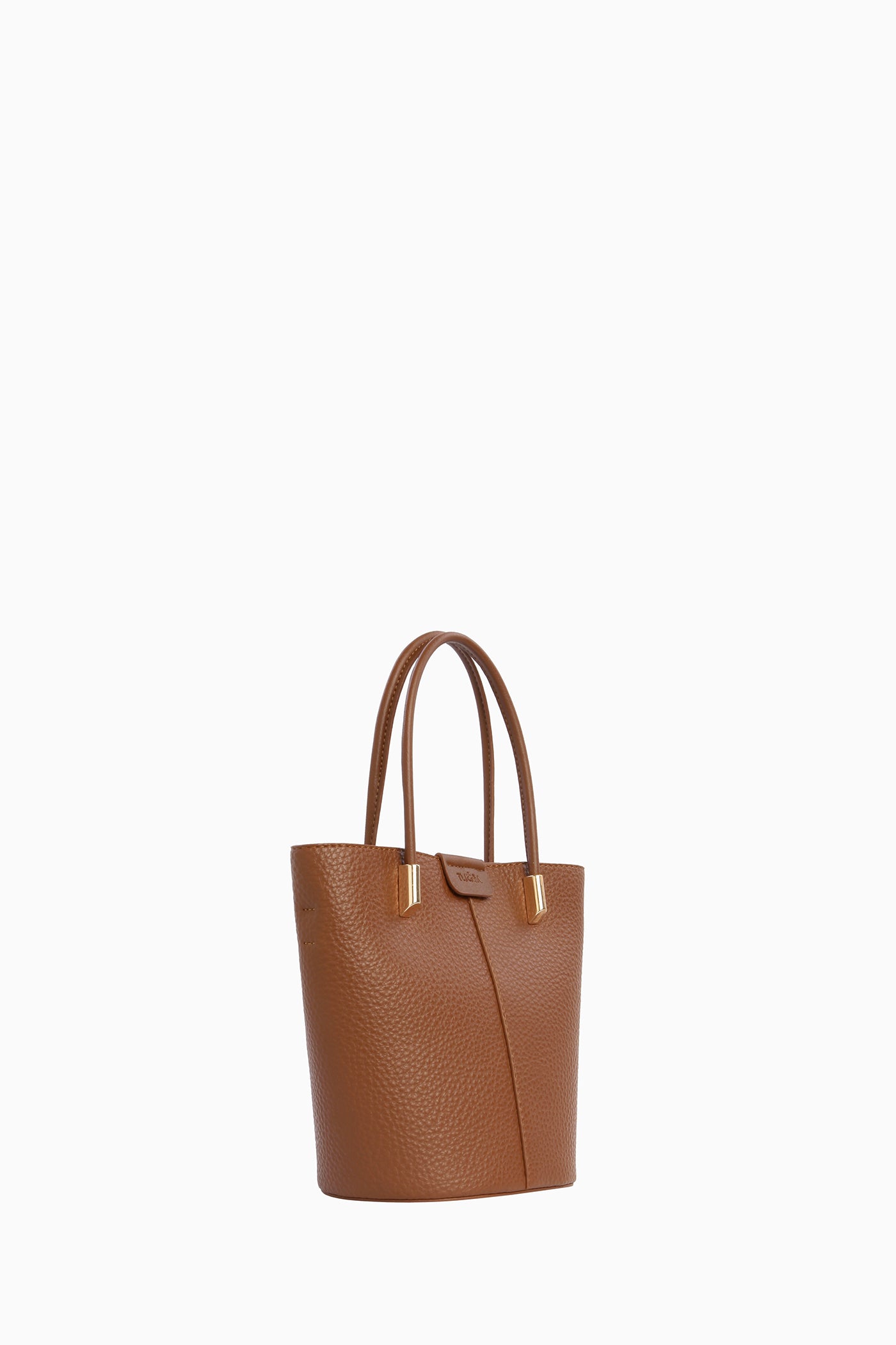 Ortası Dikiş Detaylı Kova Çanta - Taba