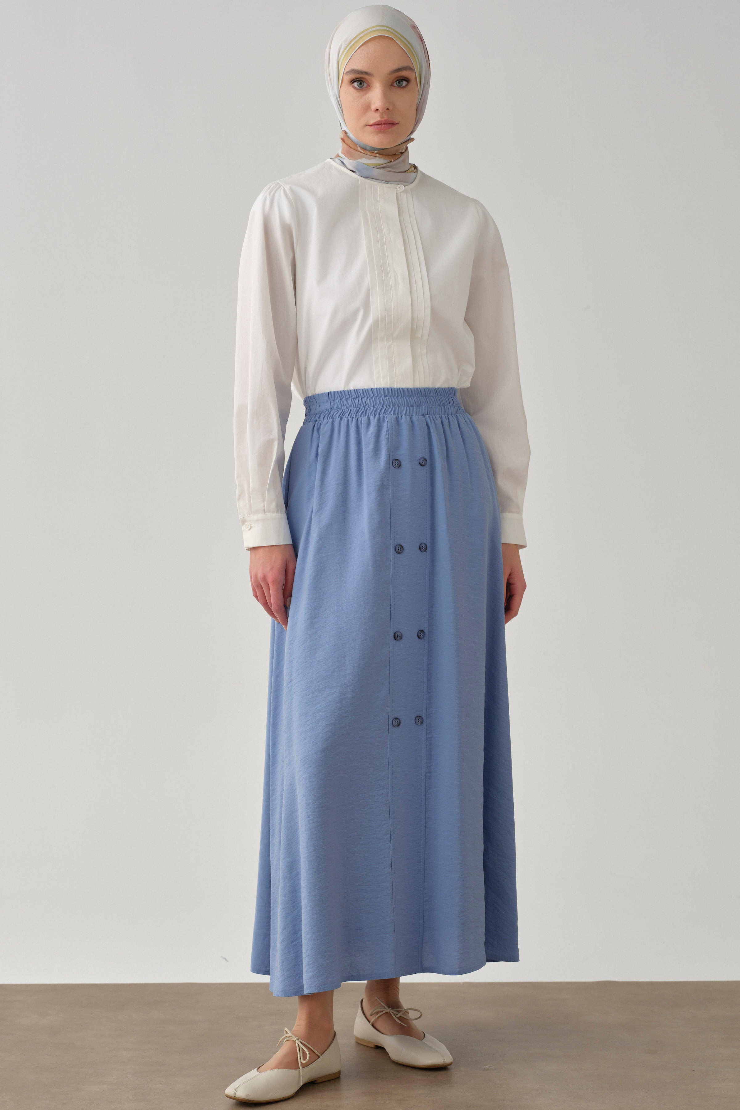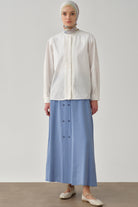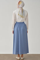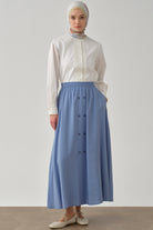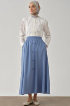 Beli Lastikli Düğmeli Etek - Mavi