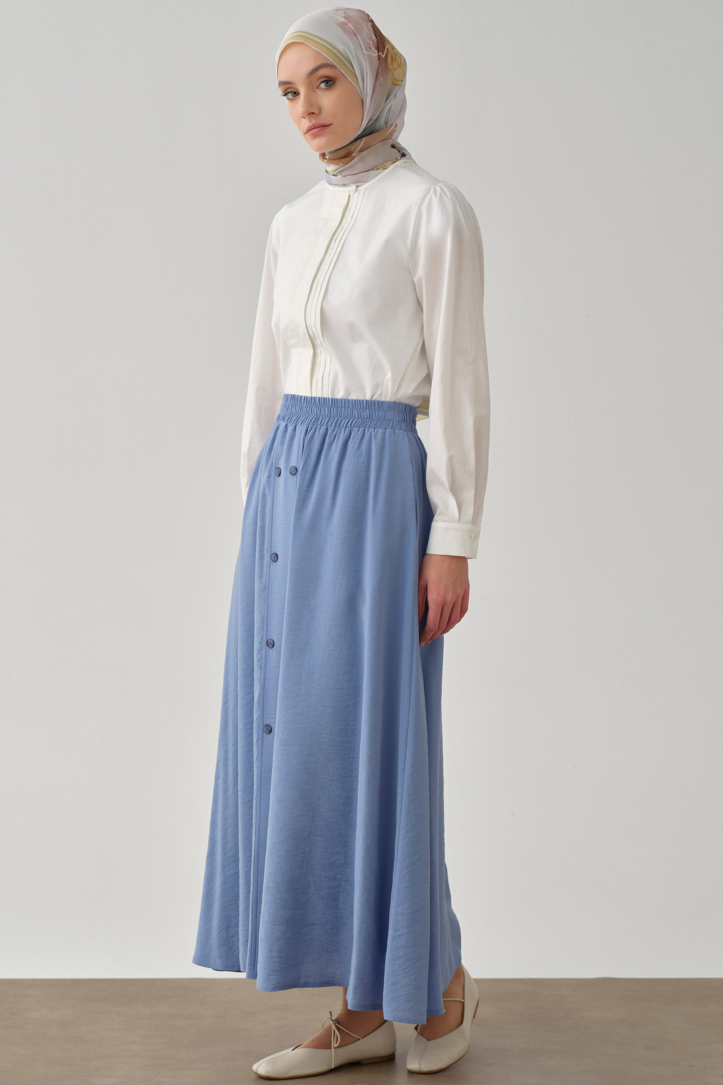 Akışkan kesimiyle her adımda zarafet sunan bu etek, hem günlük kombinlerinizde hem de özel anlarınızda stilinizi tamamlayacak zamansız bir parça.