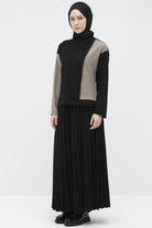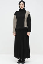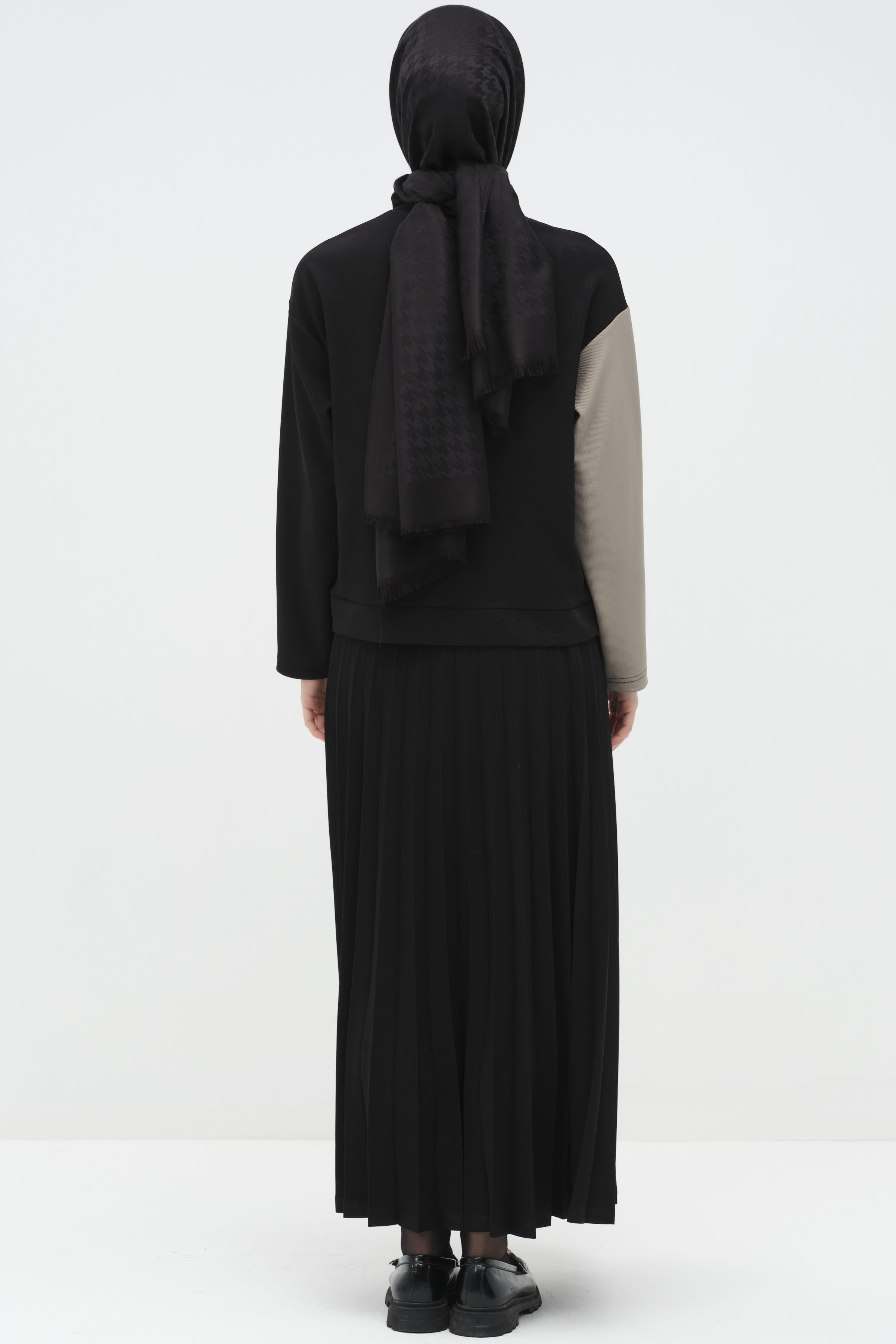 Garnili Nakış Detaylı Etek Bluz Örme Takım - Siyah