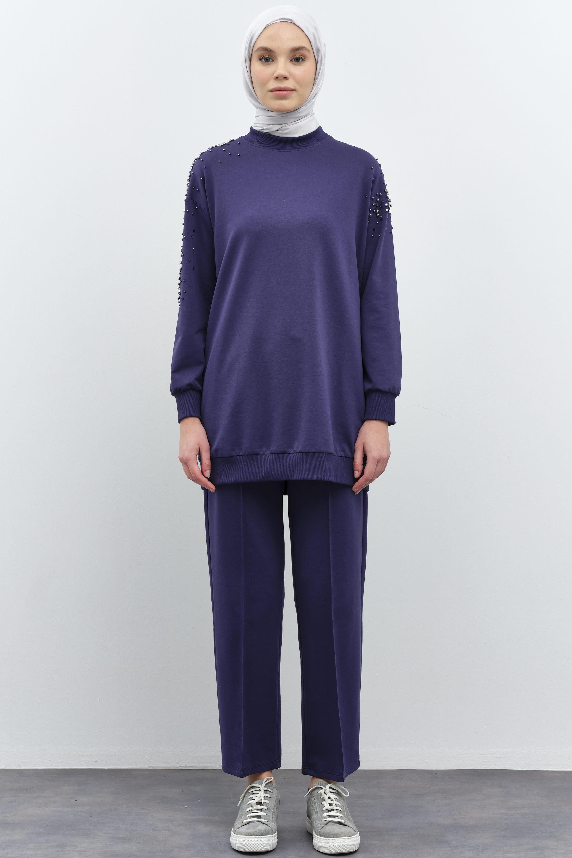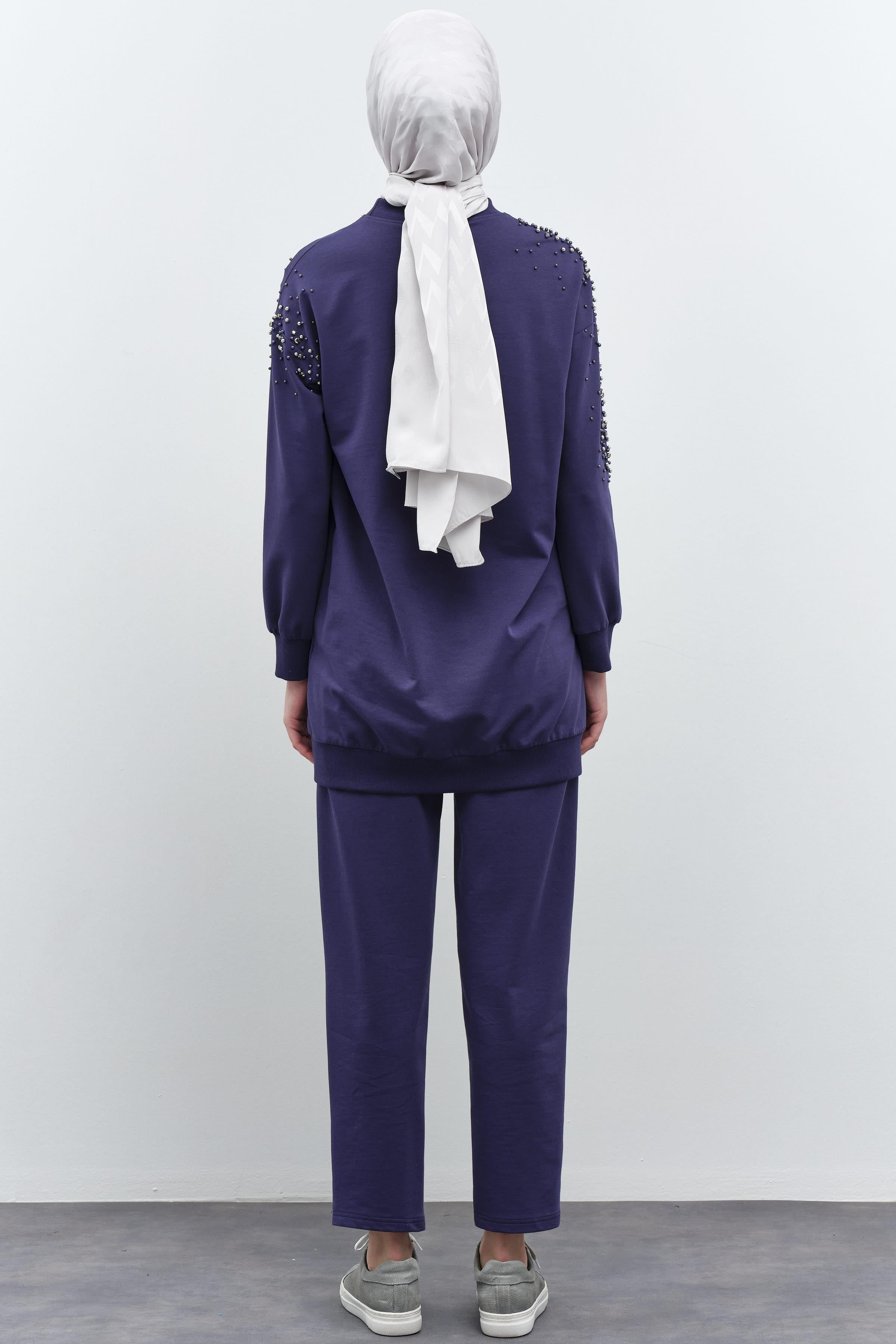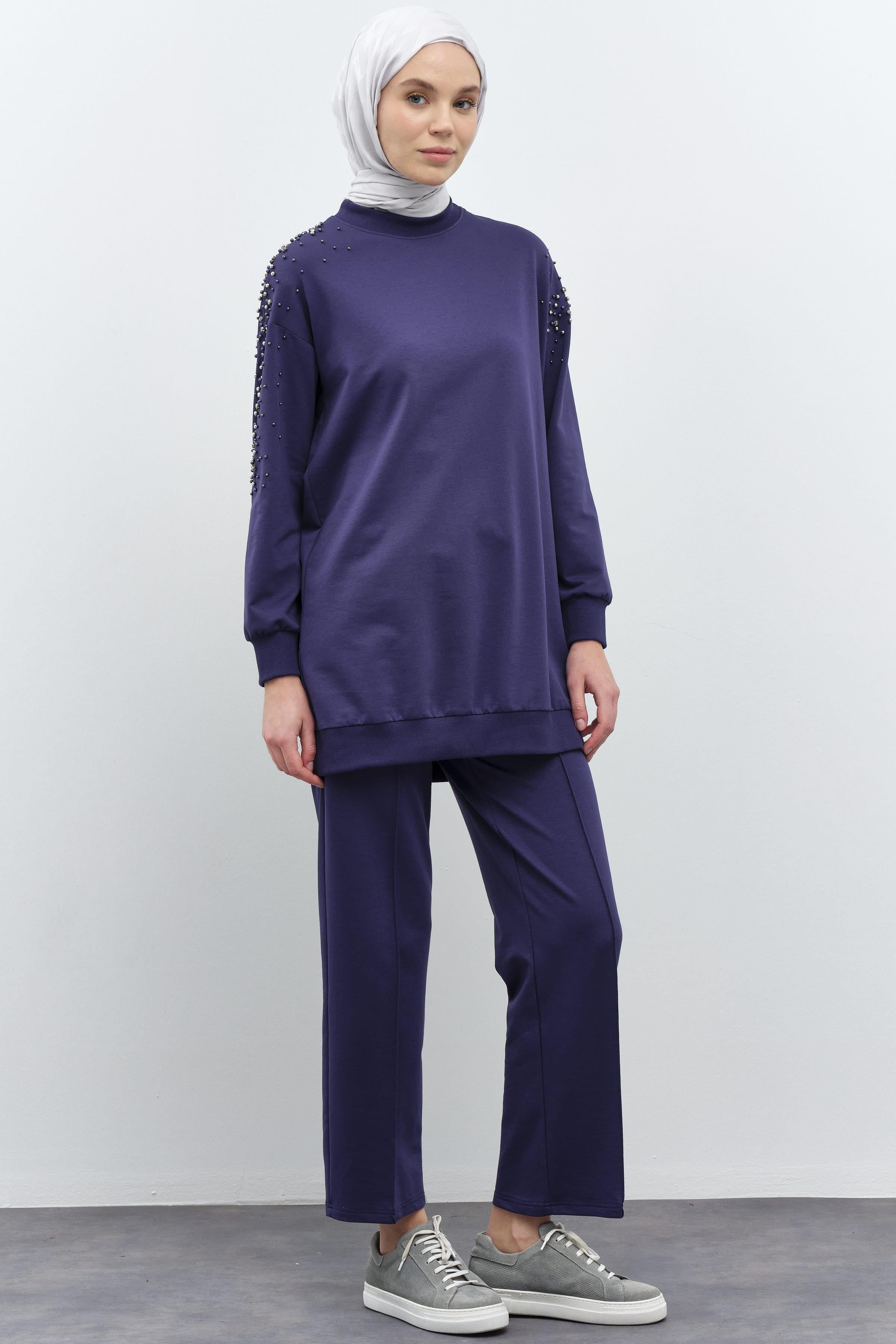 Kollar Taş Detaylı Tunik Pantolon Takım - Lacivert