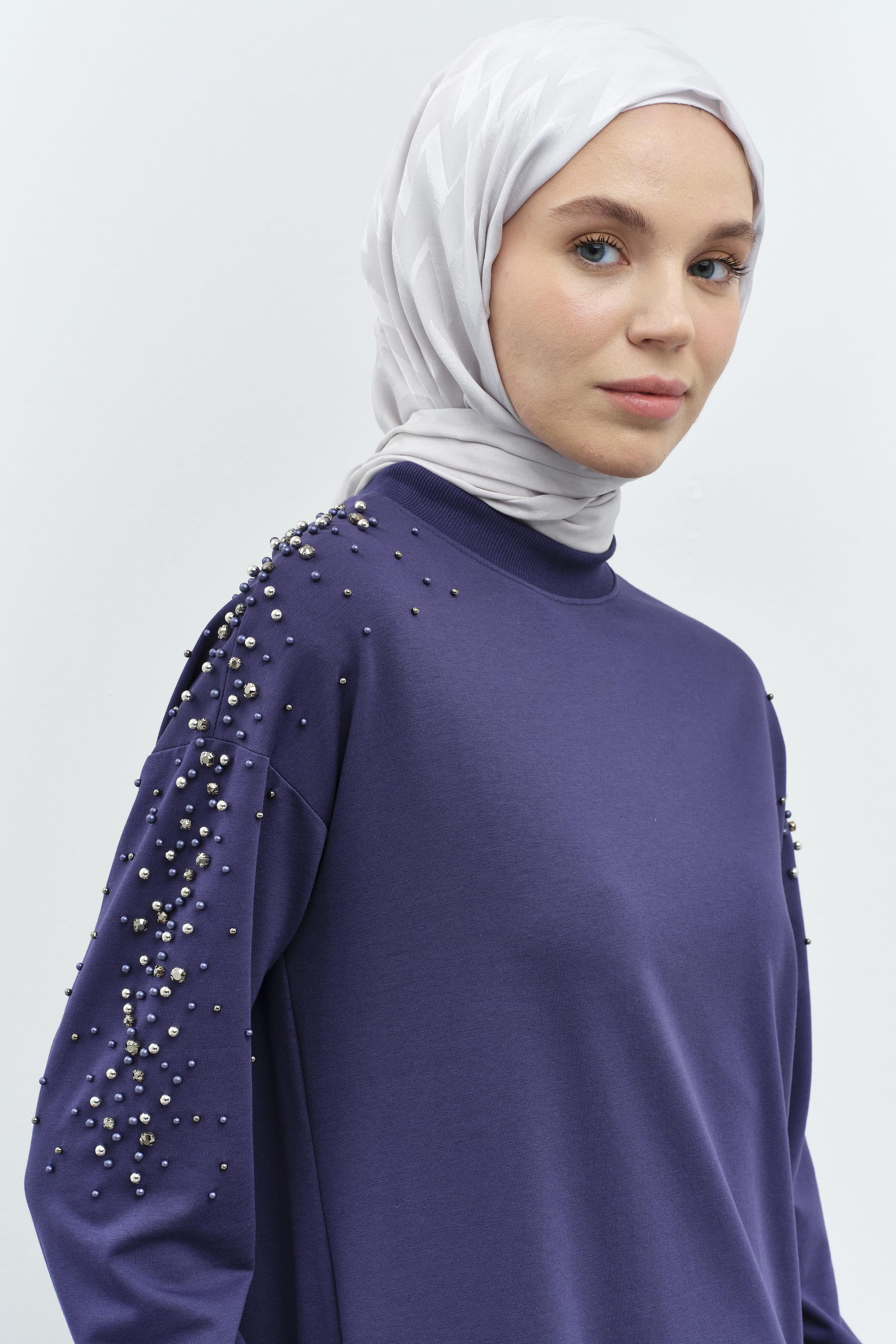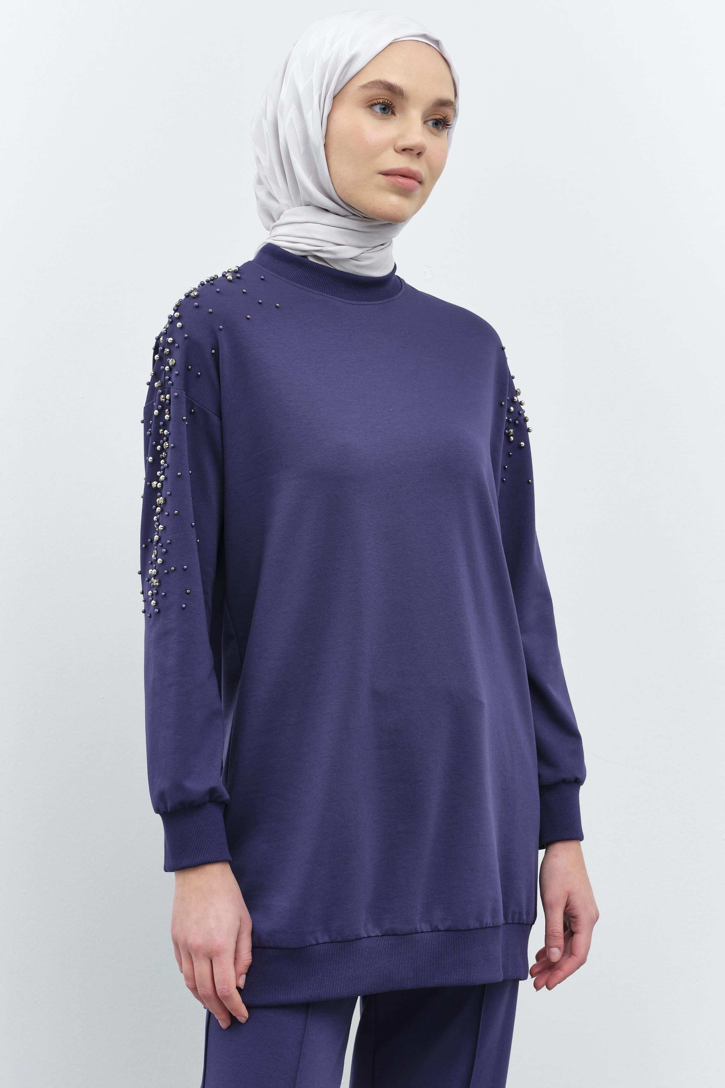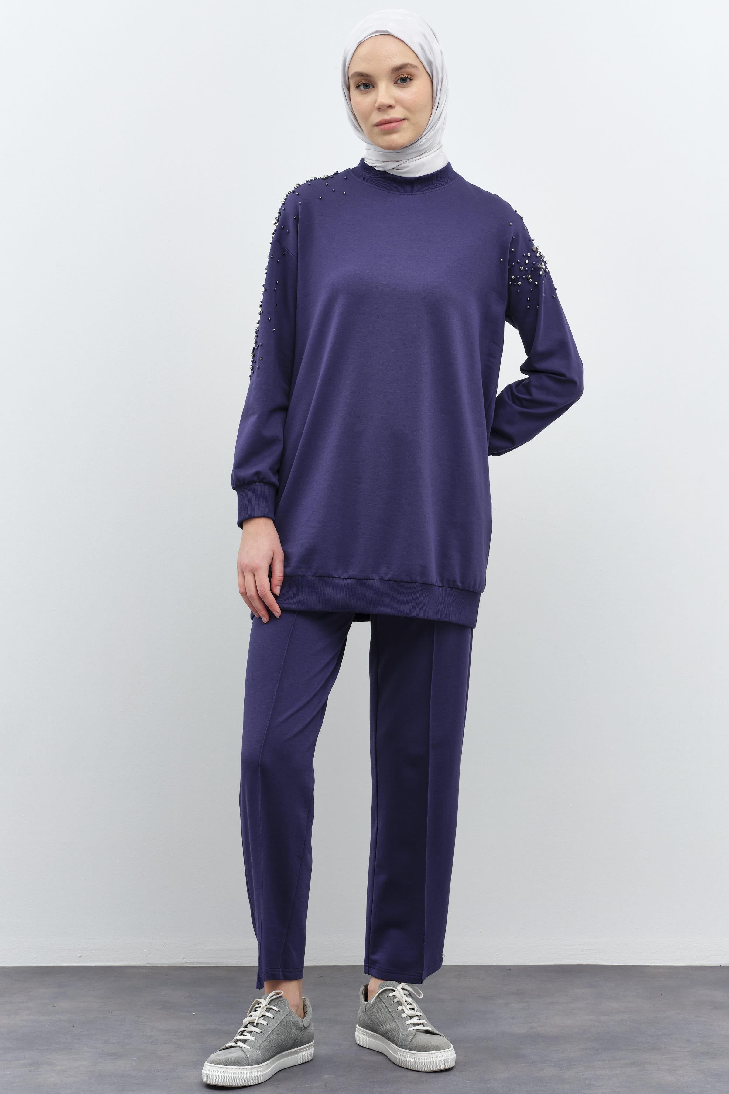 Kollar Taş Detaylı Tunik Pantolon Takım - Lacivert