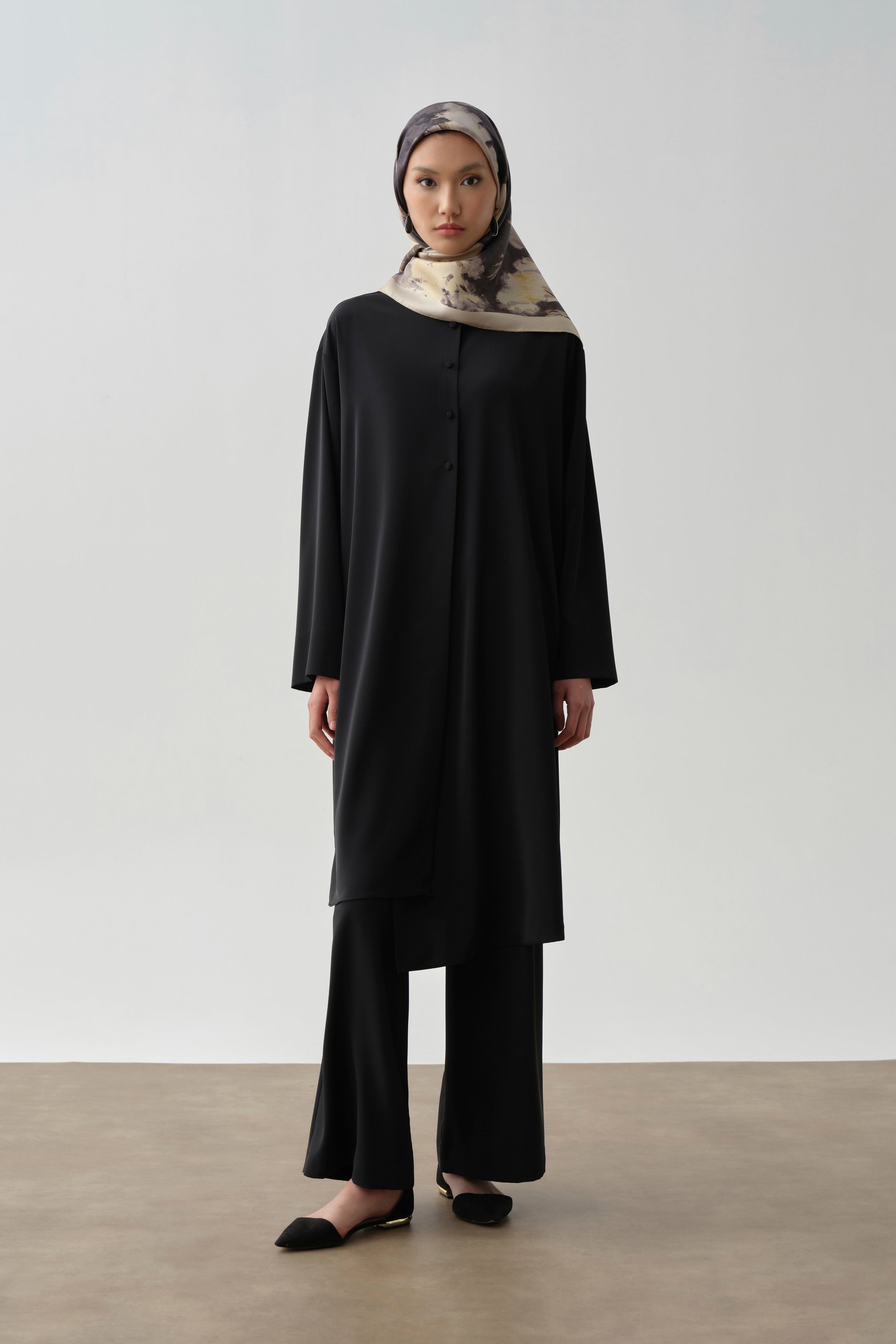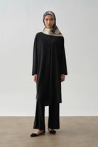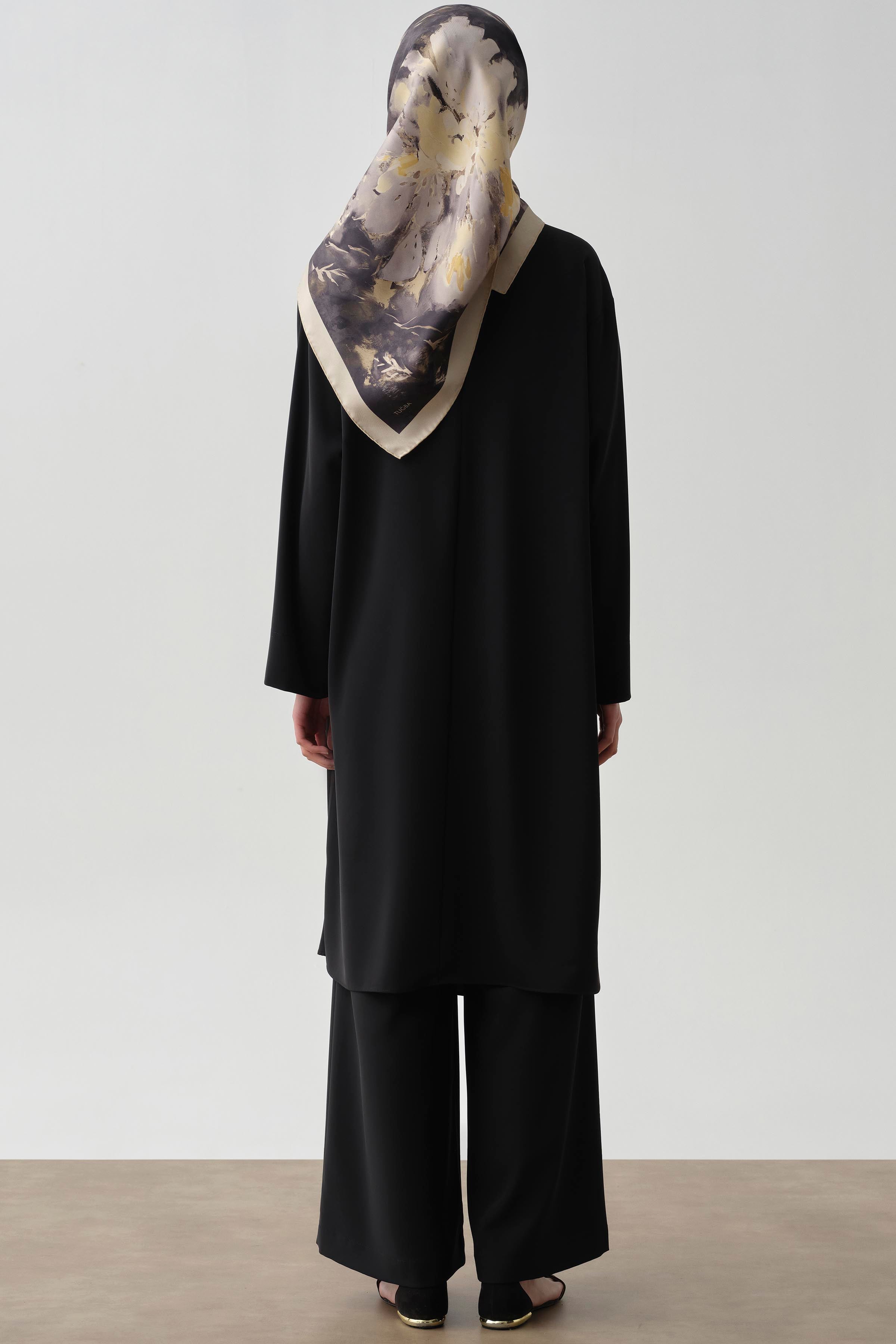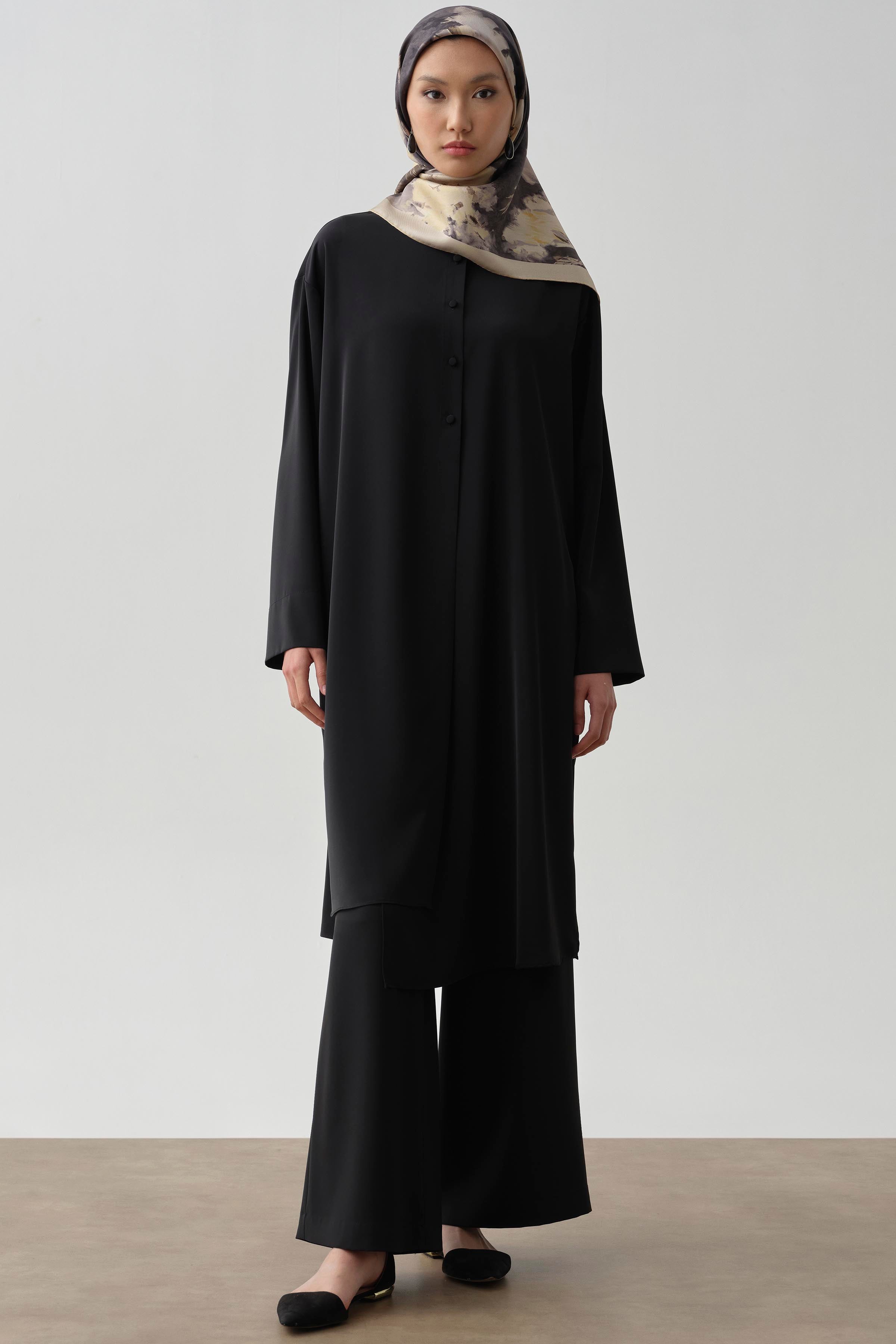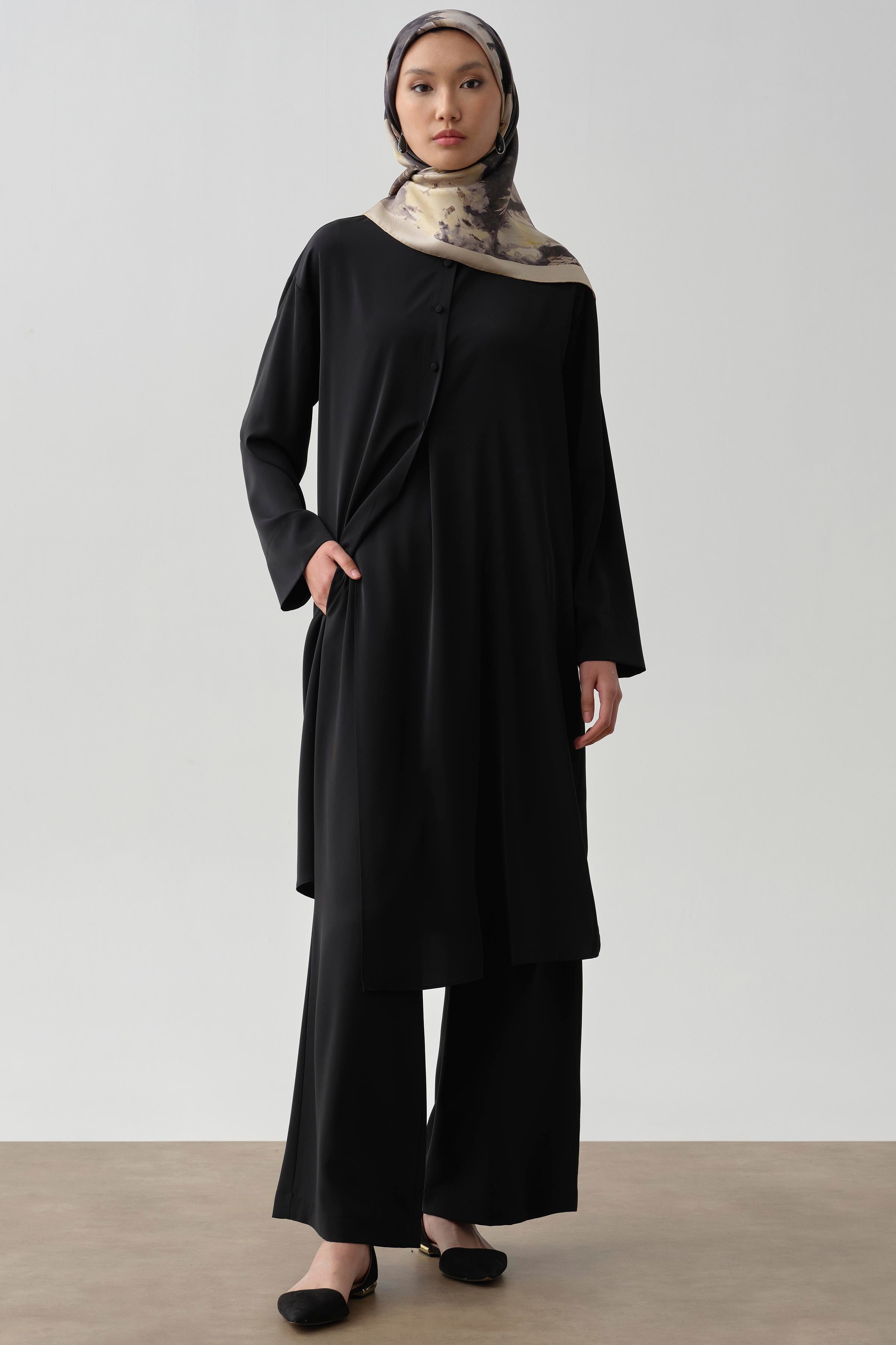 Hakim Yakalı Yırtmaçlı Tunik - Siyah