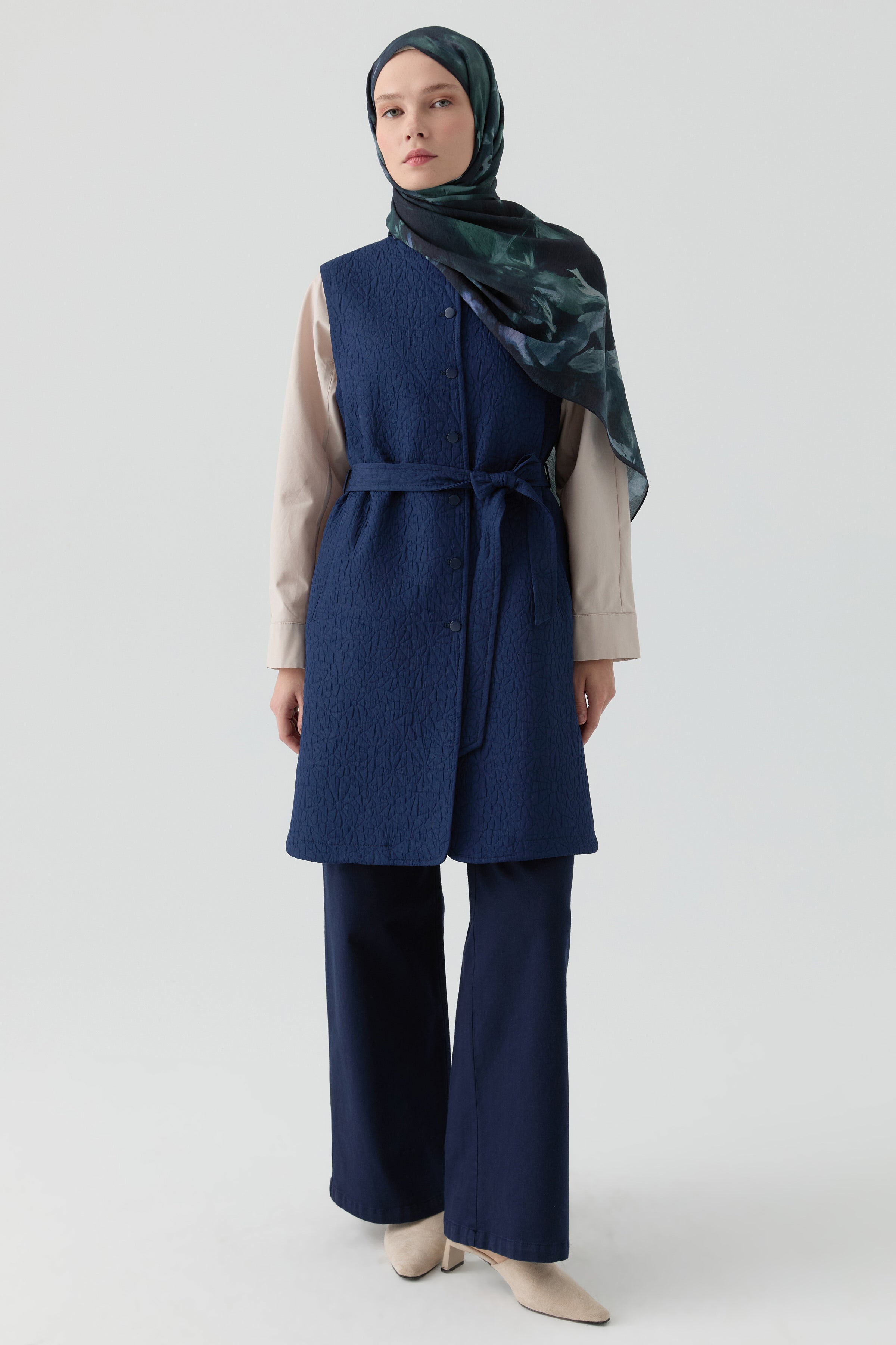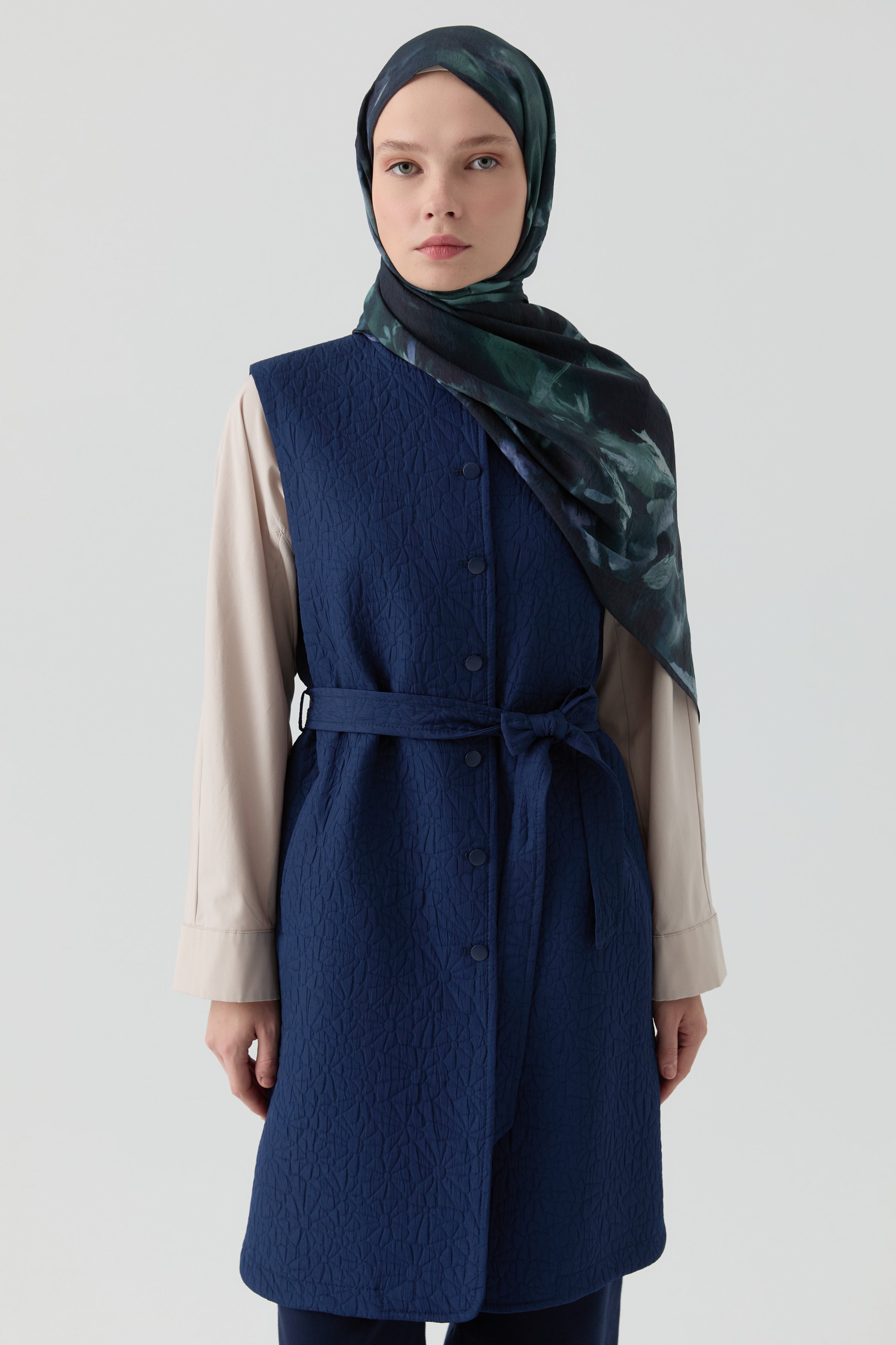 Sıfır Yaka Kapitone Yelek - Lacivert