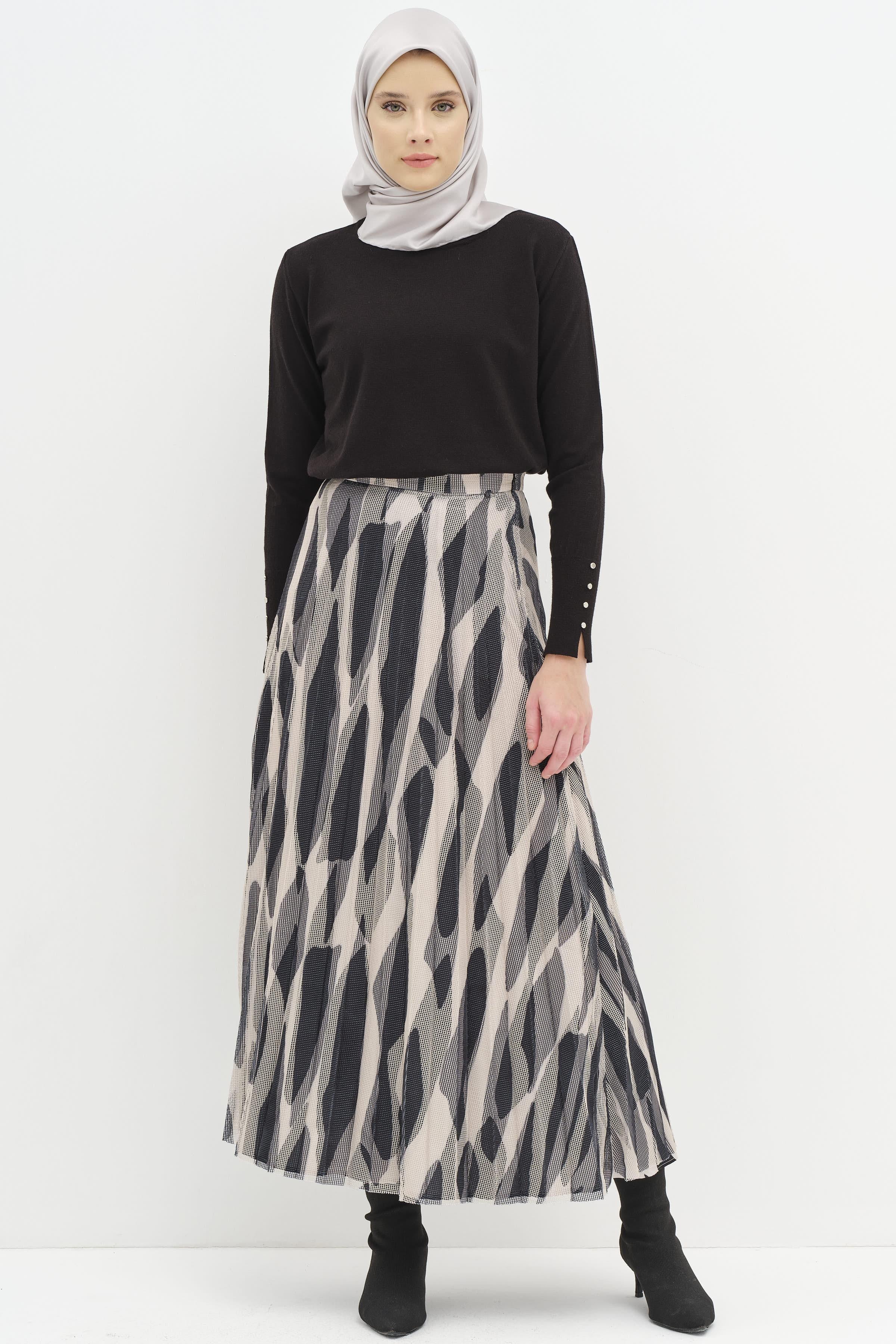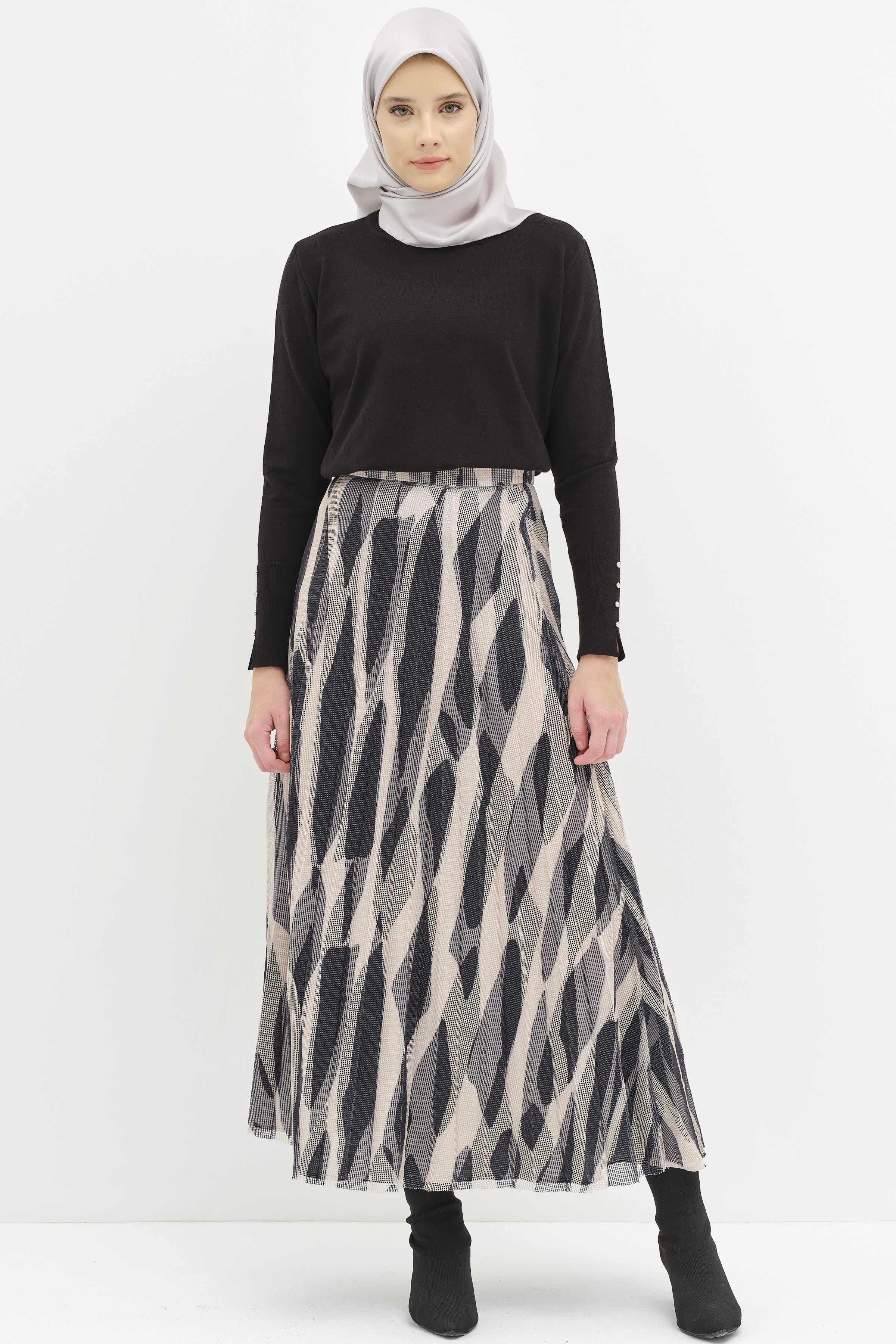 İster şehirde günlük gezilerde ister ofis stilinizde tercih edebileceğiniz bu etek, tarzınıza modern ve zamansız bir dokunuş katar.