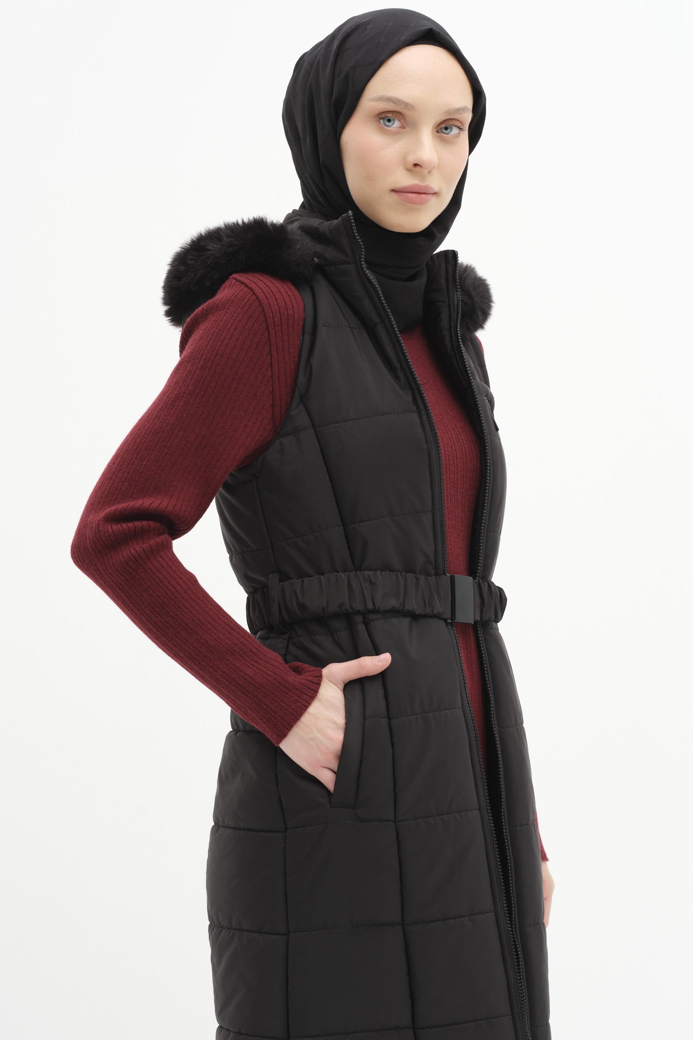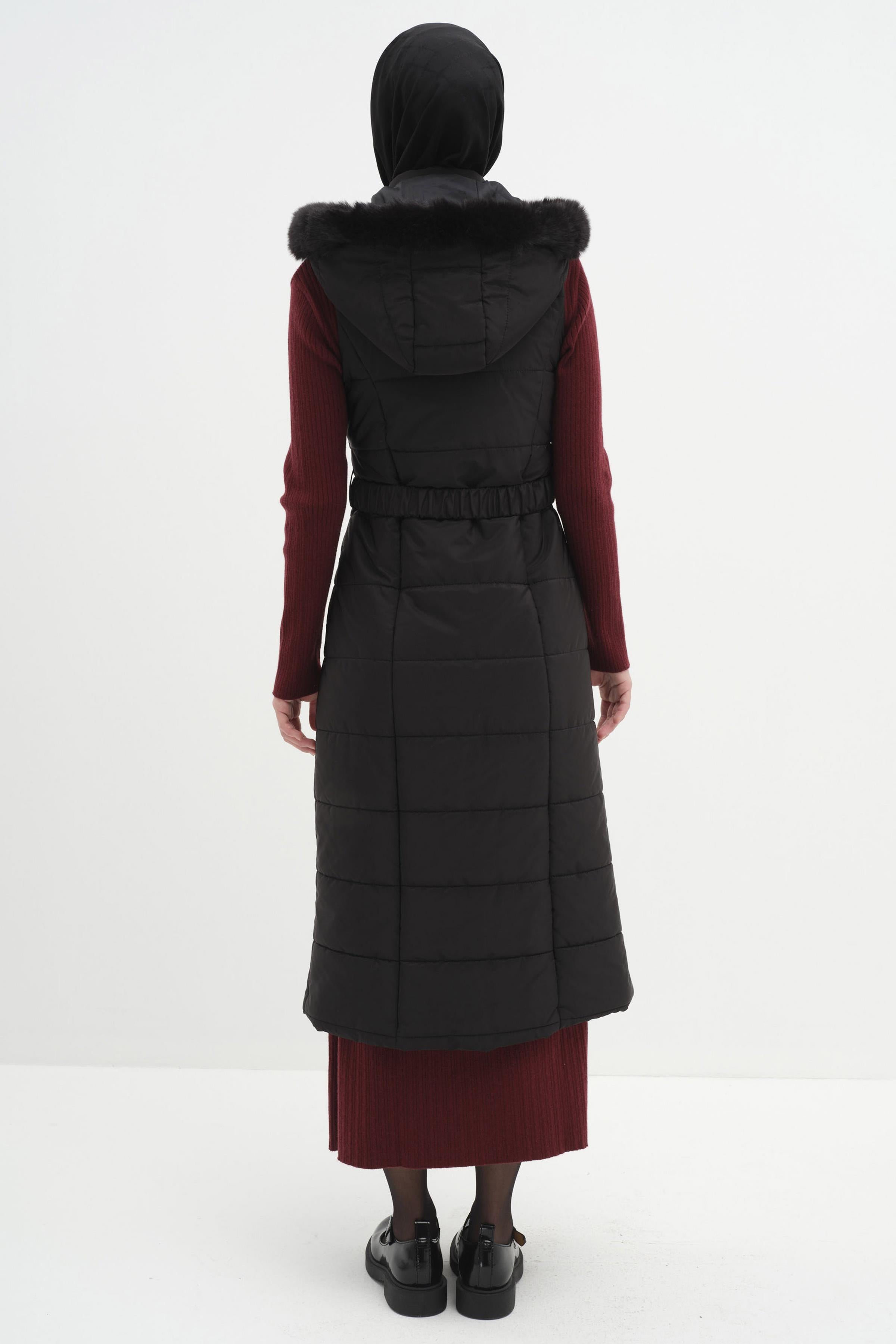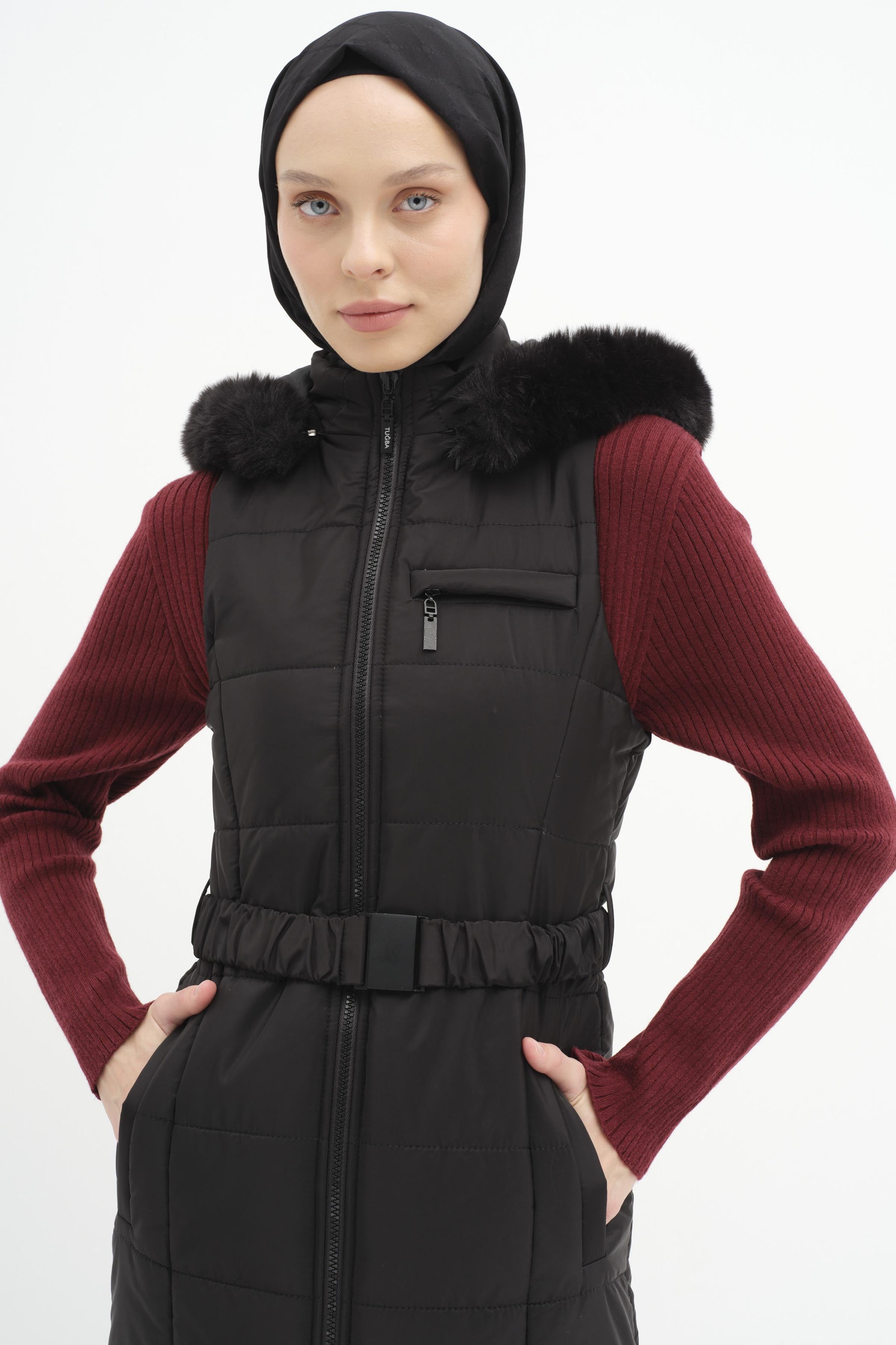 Soğuk kış günlerinin vazgeçilmezi kürk kapüşonlu yelek, tarzınıza hem şıklık hem de sıcaklık katıyor. Yüksek kaliteli materyali sayesinde hem hafif hem de rahattır. Fermuar ve düğme kapanışı sayesinde pratik bir kullanım sunar.