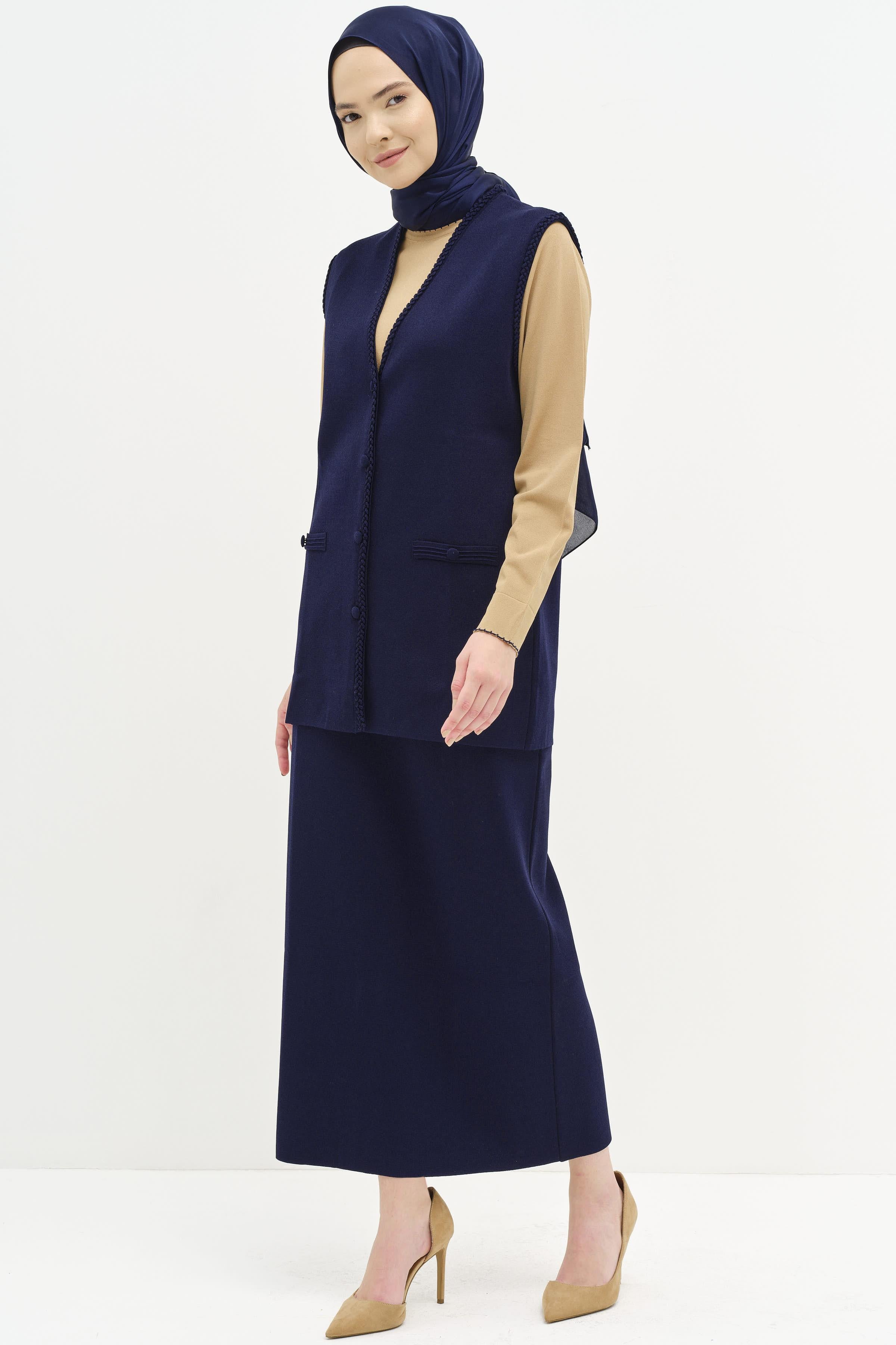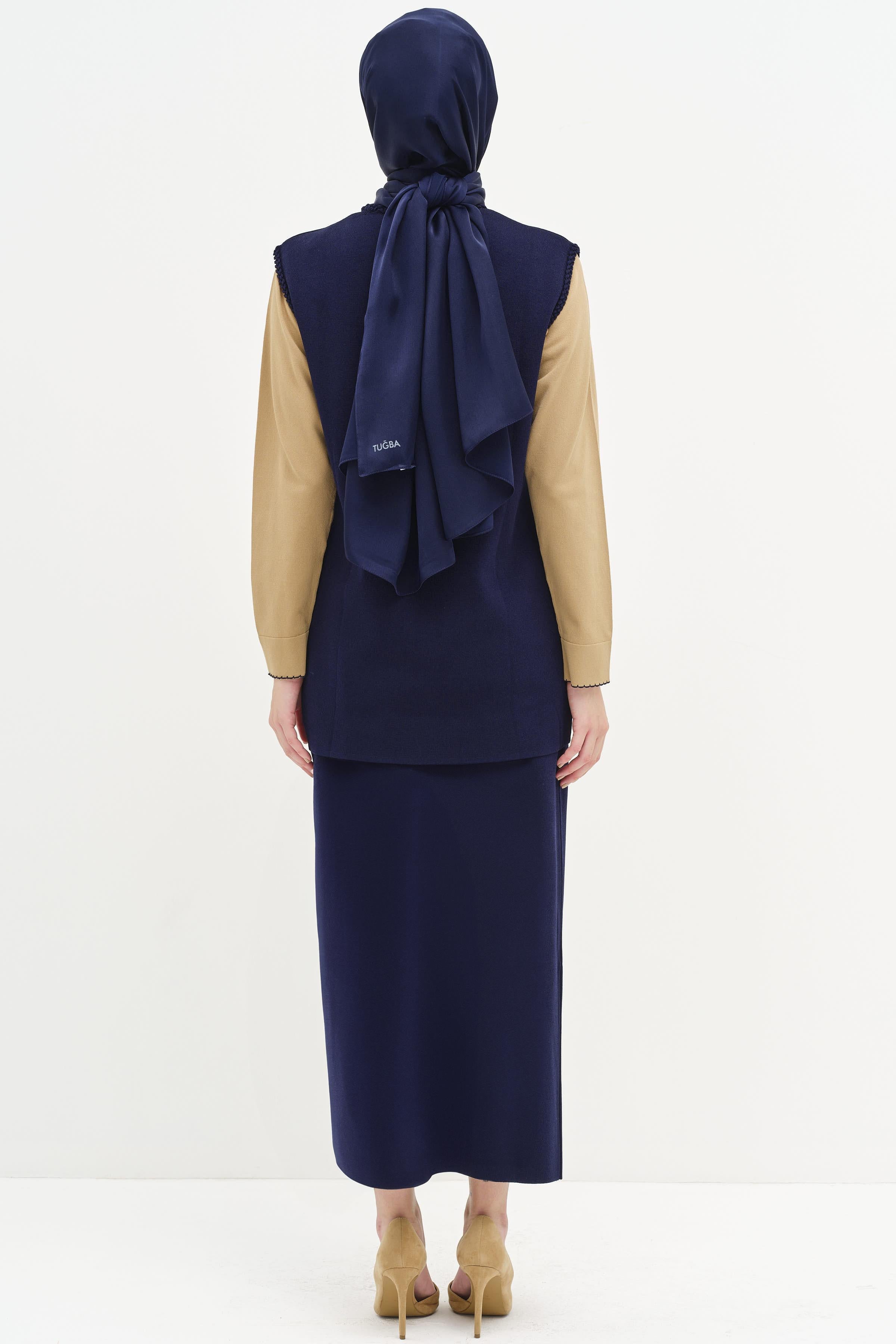 Örgü Çerçeve Detaylı Triko Yelek - Lacivert