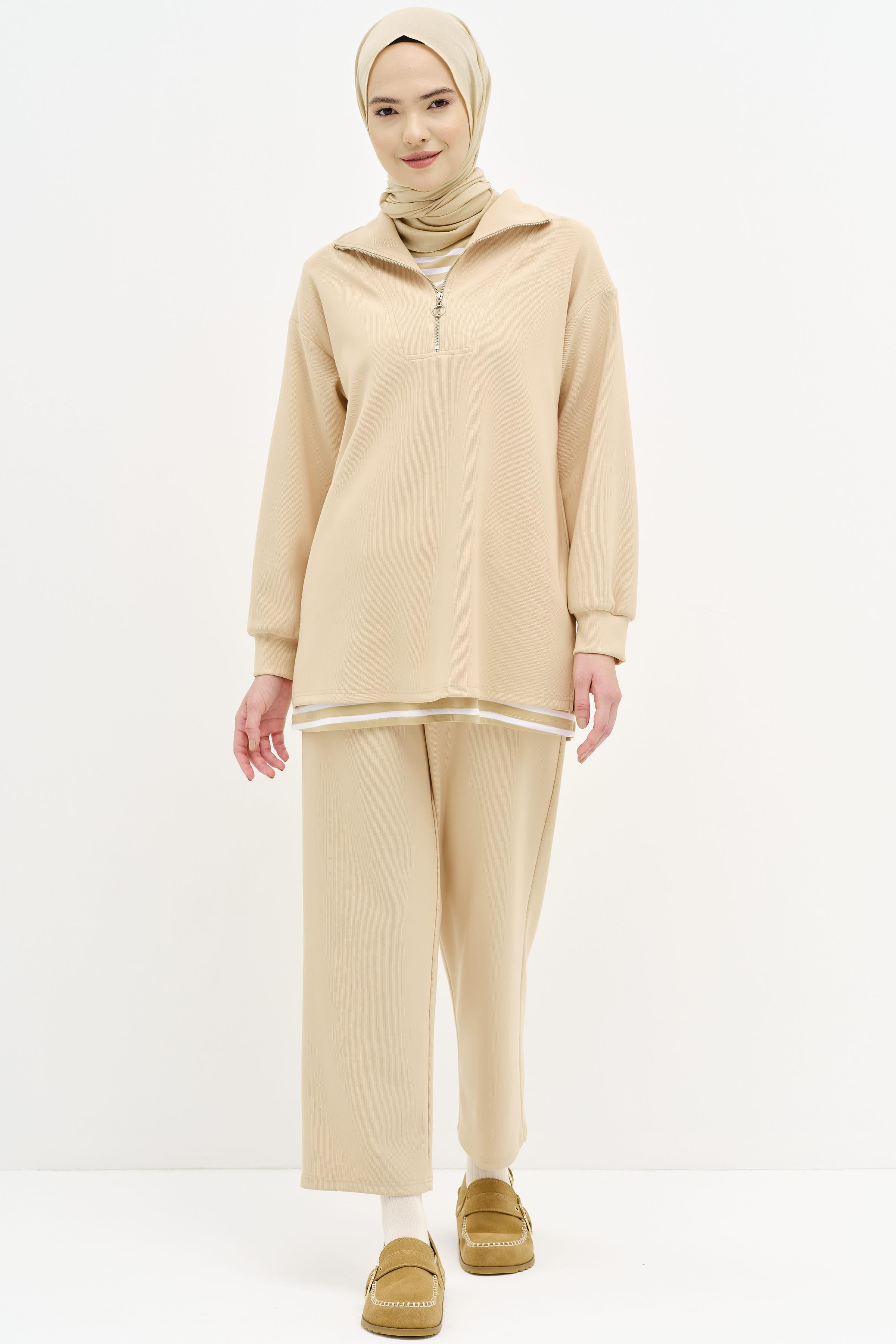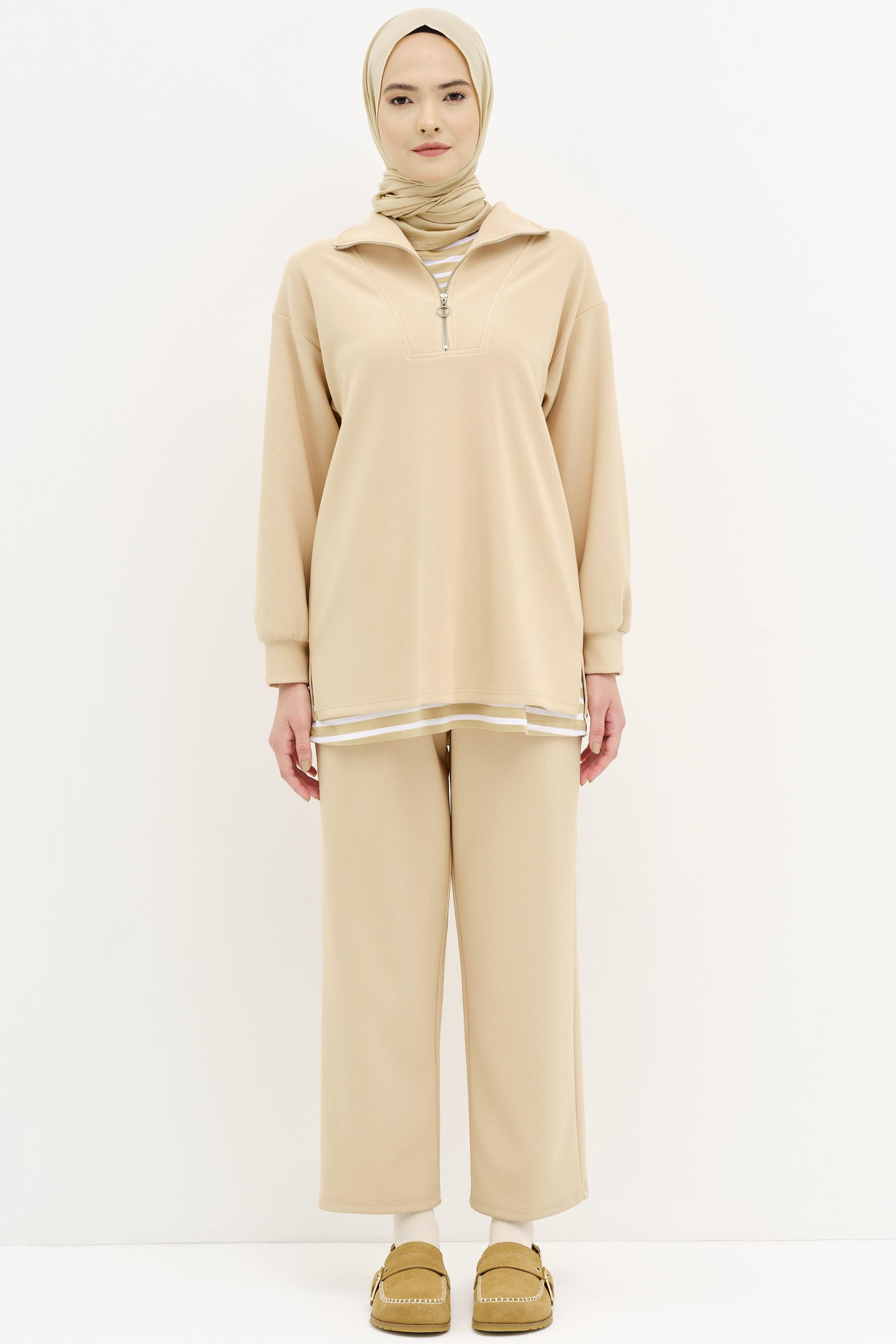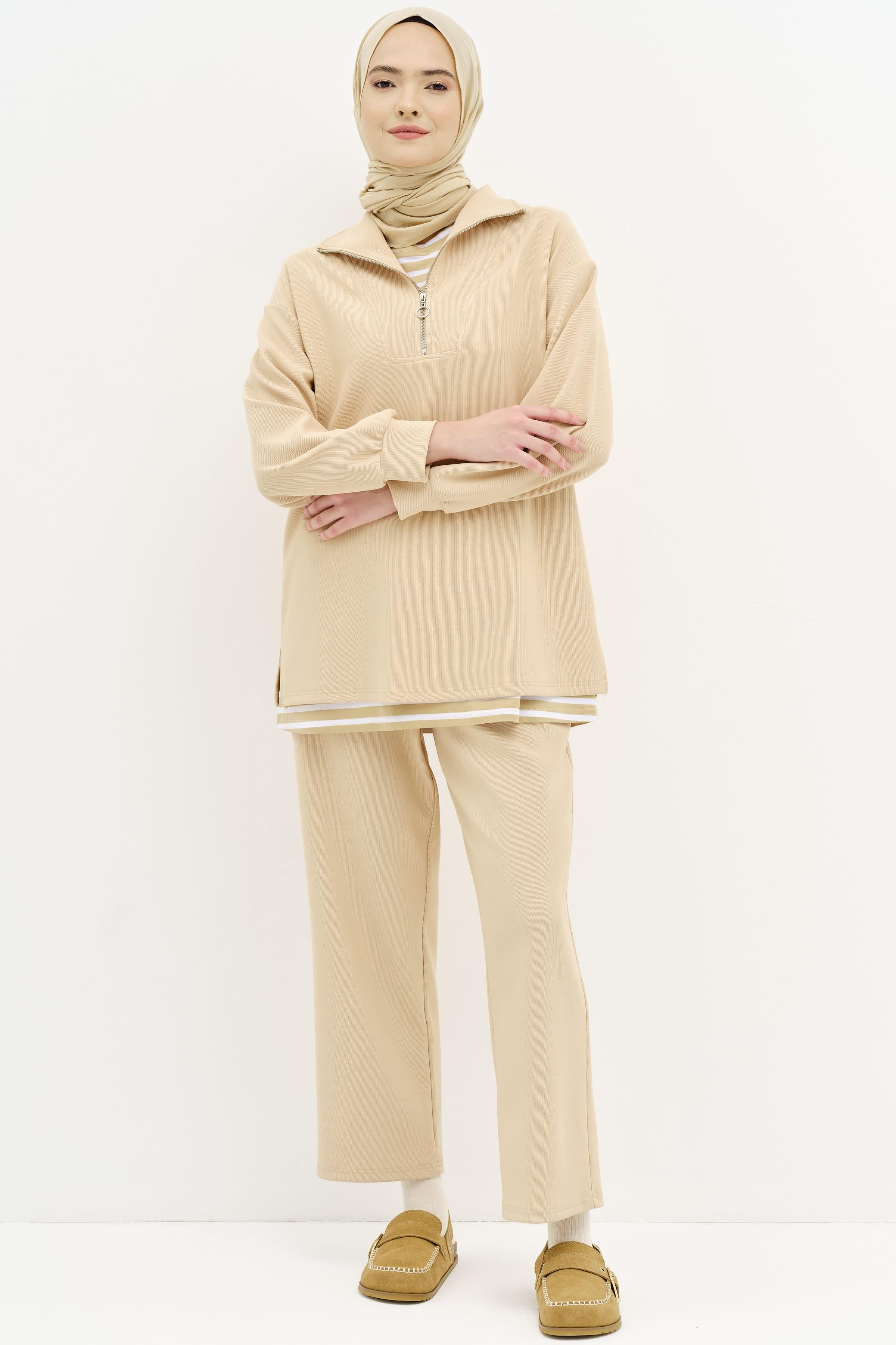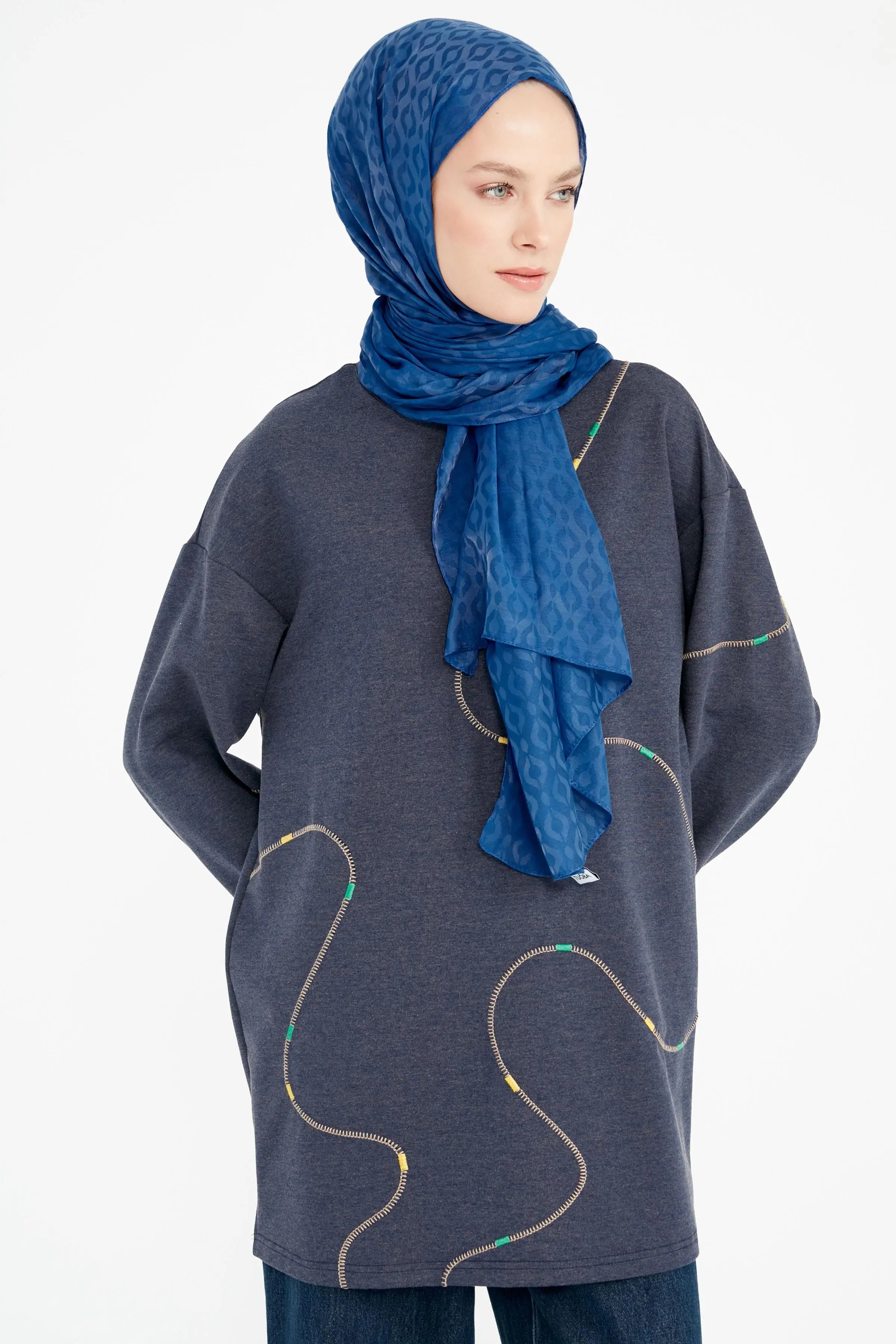 Karmaşık ve göz yoran desenler yerine sitemizde de bulunan sakin desenlere sahip ya da tek renk etek, pantolon ya da tunik çeşitlerimizi kullanarak kombinlerinize stil sahibi bir dokunuş yapabilirsiniz.