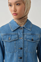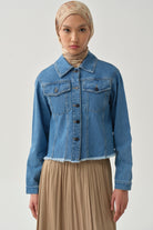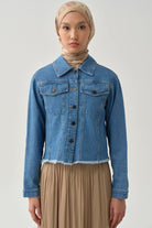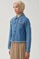 İki Cepli Uzun Kollu Kısa Denim Ceket - İndigo