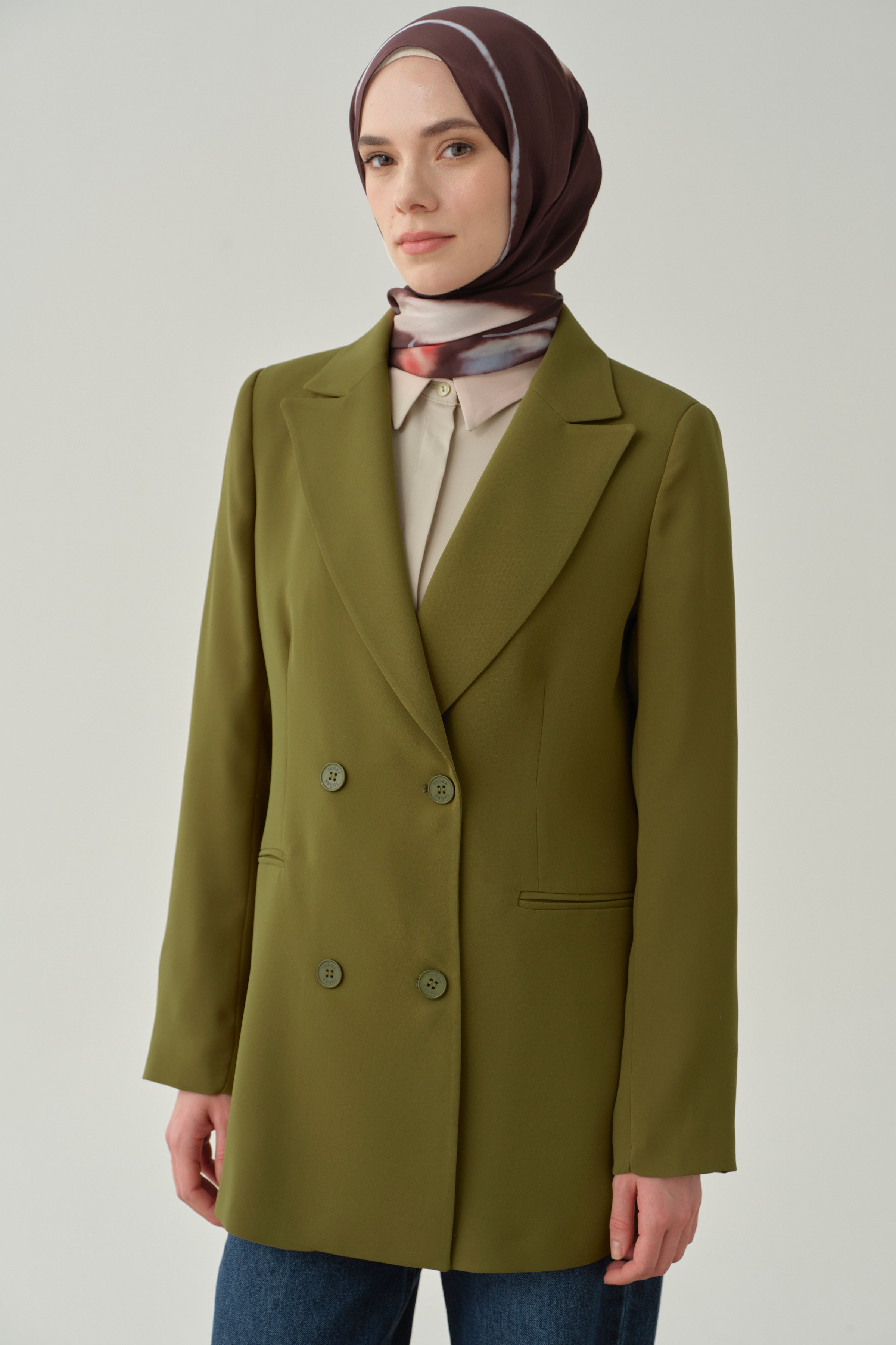 Ceketi ofis görünümlerinizi desteklemek için kullanabilirsiniz.