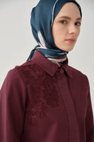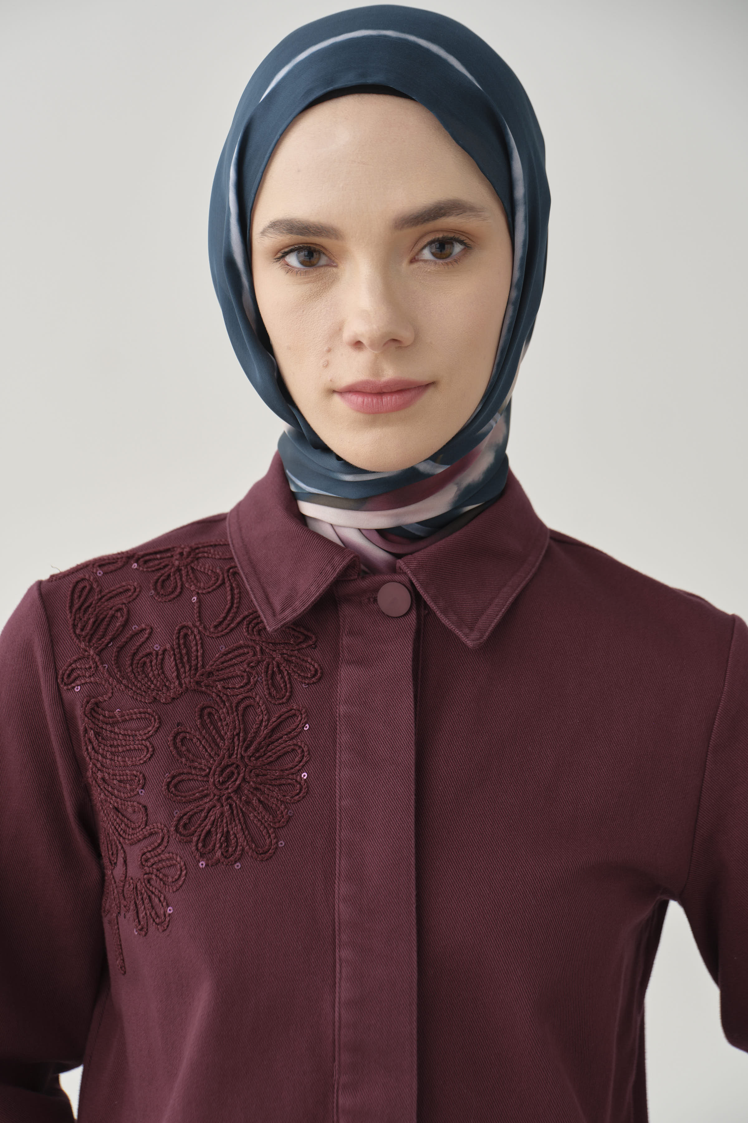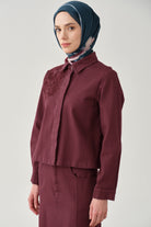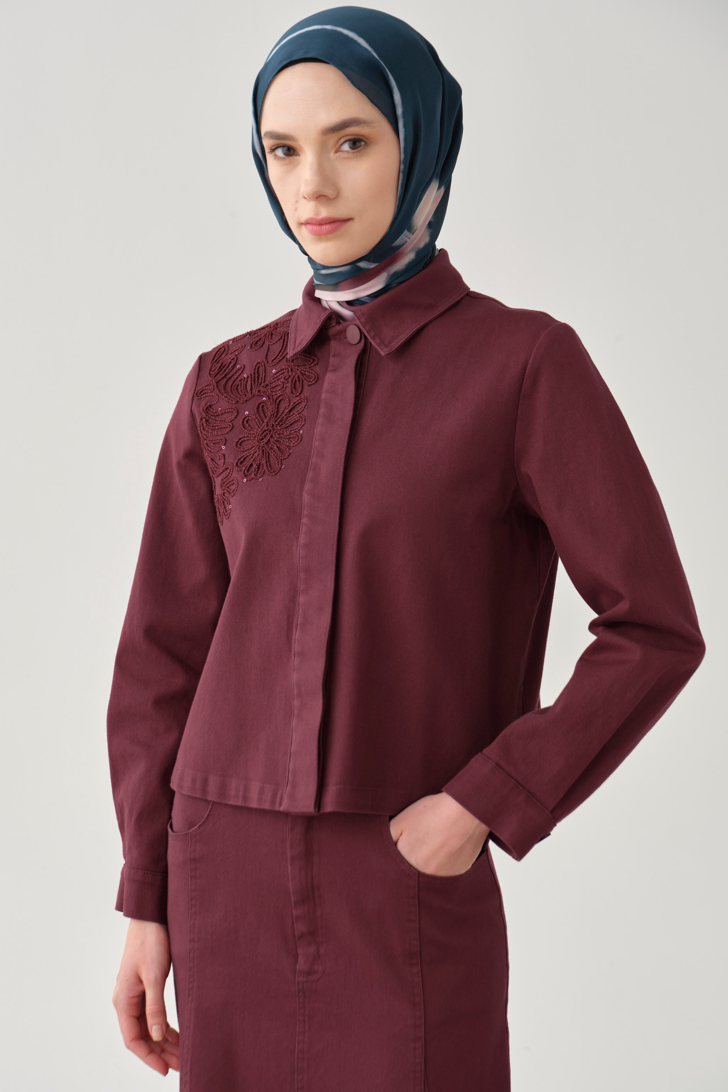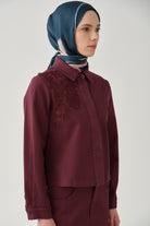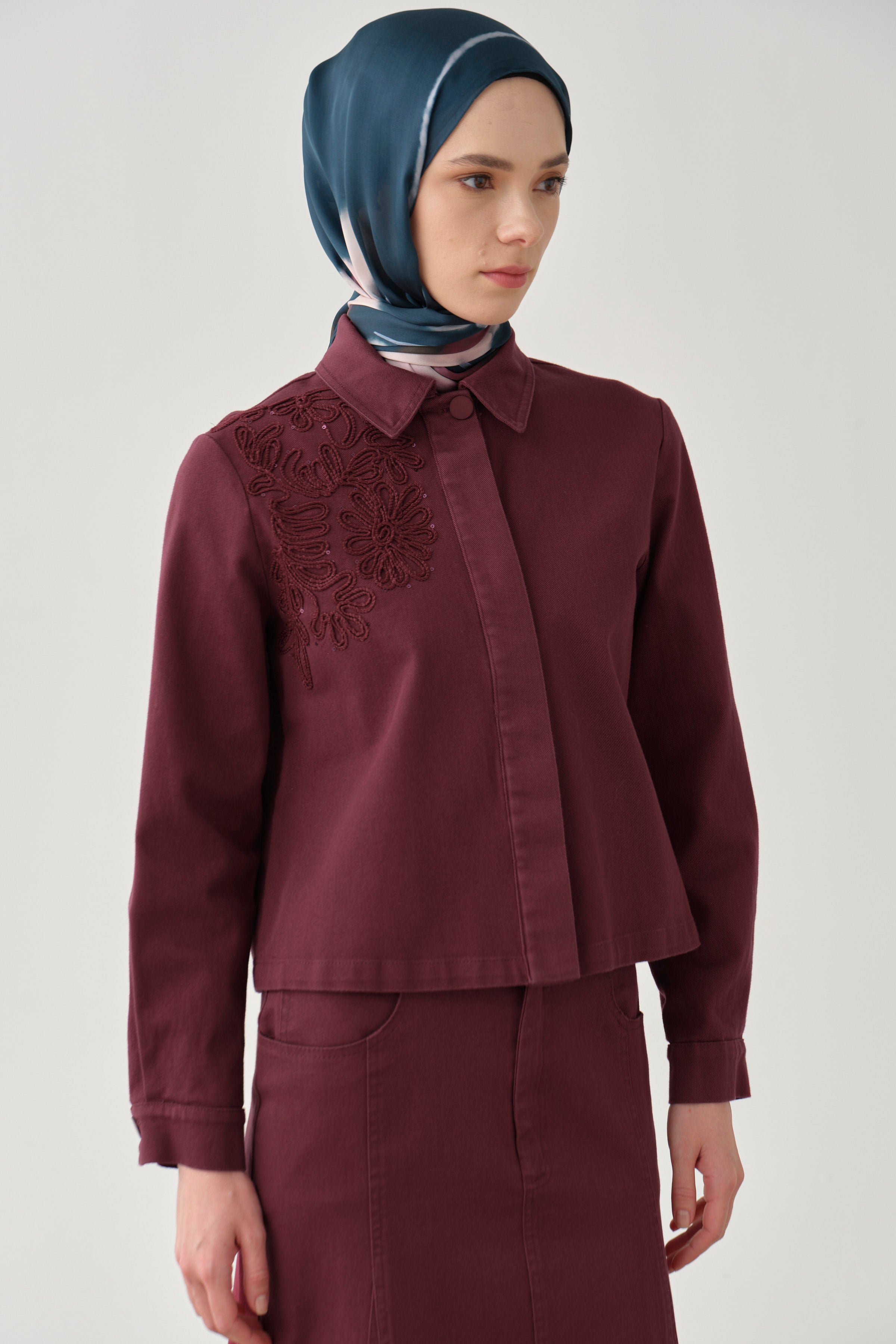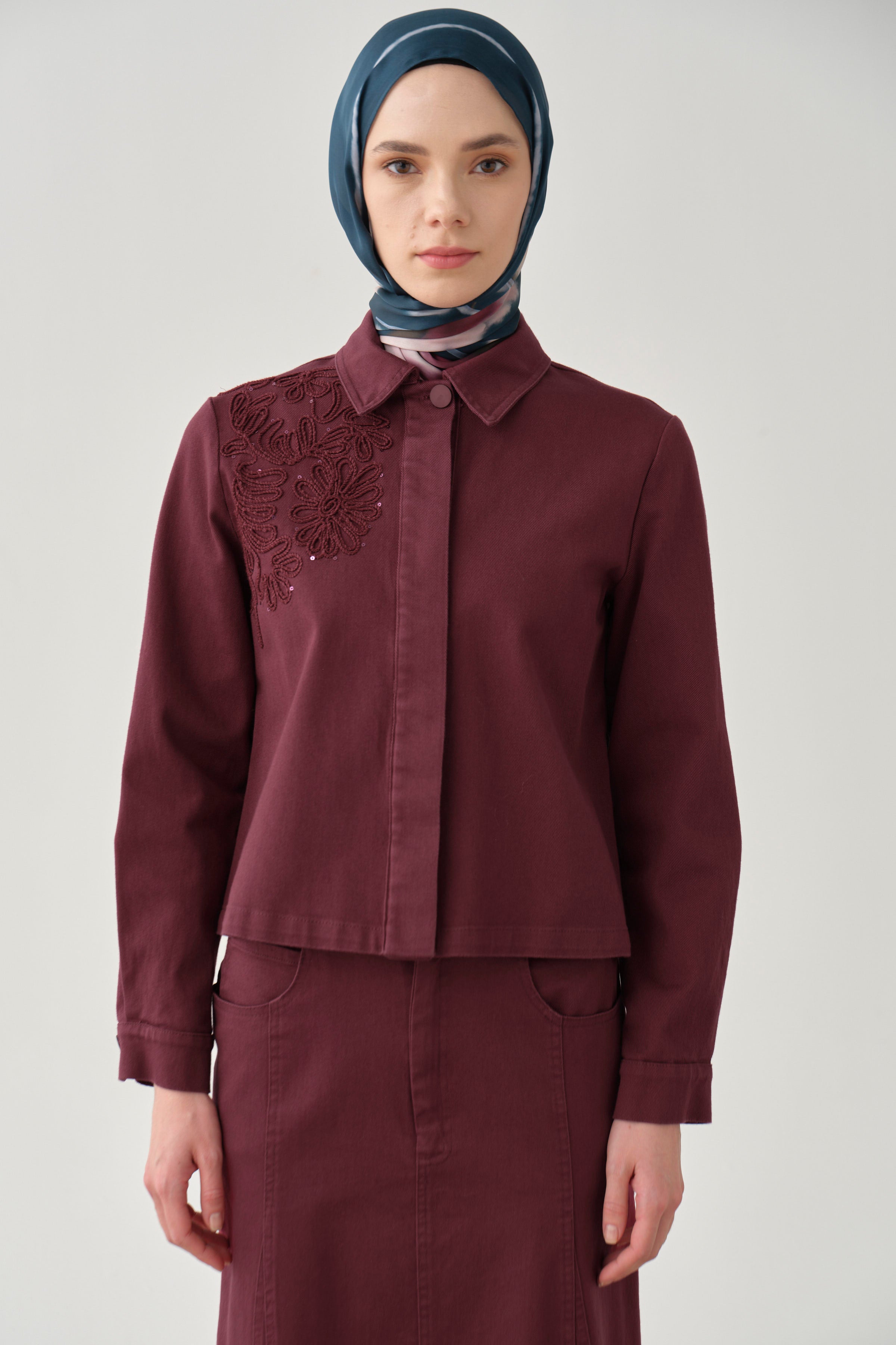 Nakış Detaylı Mini Canvas Ceket - Mürdüm