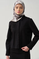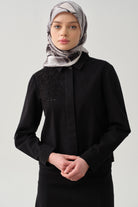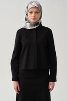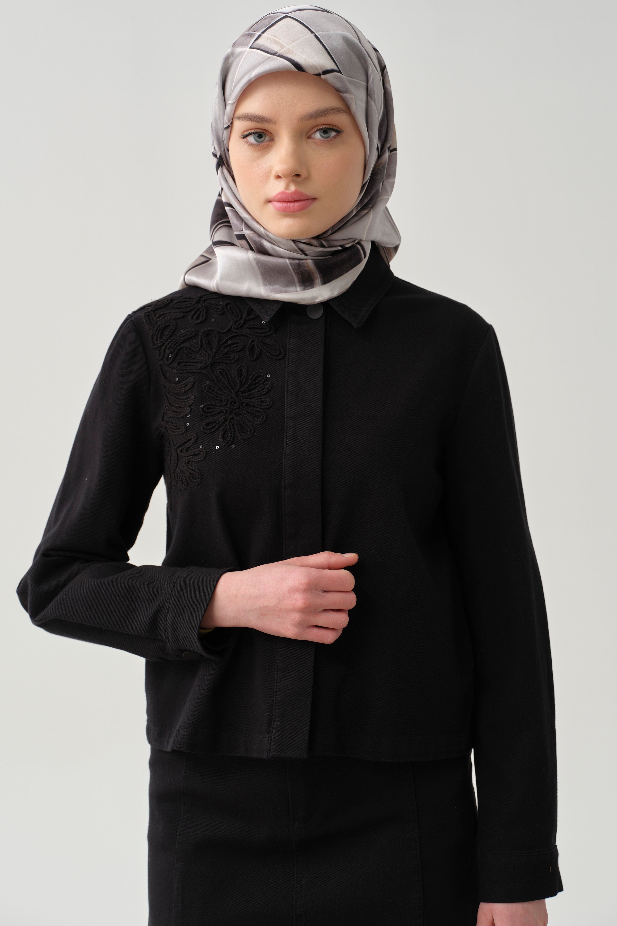Nakış Detaylı Mini Canvas Ceket - Siyah