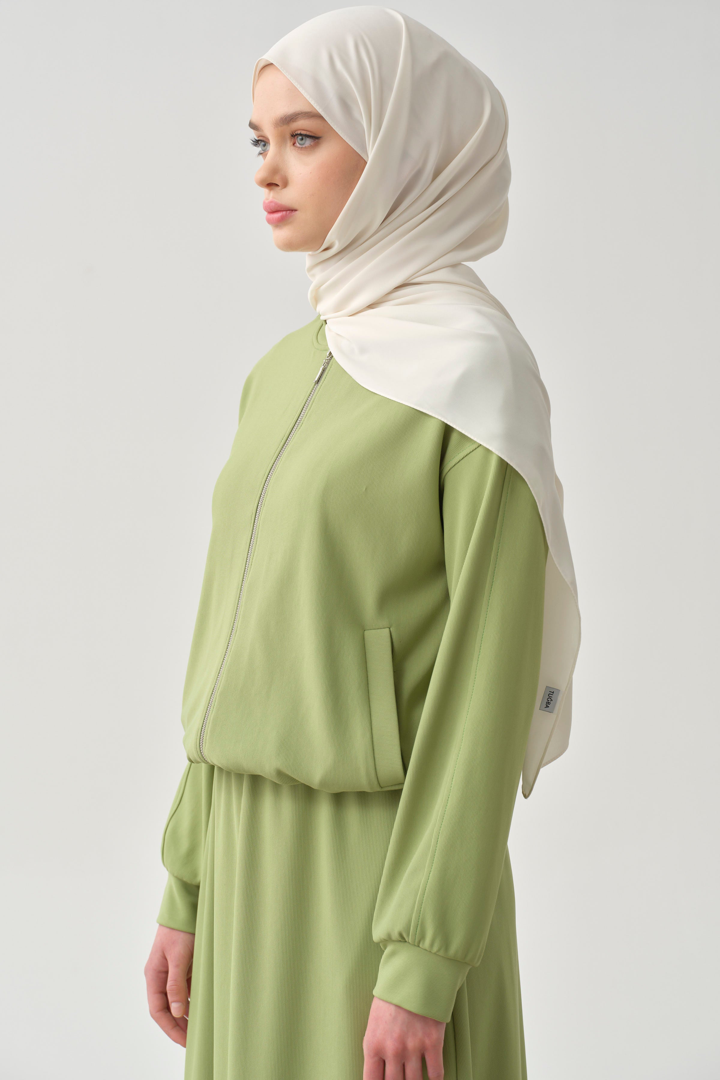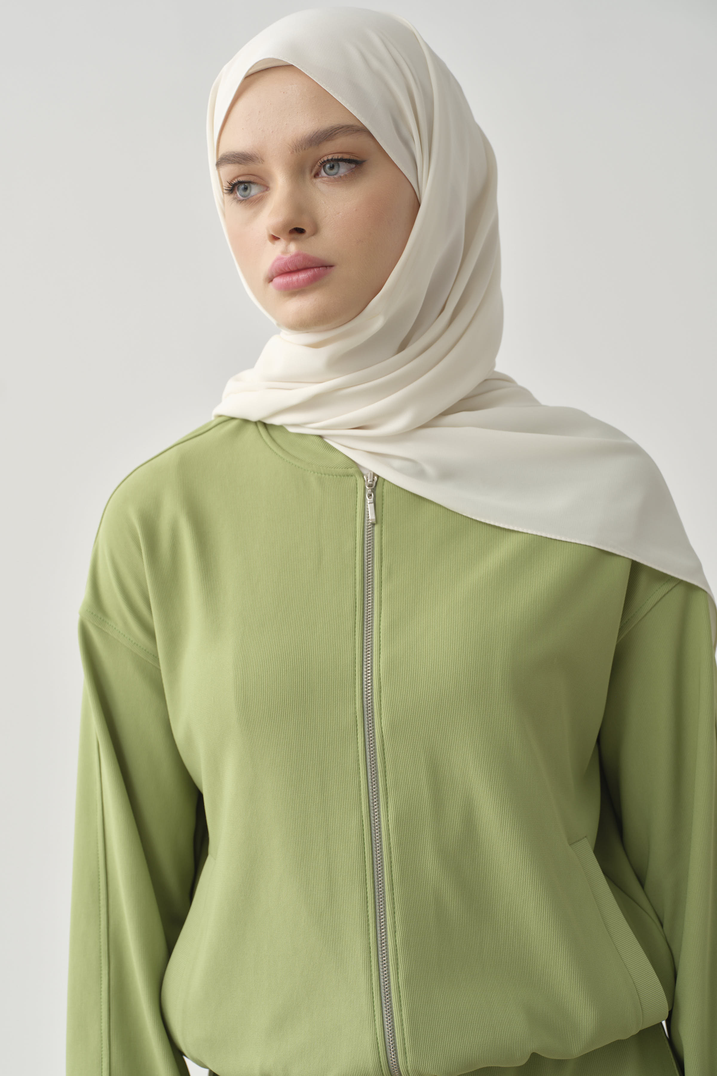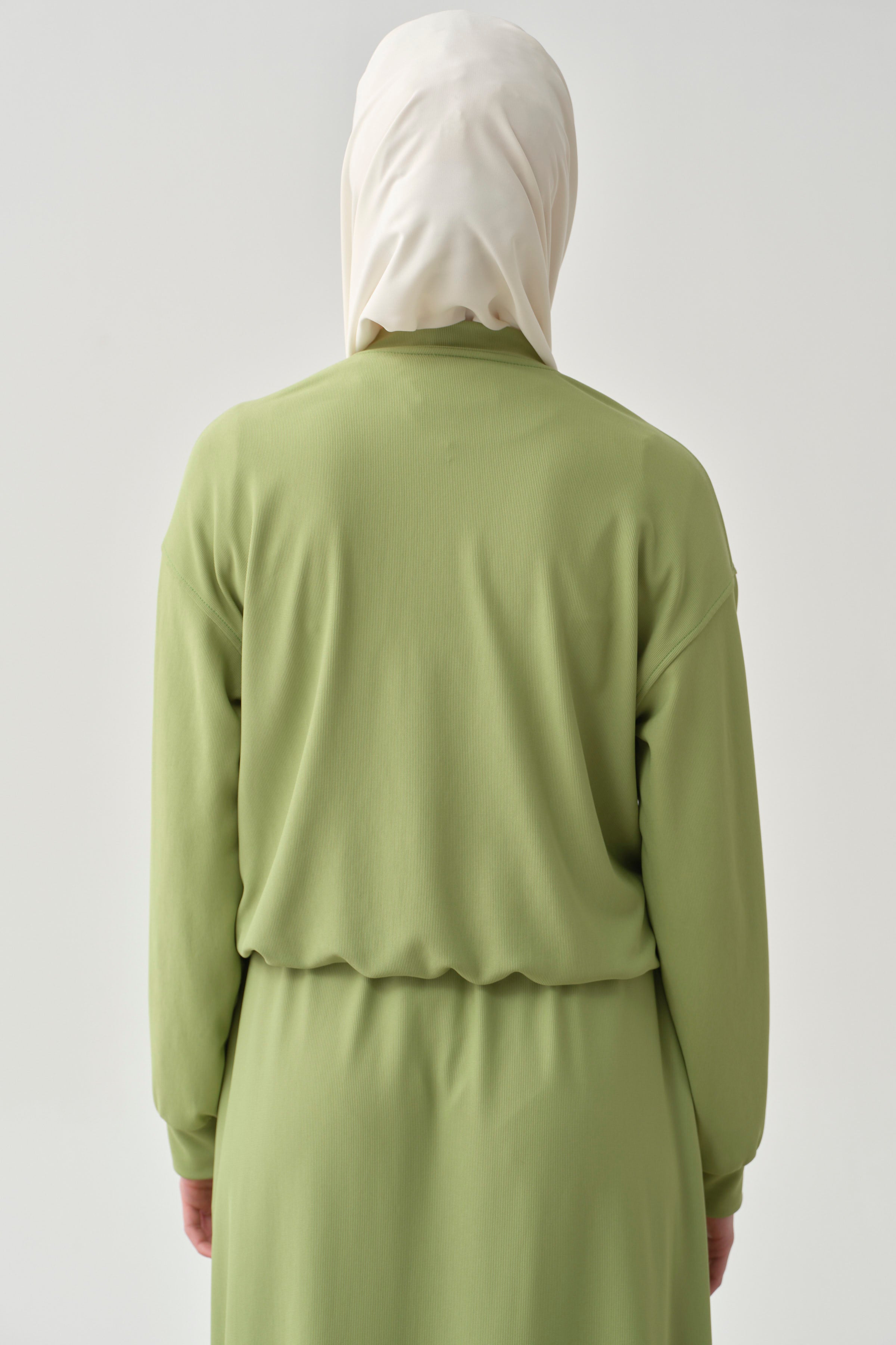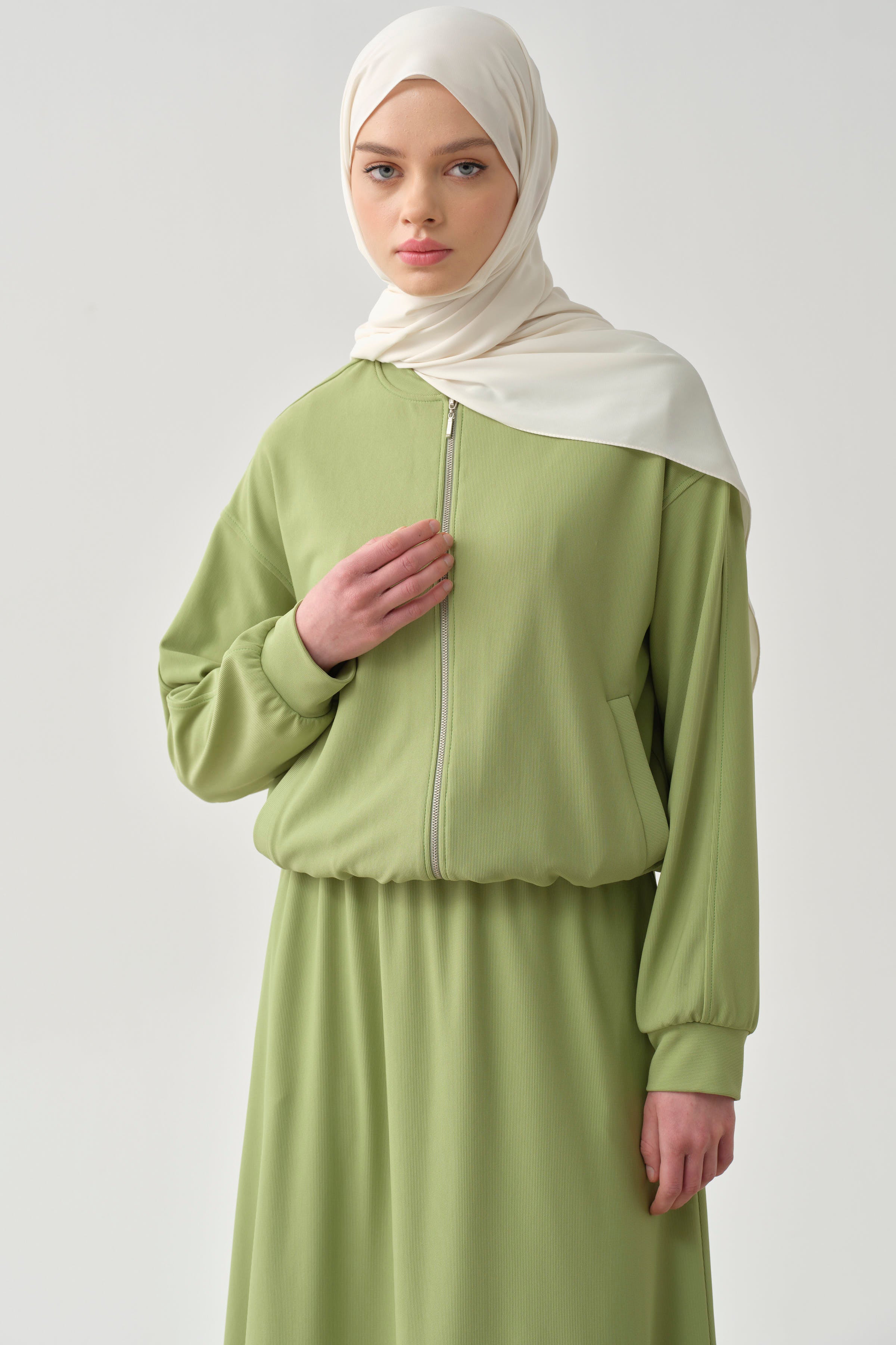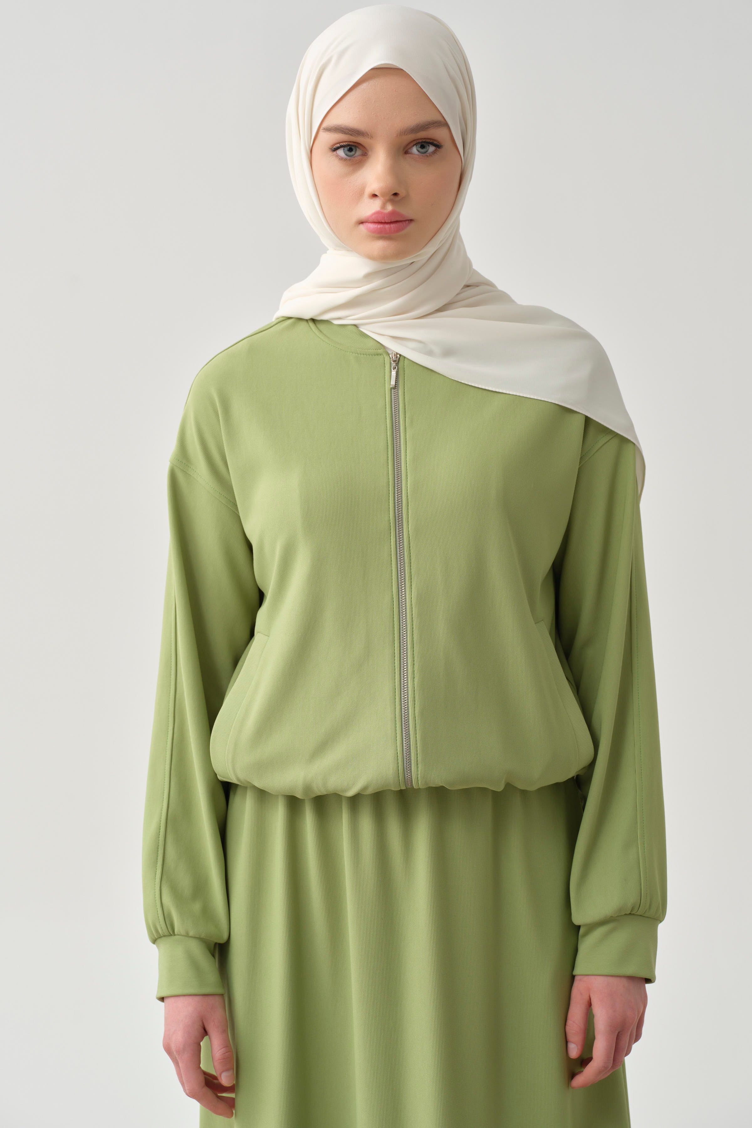 Pilot Yaka Lastikli Örme Ceket - Fıstık Yeşili