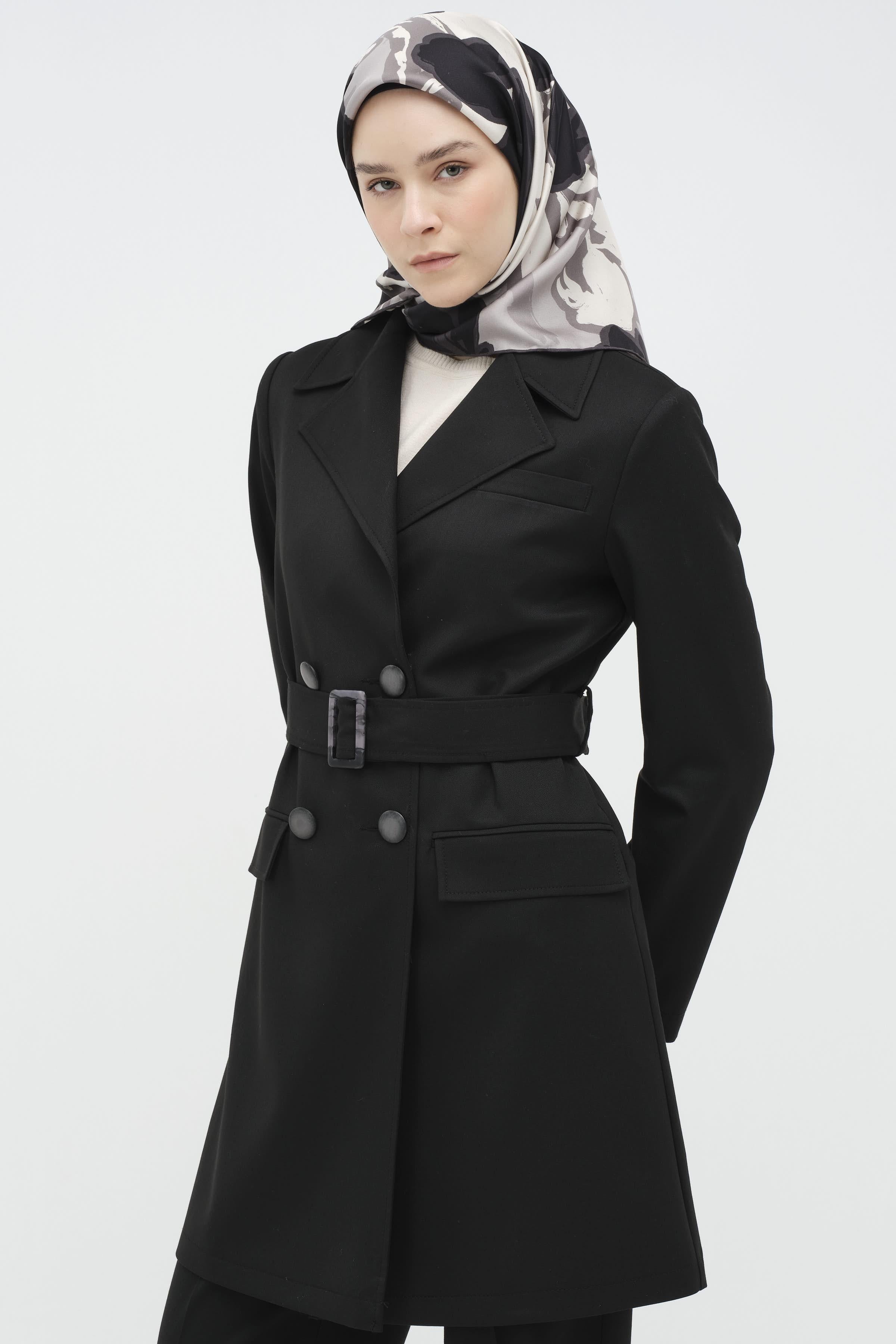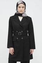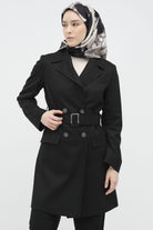 Tokalı Kemer Detaylı Ceket - Siyah