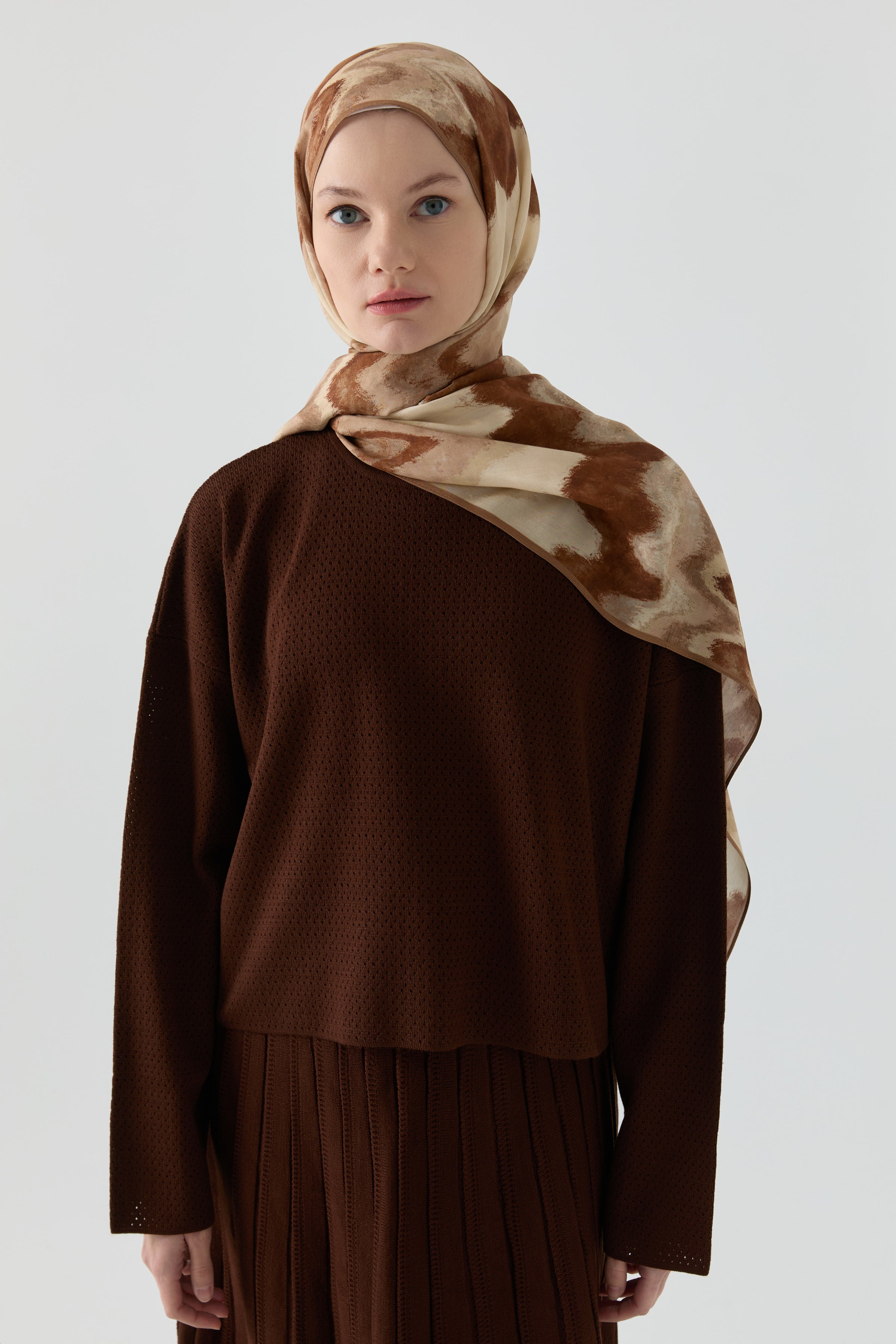 El işçiliğini andıran ikat desenleriyle tasarlanan bu natural şal, zarif dokusuyla doğal bir şıklık sunar. Yumuşak kumaşı gün boyu konfor sağlarken, desenin sanatsal geçişleri stilinize karakter katar.