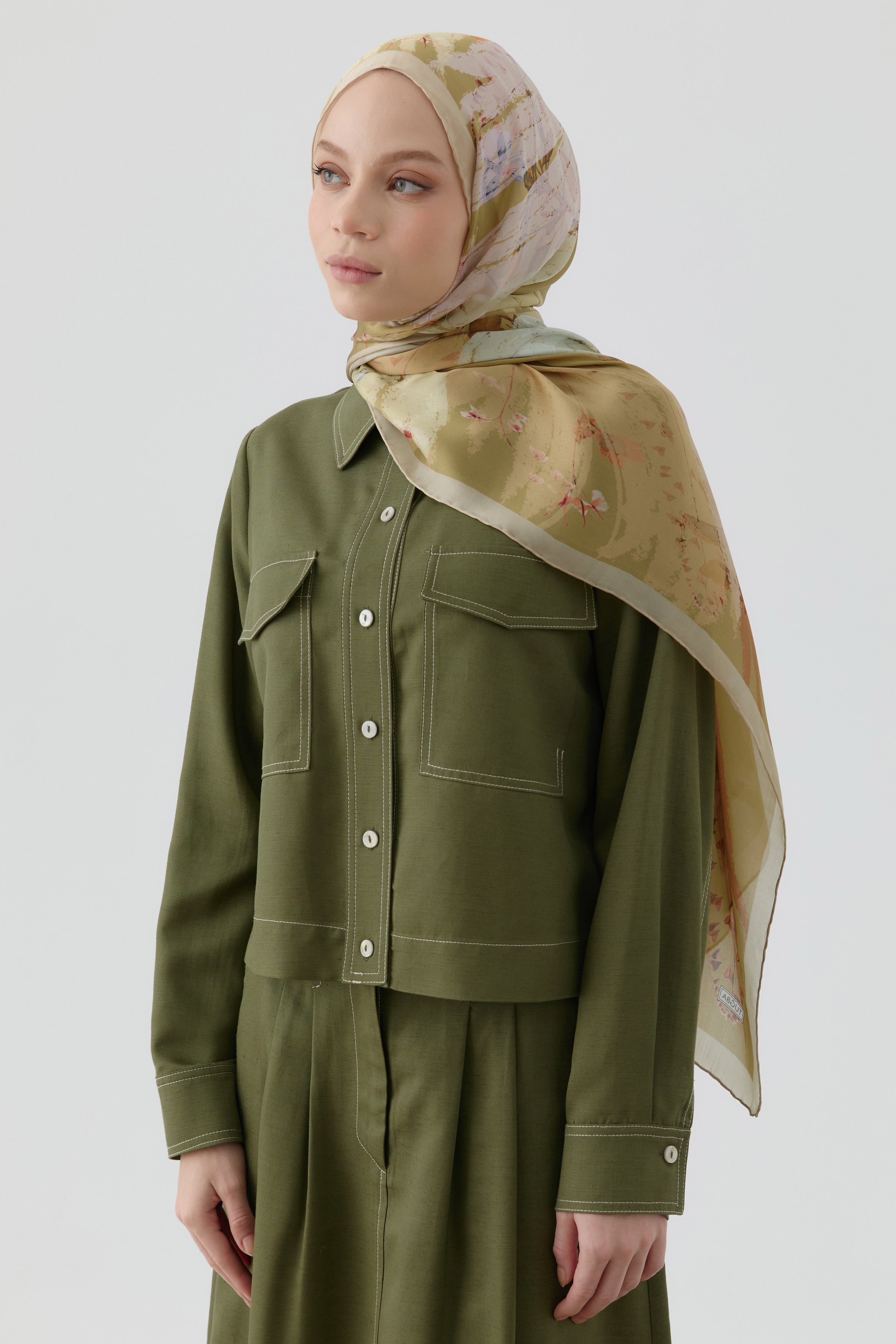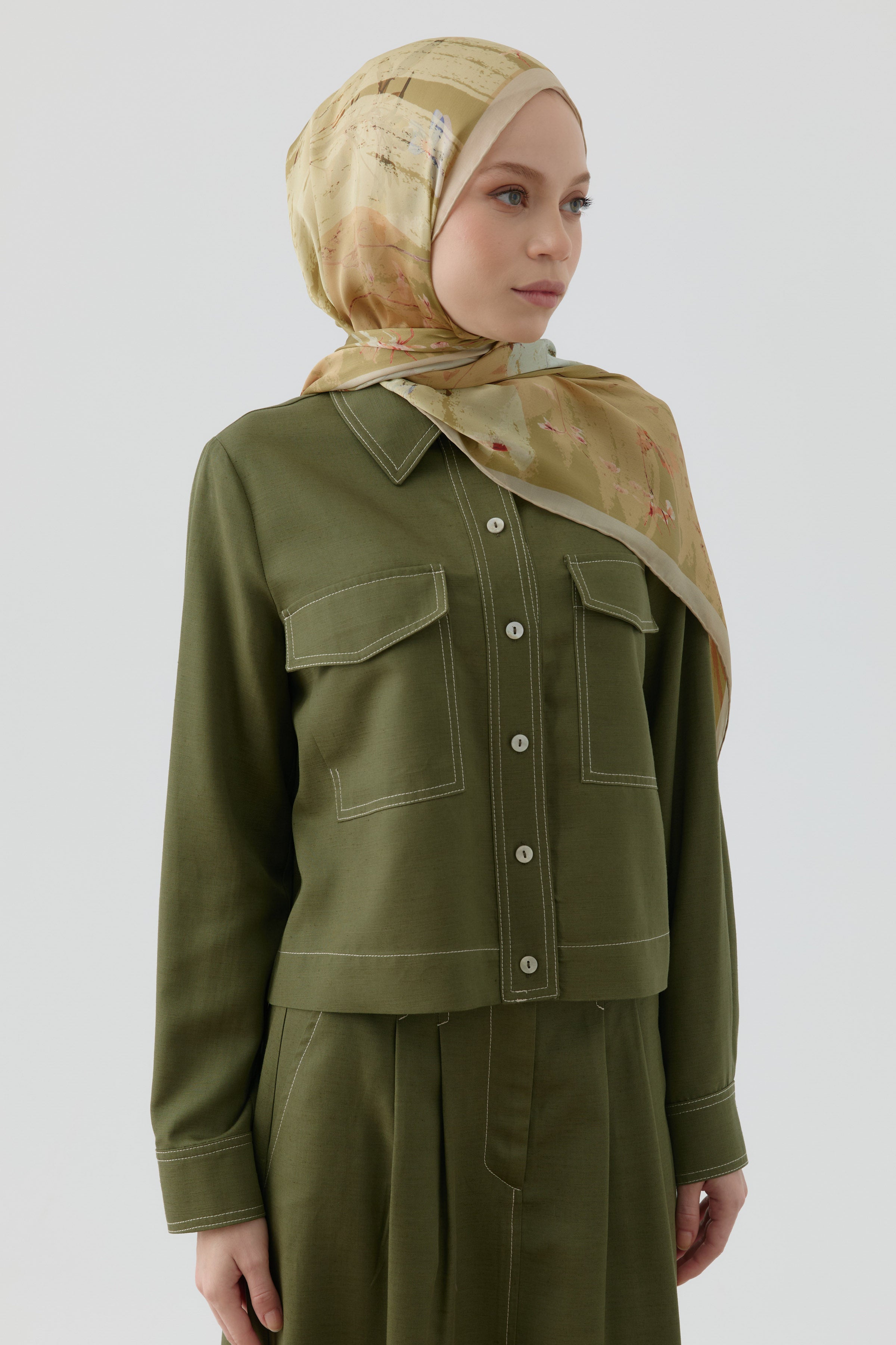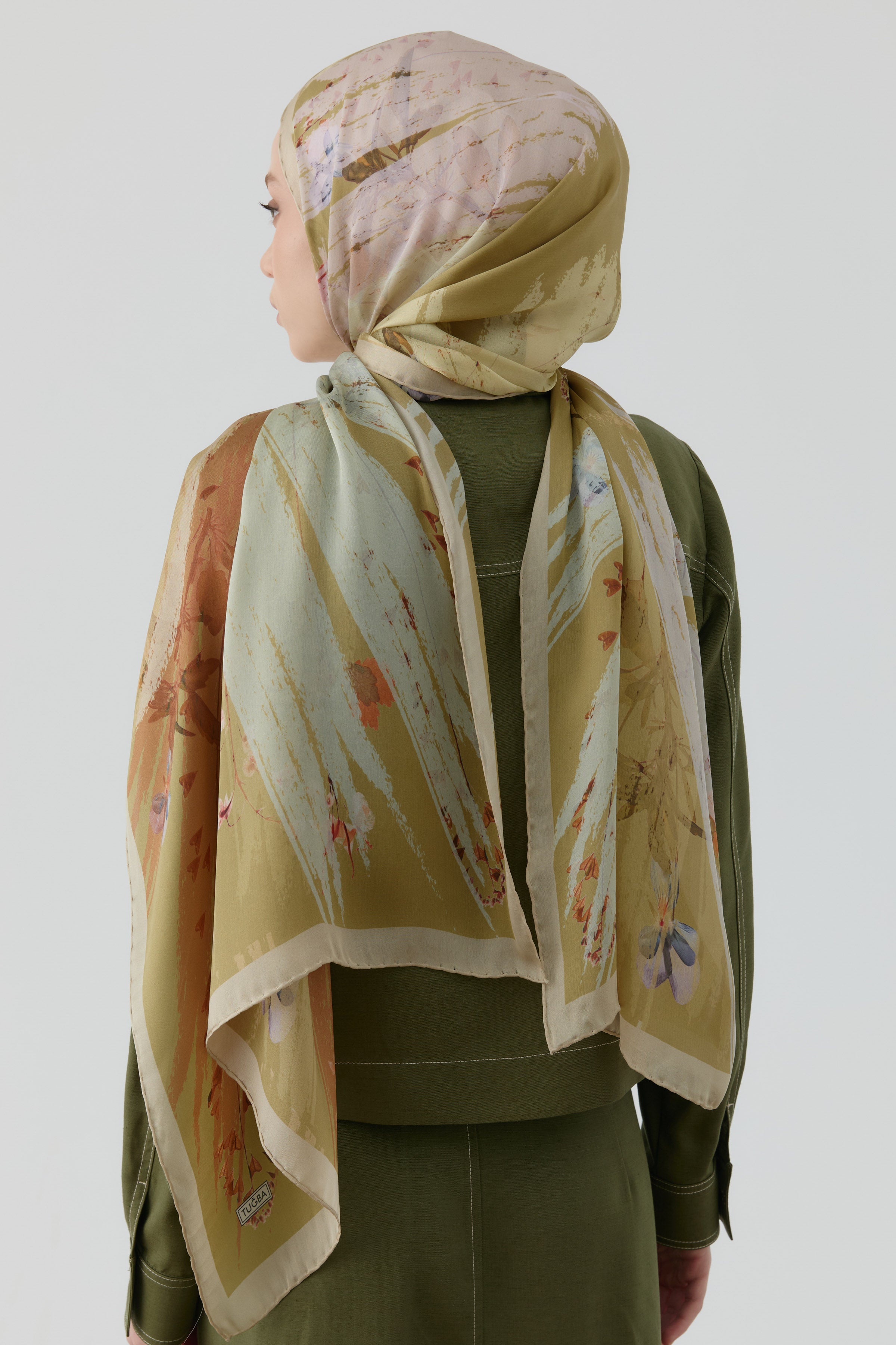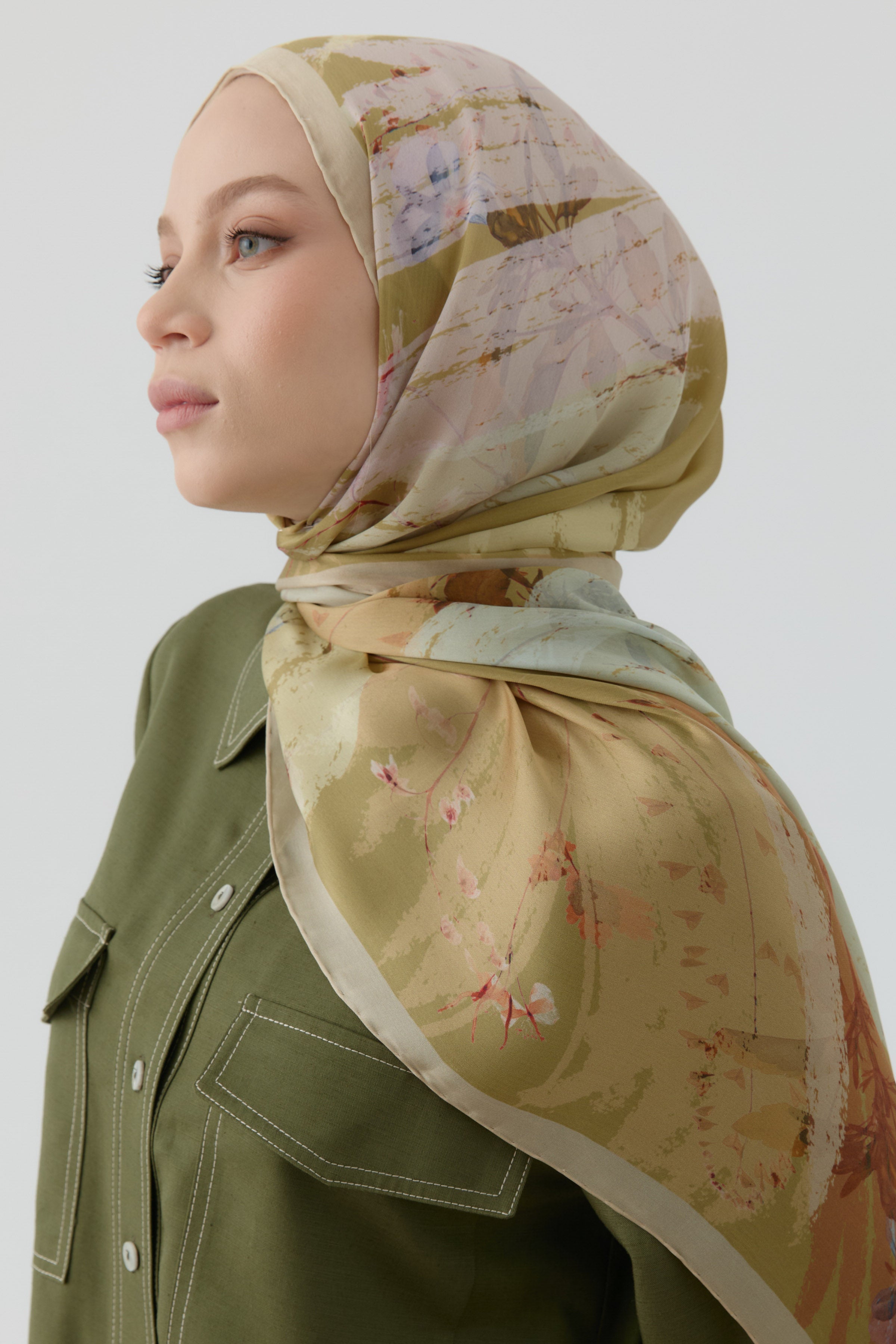 Kardelen Şifon İpek Şal - Olive