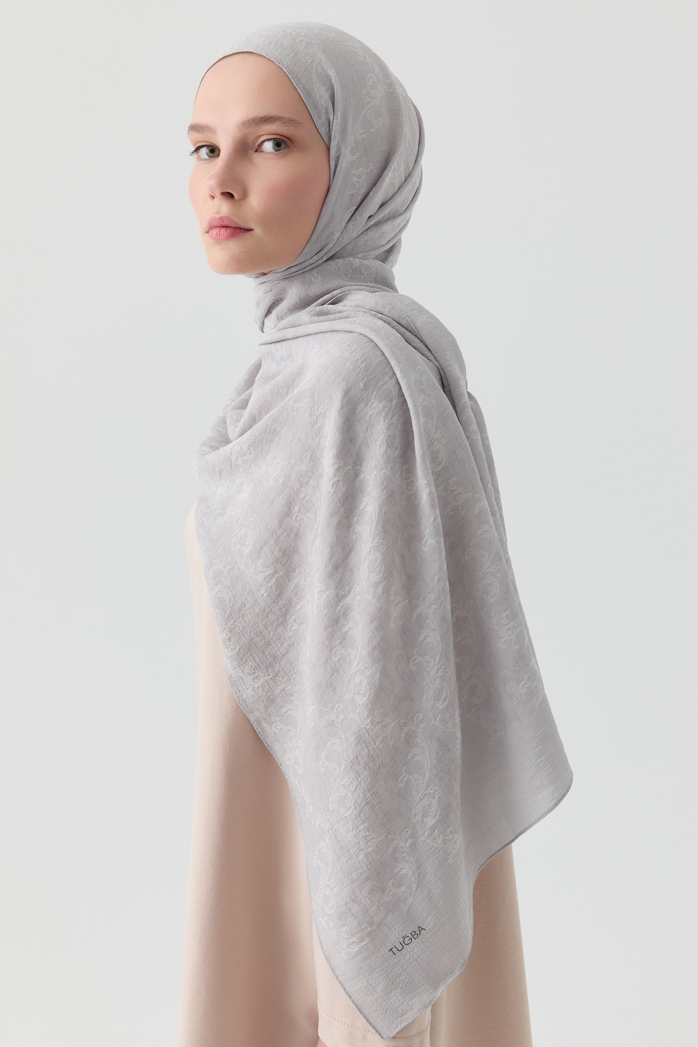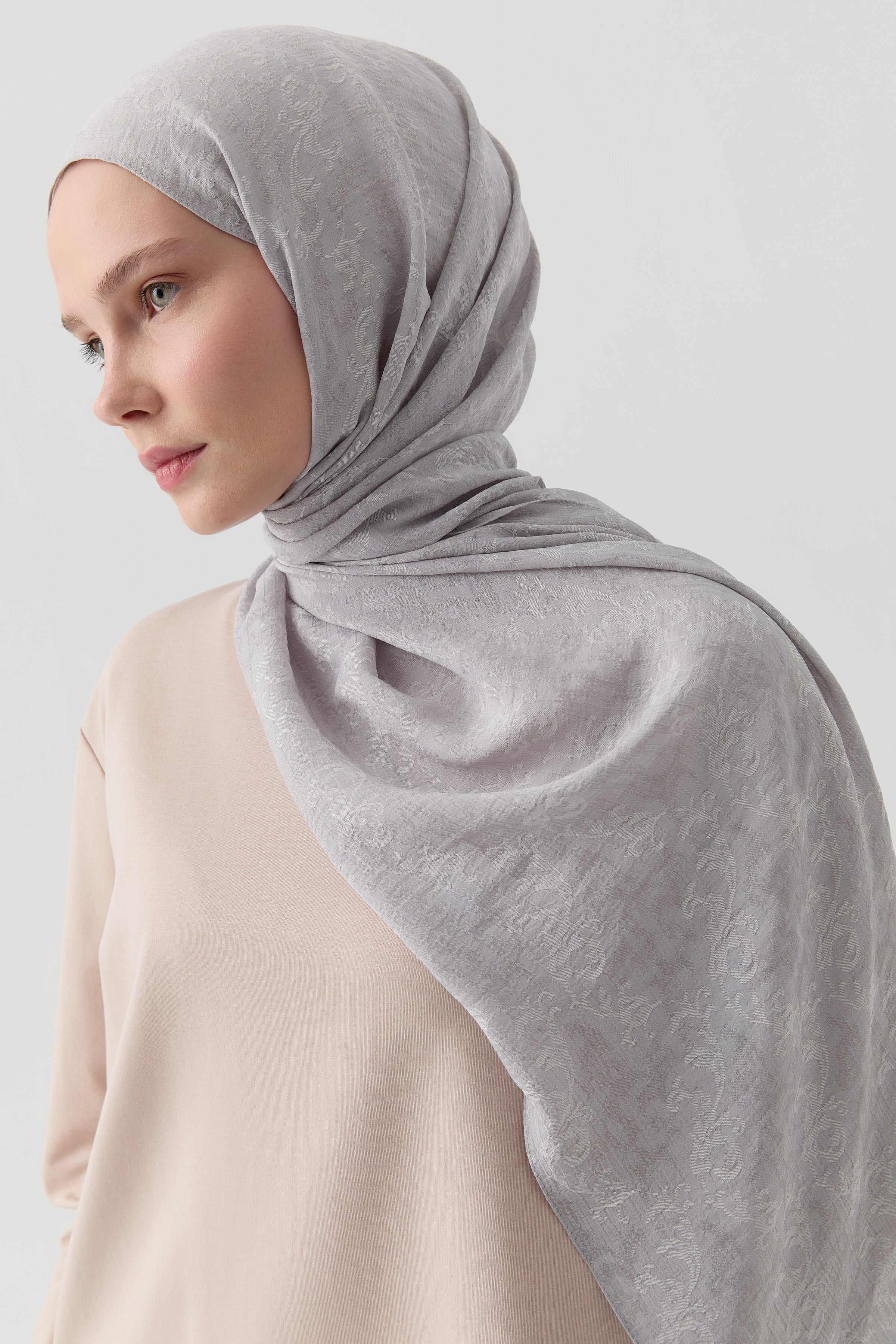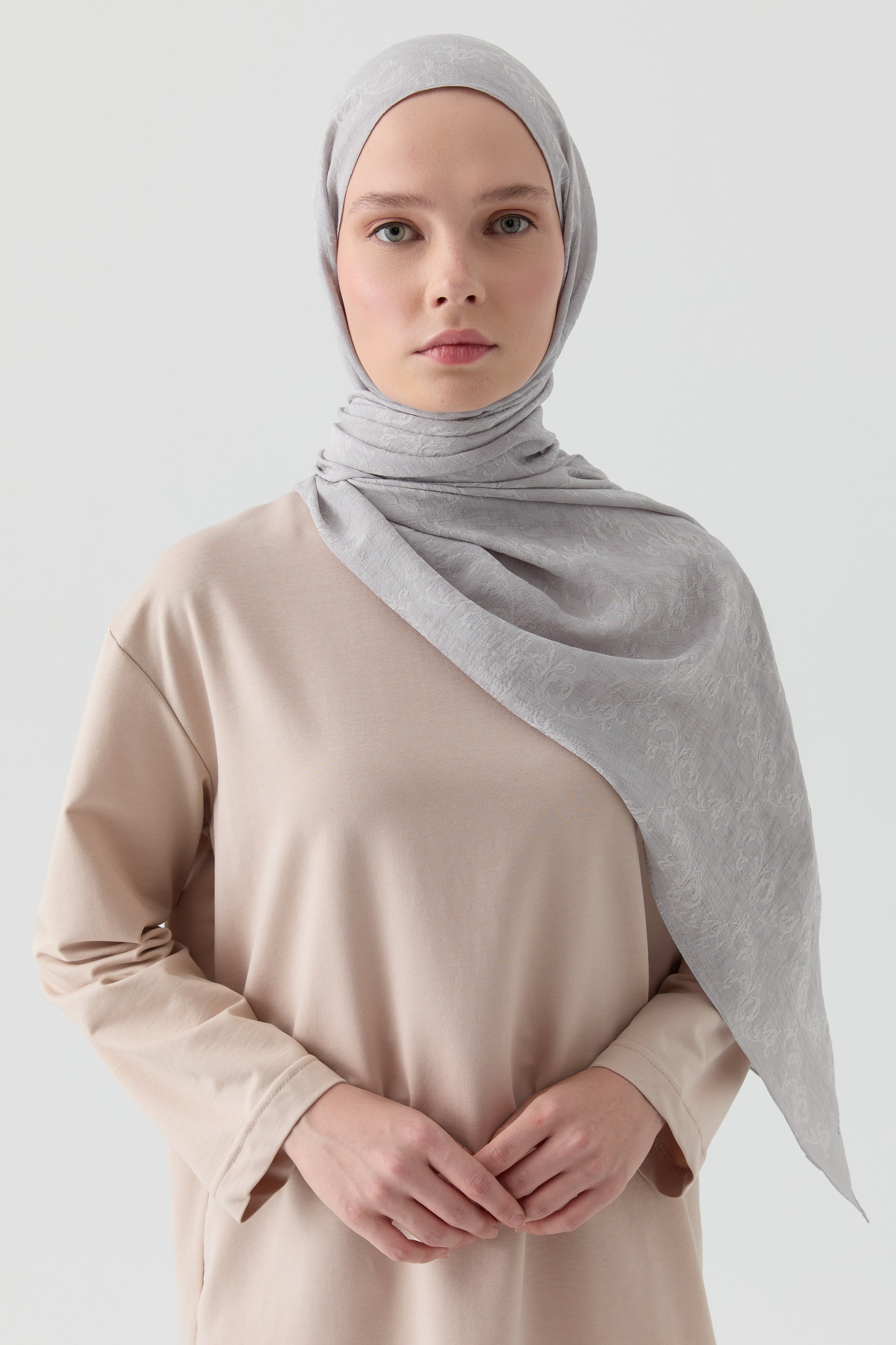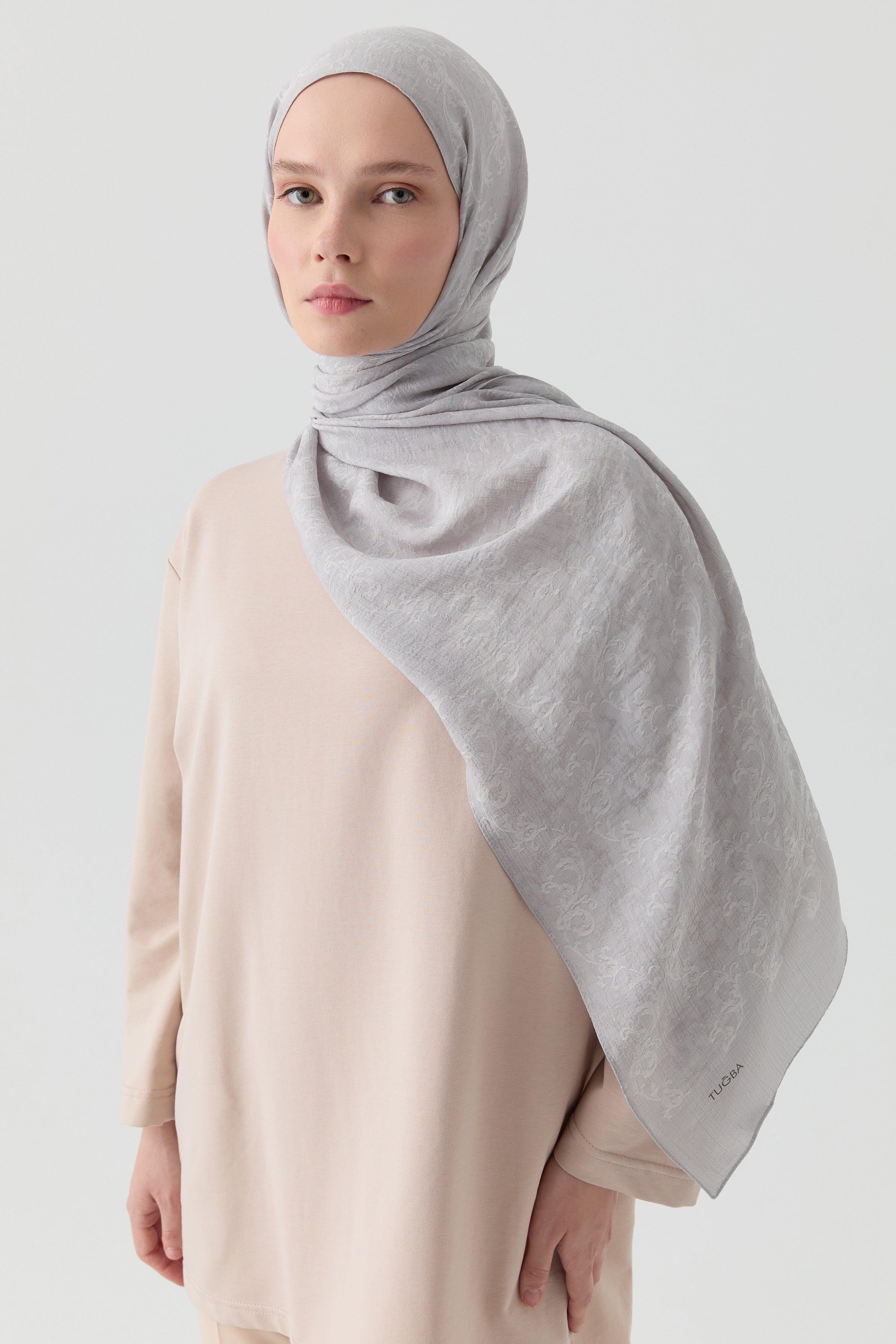 Özenle işlenmiş jakar dokusu ve zarif motifleriyle bu şal, stilinize sofistike bir detay ekler. Hafif ve akıcı yapısı, rahat kullanım sağlarken farklı kombinlerle modern ve şık bir görünüm sunar.