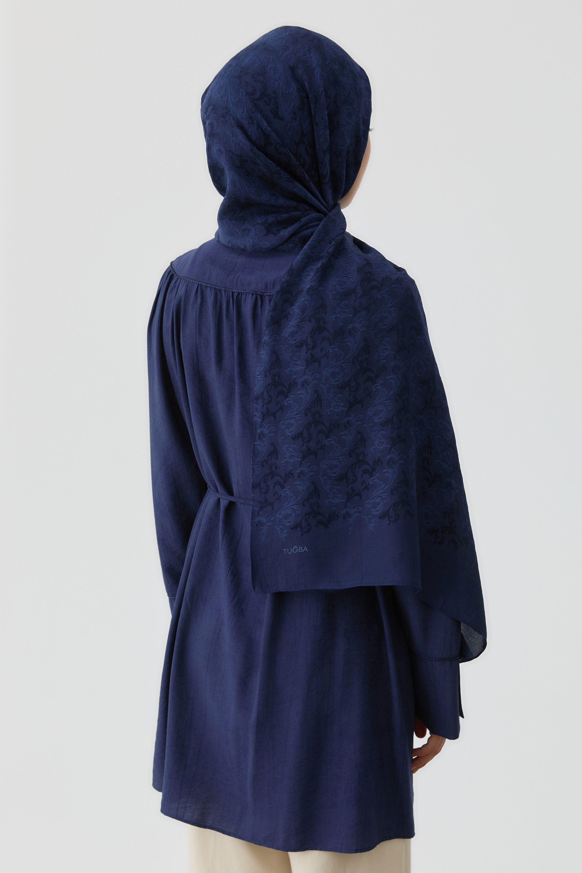 Özenle işlenmiş jakar dokusu ve zarif motifleriyle bu şal, stilinize sofistike bir detay ekler. Hafif ve akıcı yapısı, rahat kullanım sağlarken farklı kombinlerle modern ve şık bir görünüm sunar.