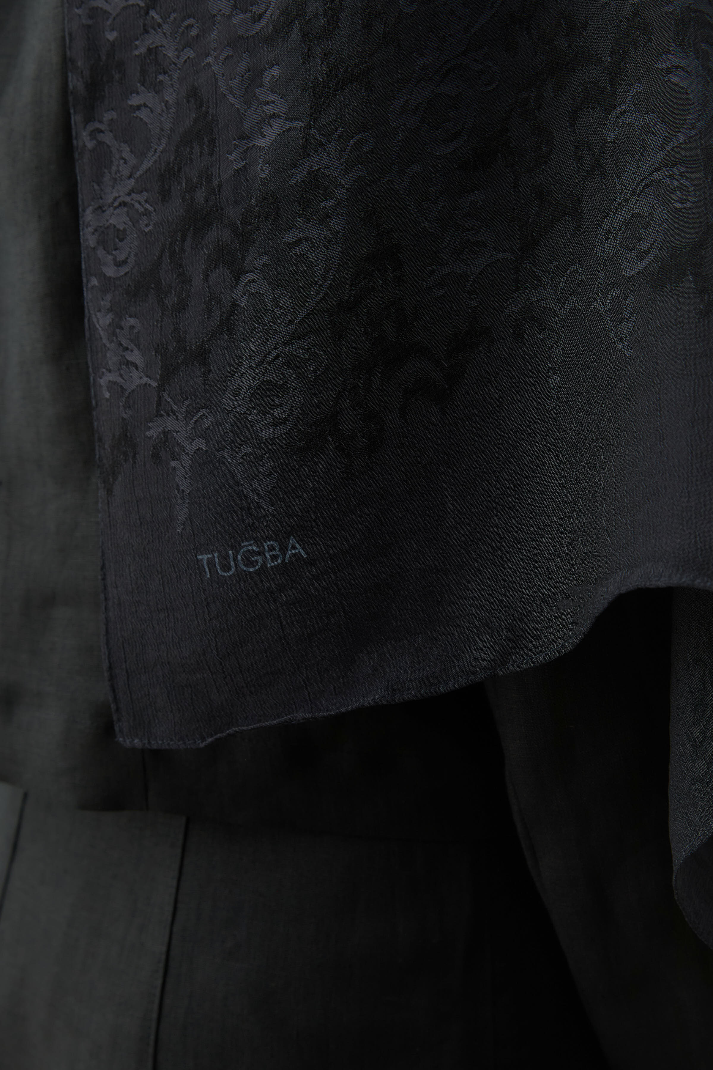 Özenle işlenmiş jakar dokusu ve zarif motifleriyle bu şal, stilinize sofistike bir detay ekler. Hafif ve akıcı yapısı, rahat kullanım sağlarken farklı kombinlerle modern ve şık bir görünüm sunar.