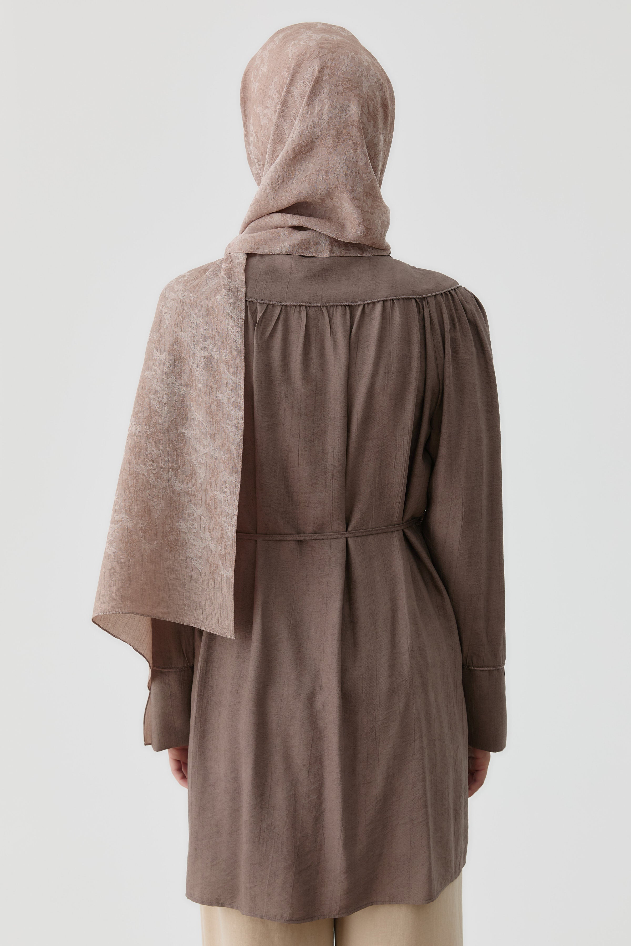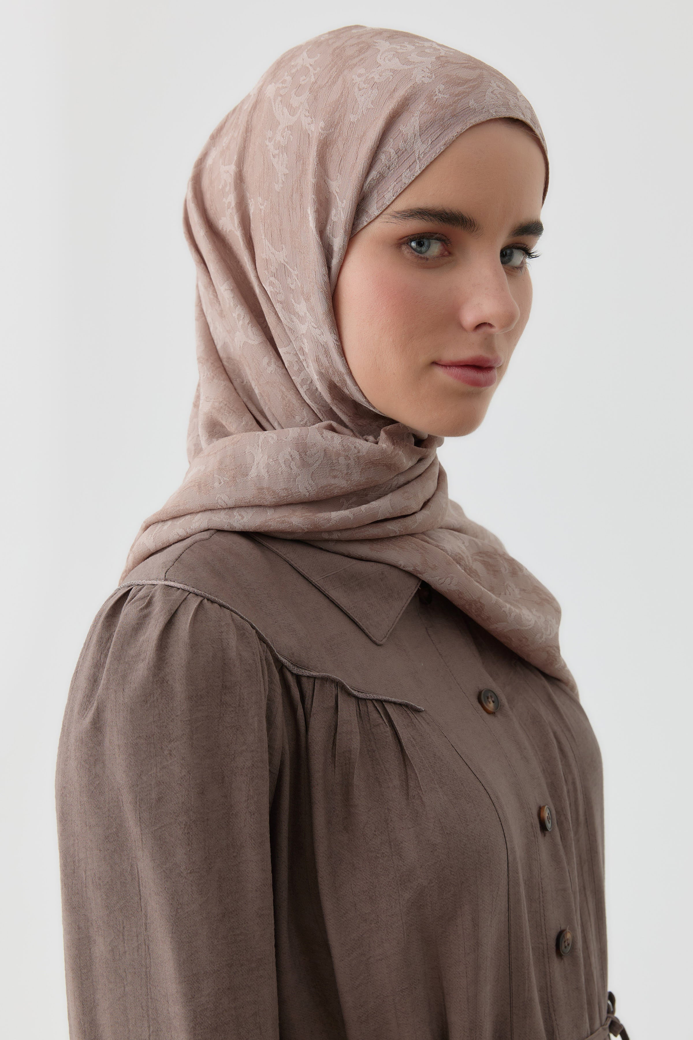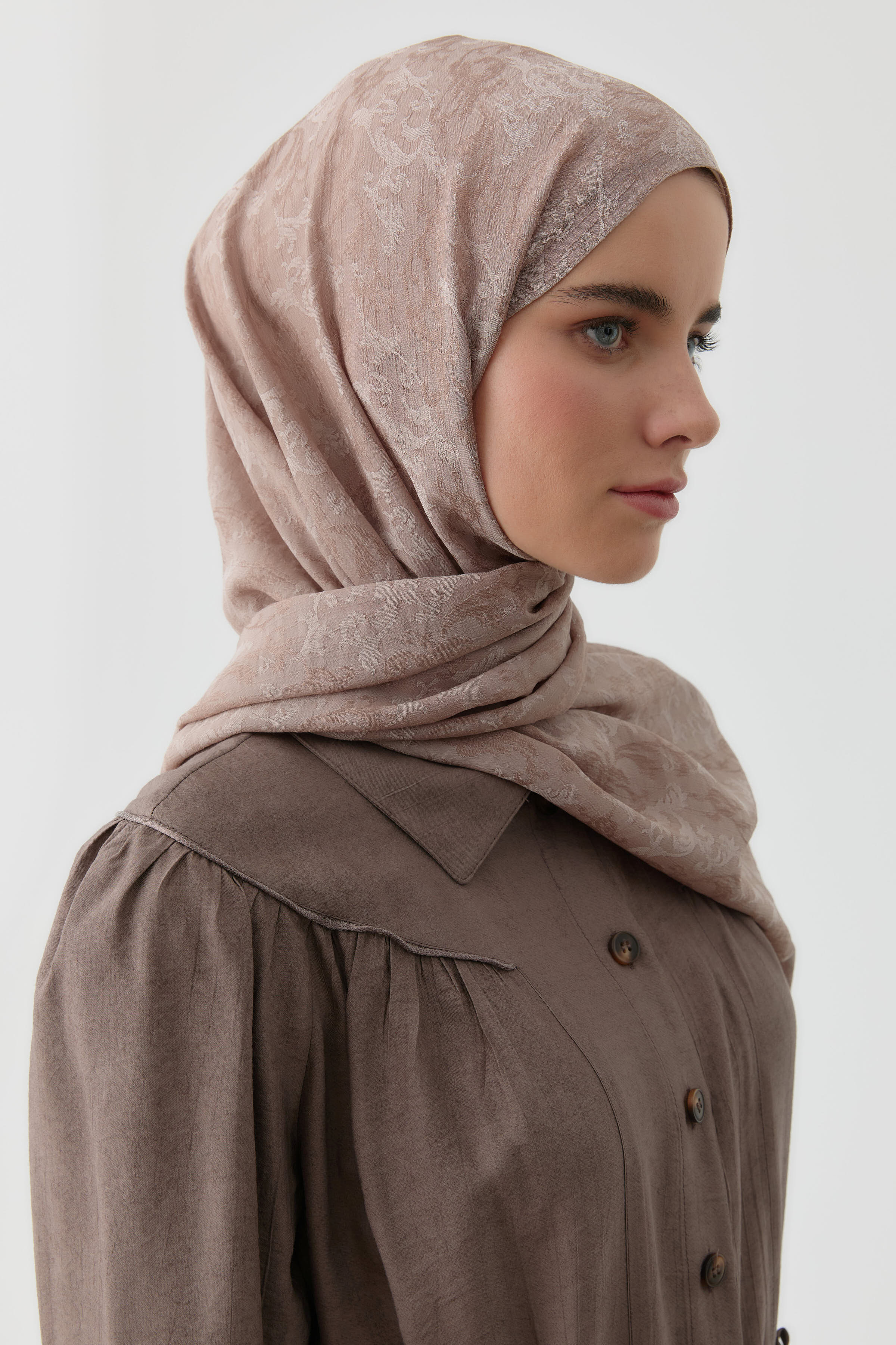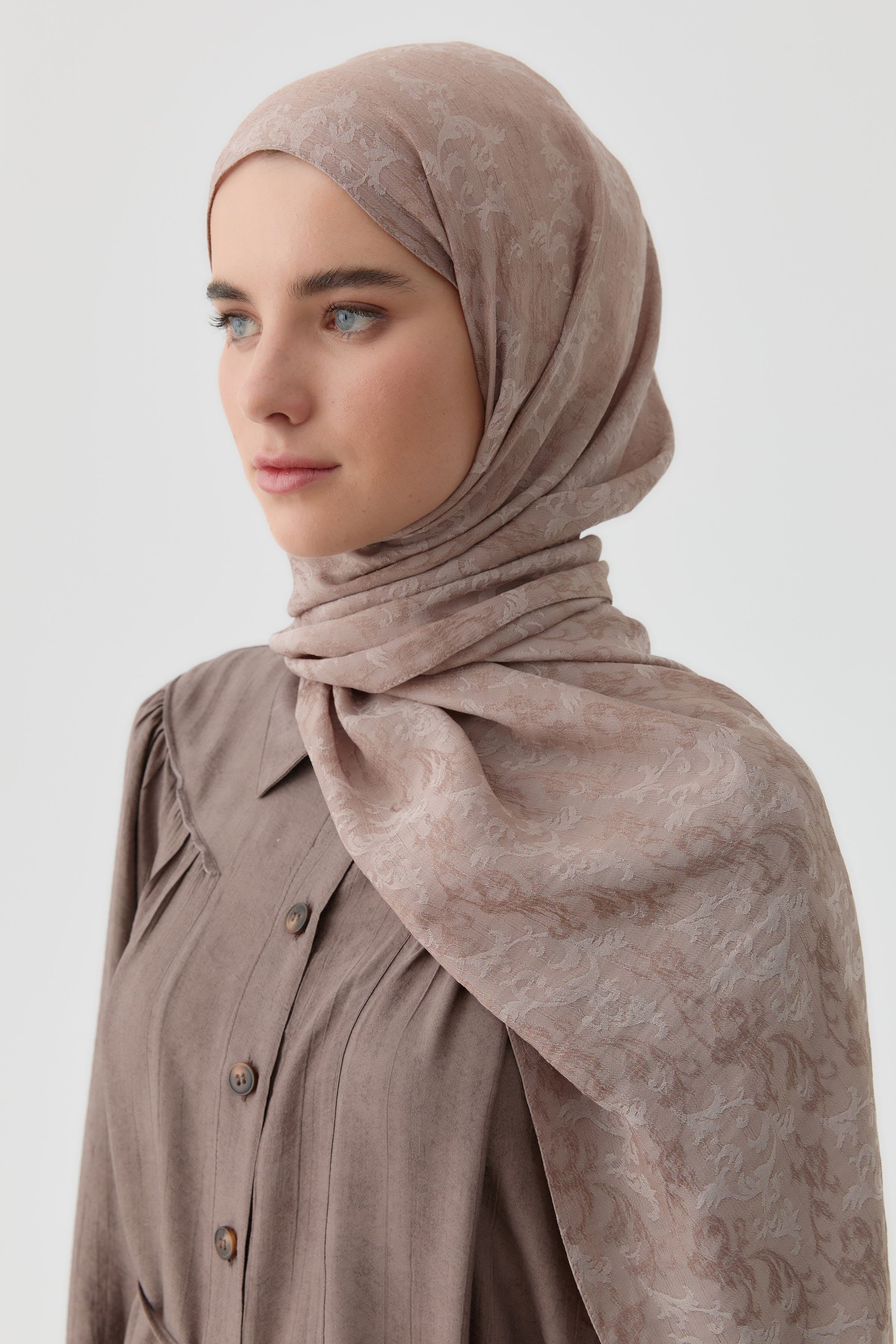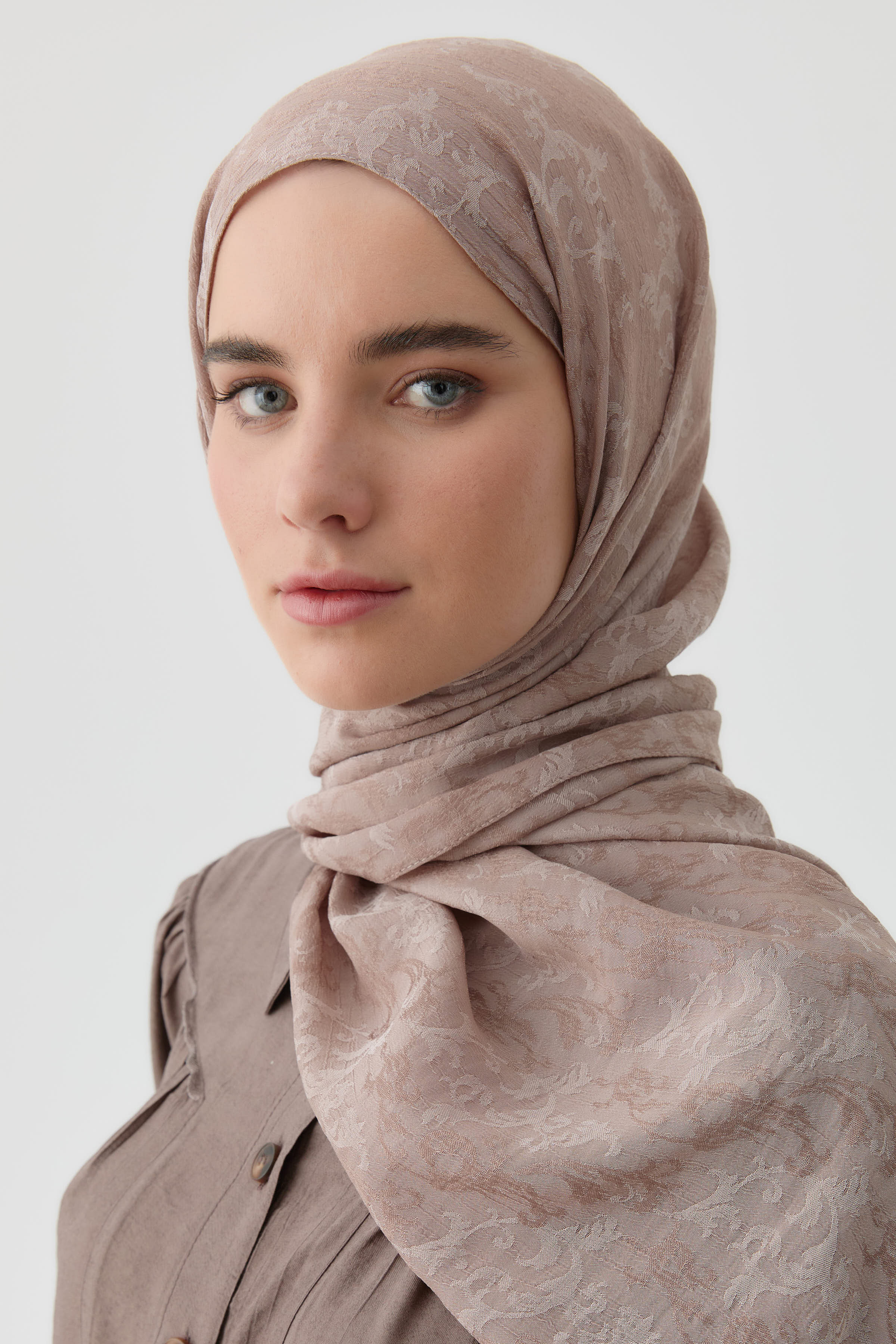 Özenle işlenmiş jakar dokusu ve zarif motifleriyle bu şal, stilinize sofistike bir detay ekler. Hafif ve akıcı yapısı, rahat kullanım sağlarken farklı kombinlerle modern ve şık bir görünüm sunar.