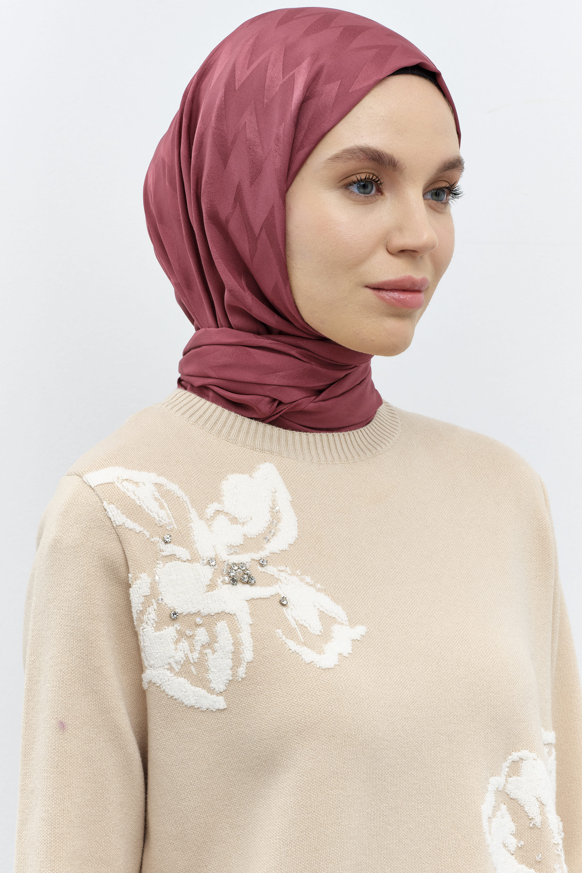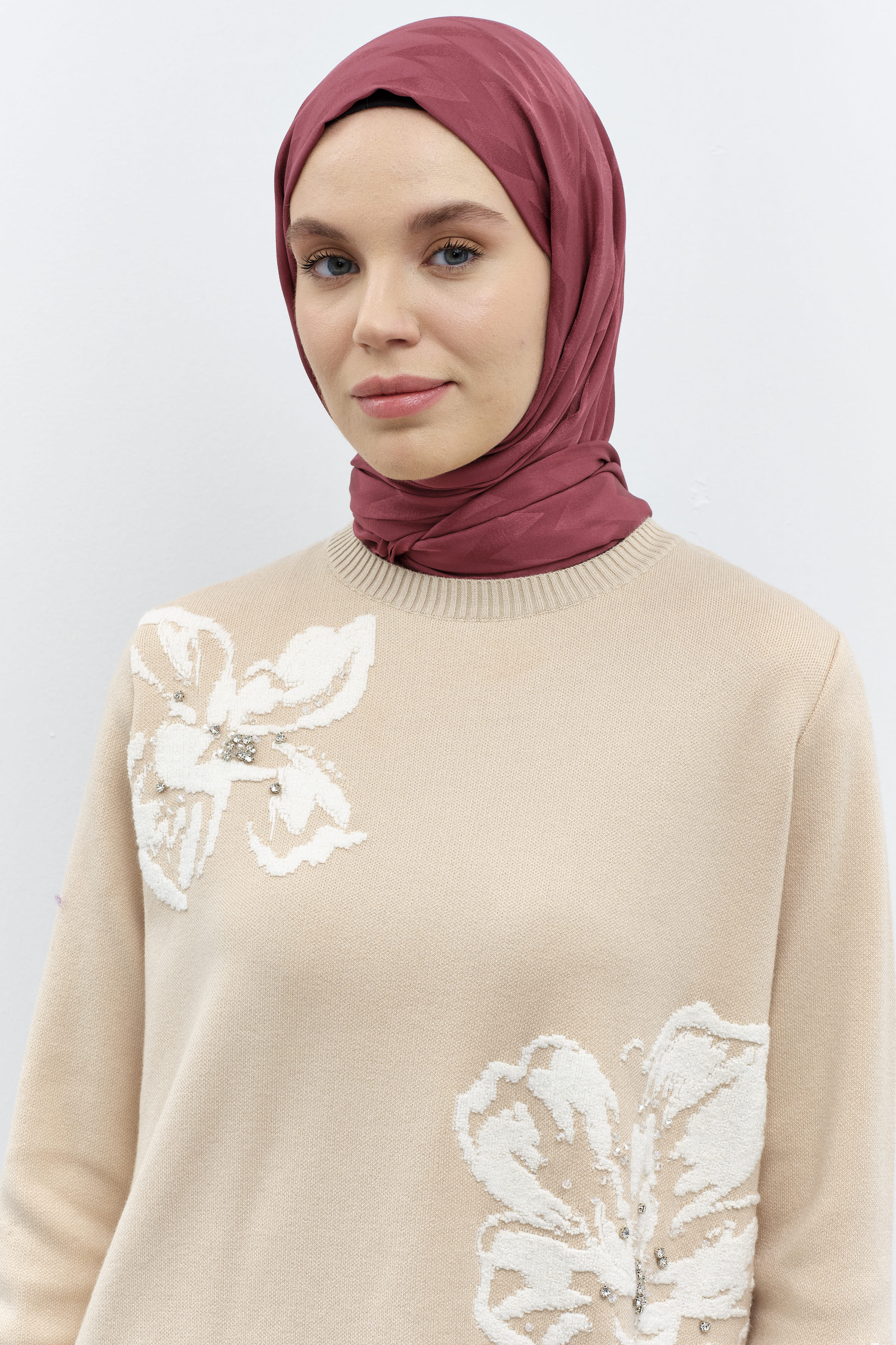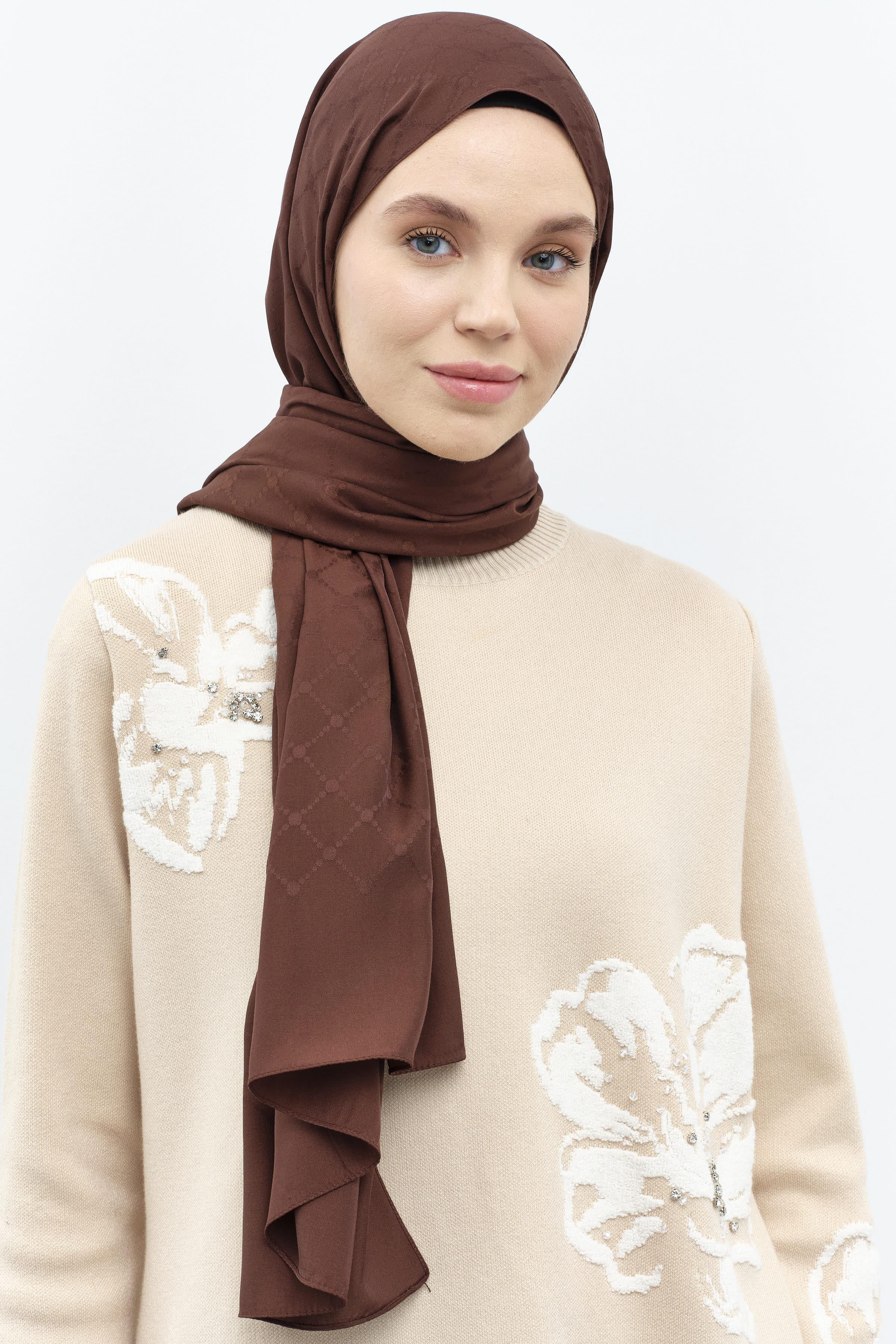 Modernizme atıfta bulunan özel çiçek desenlerinin zemin üzerine simetrik bir şekilde konumlandığı desenli şal modelleri gardıroplarınızın vazgeçilmezi olmaya aday.