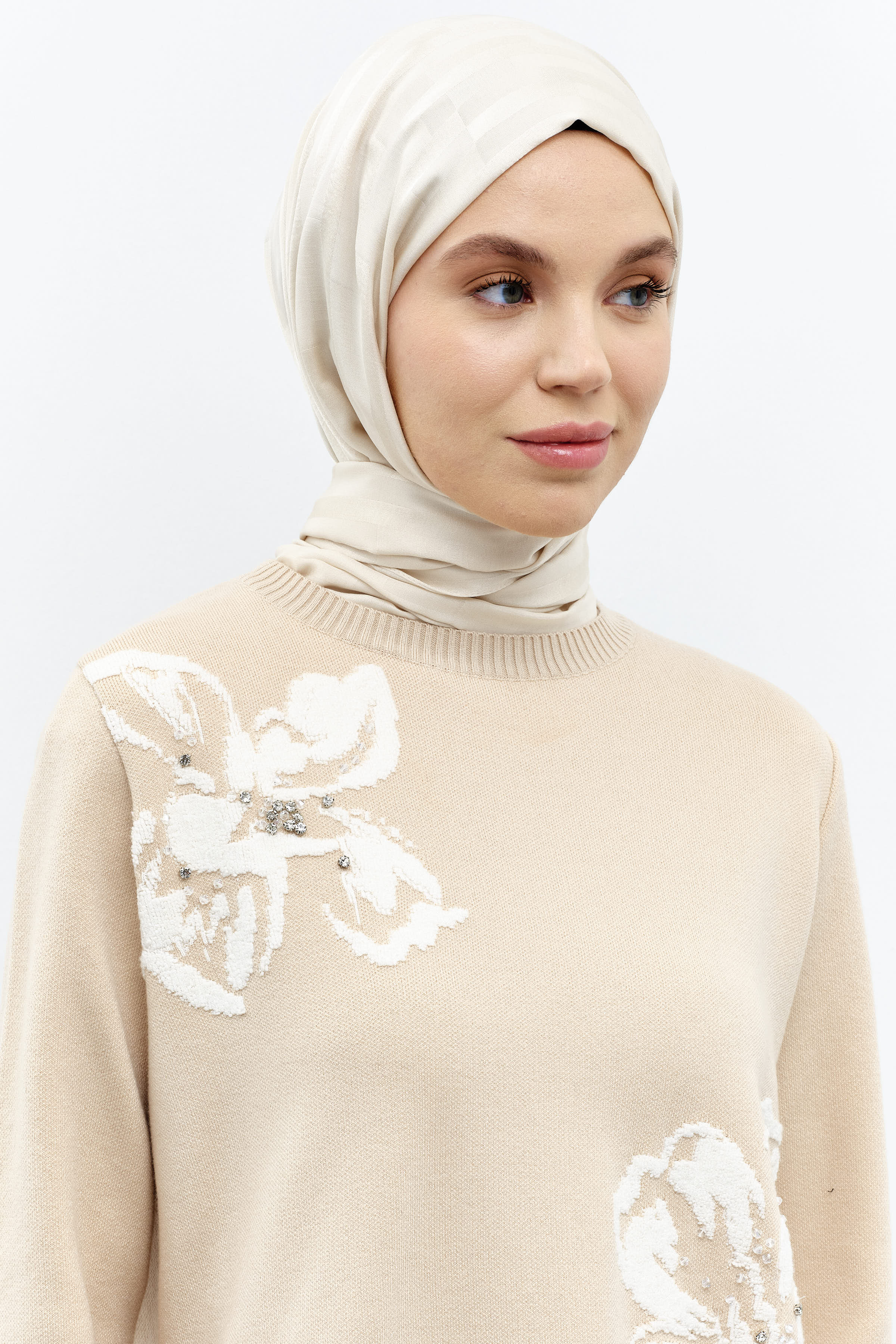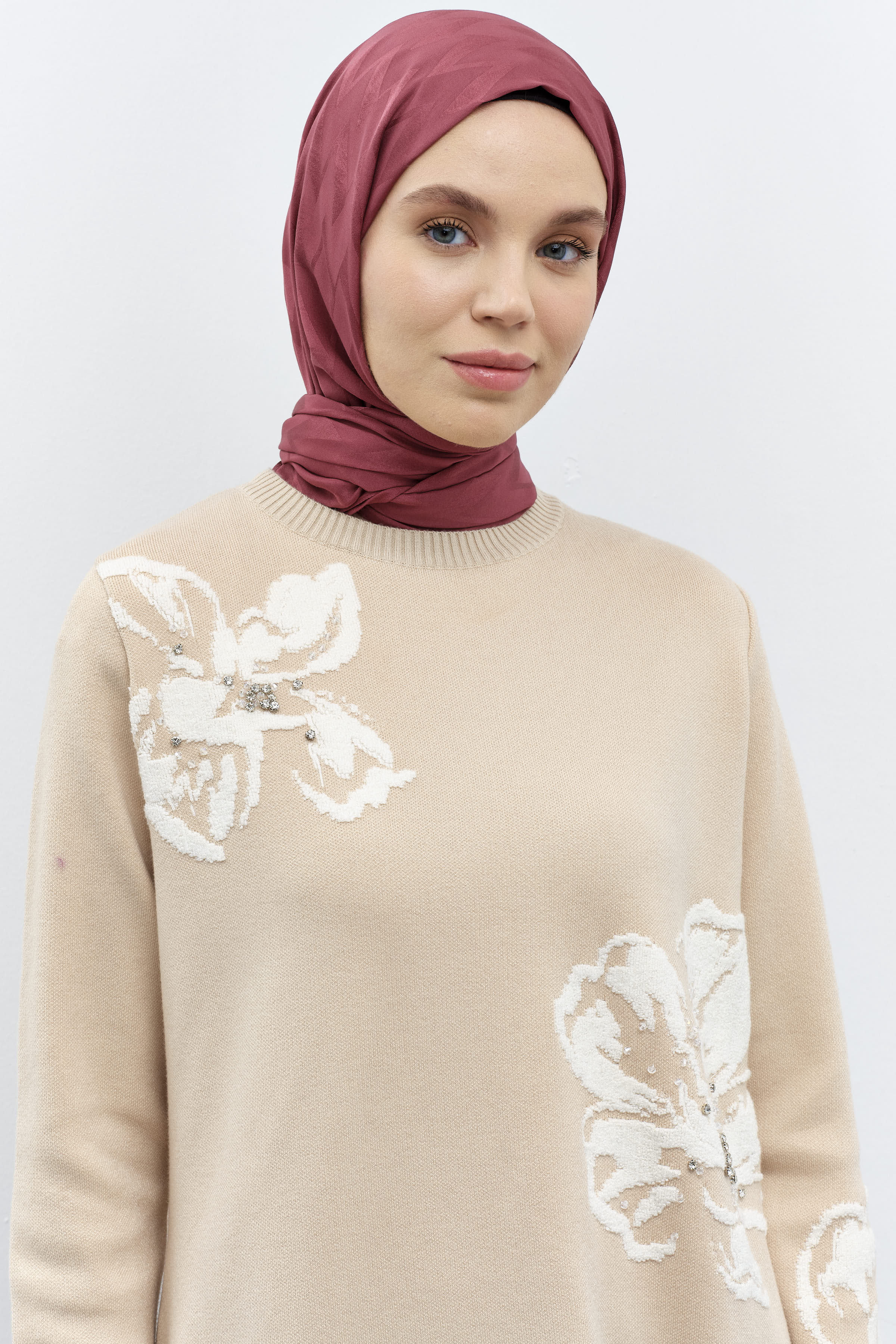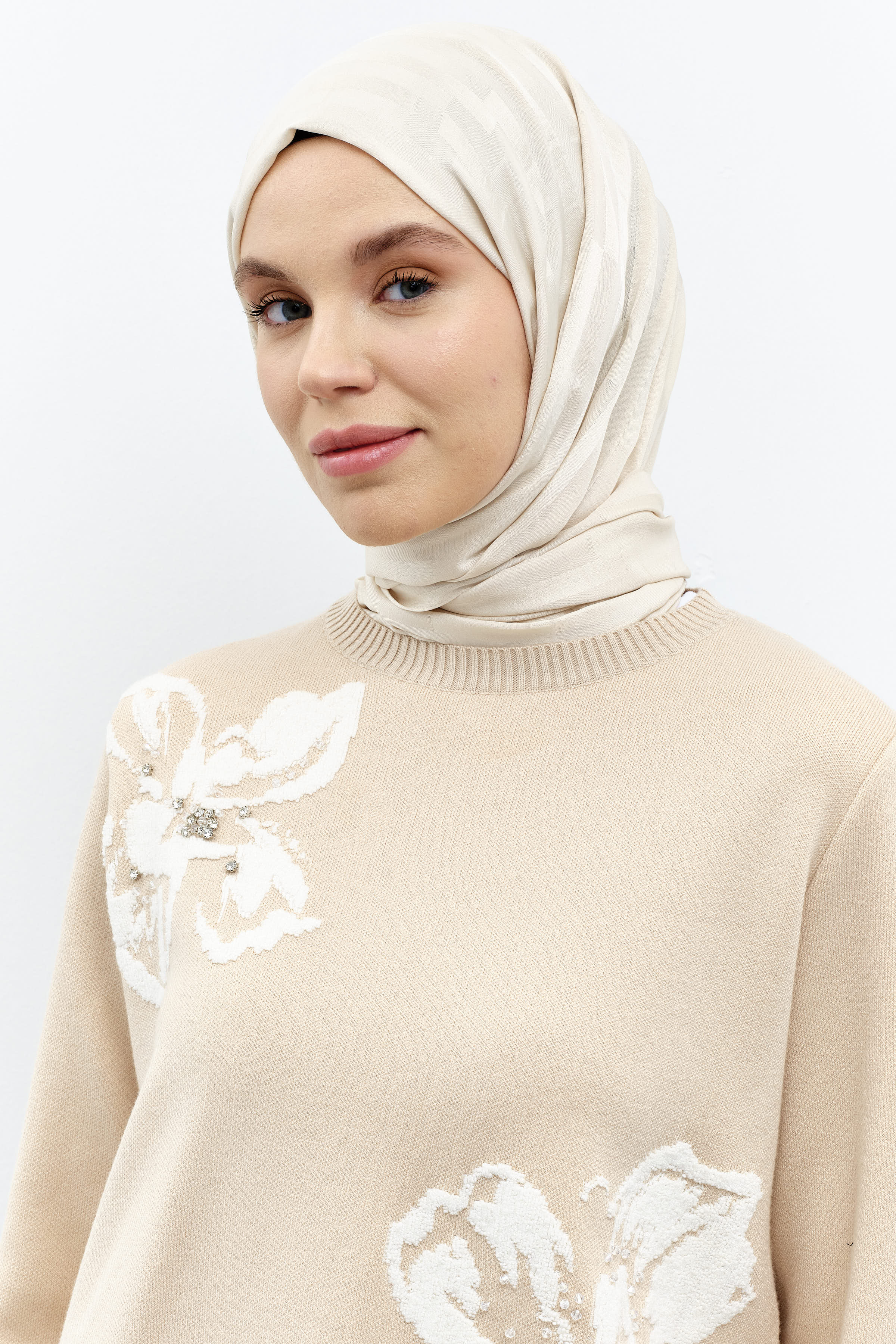 Modernizme atıfta bulunan özel çiçek desenlerinin zemin üzerine simetrik bir şekilde konumlandığı desenli şal modelleri gardıroplarınızın vazgeçilmezi olmaya aday.
