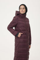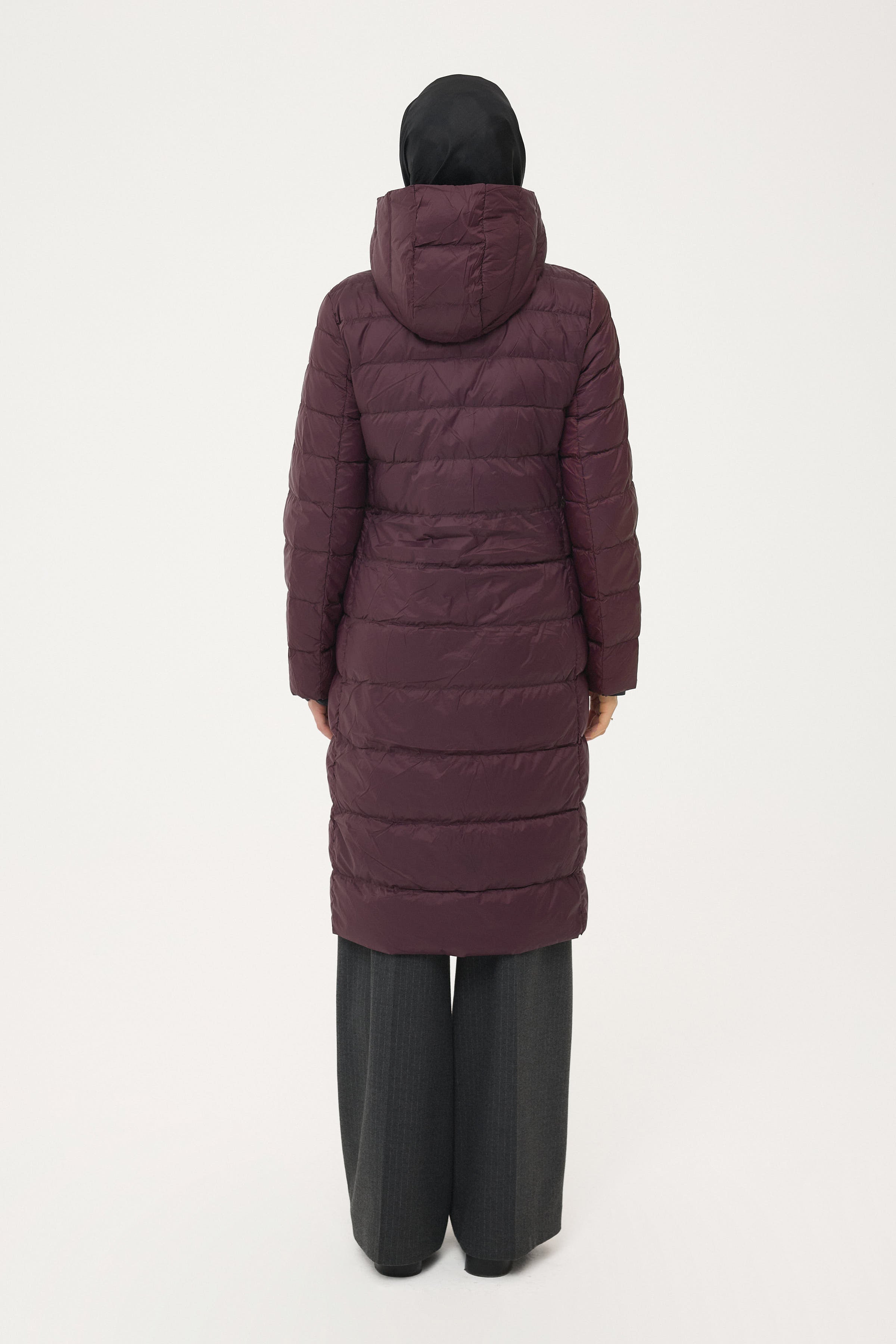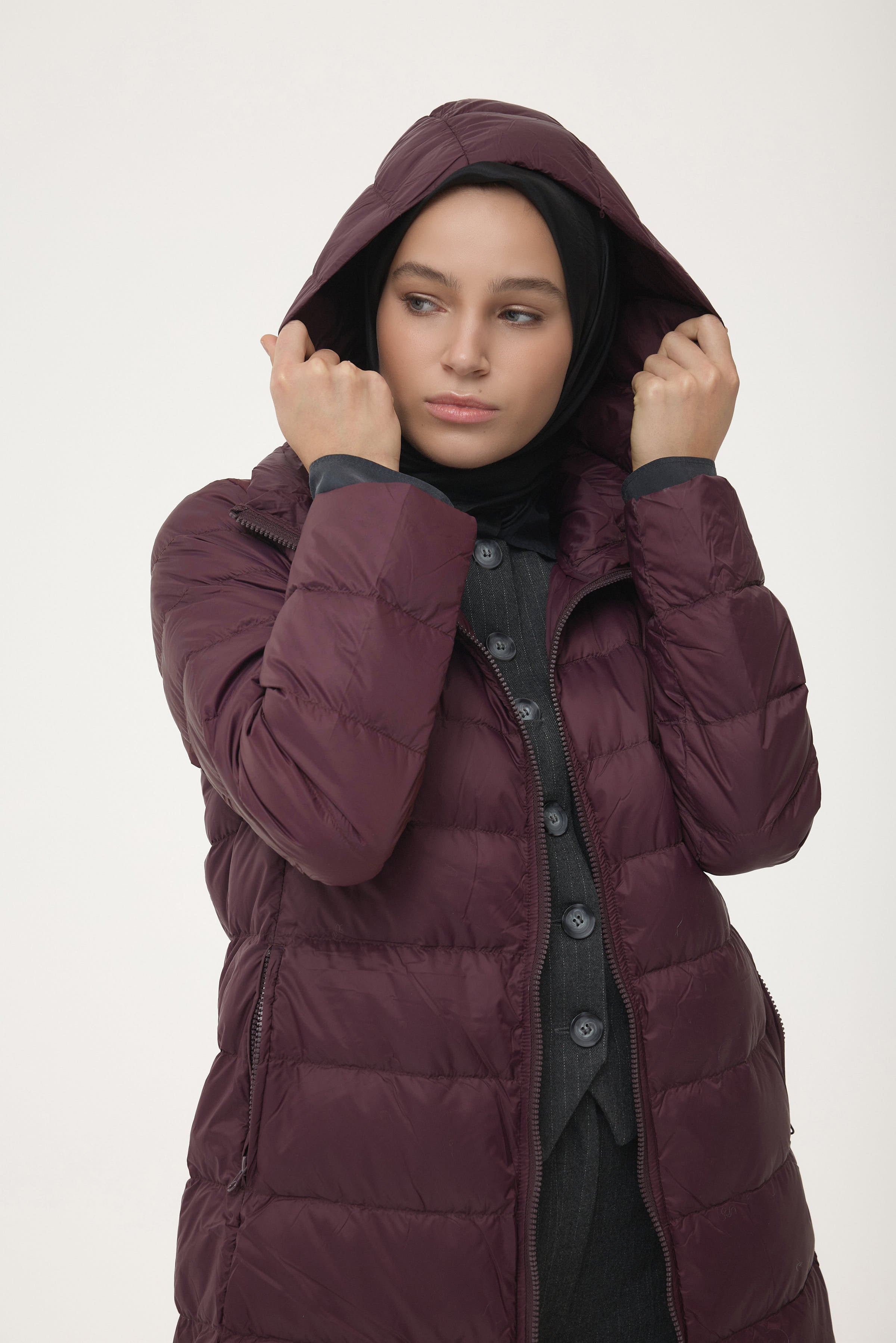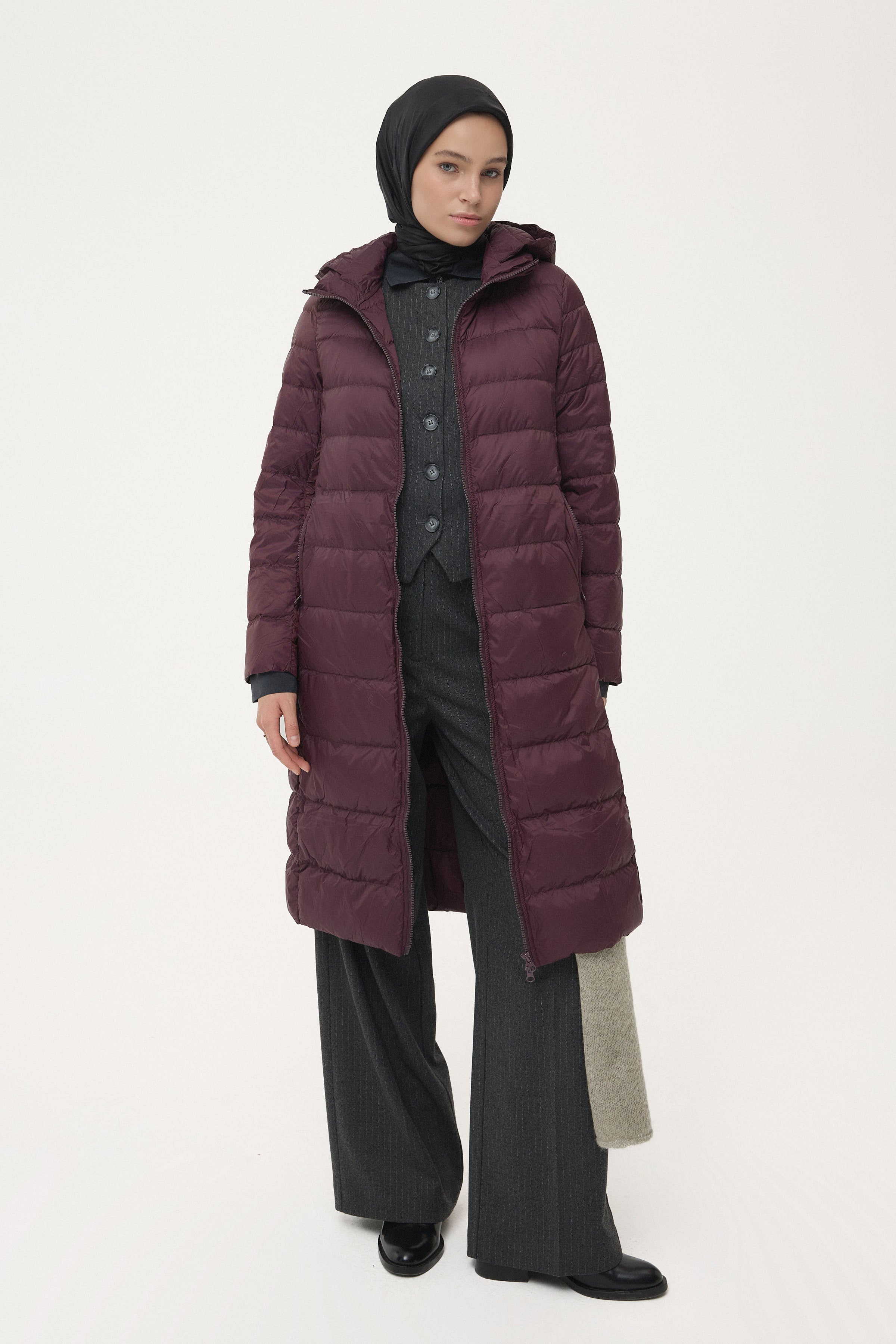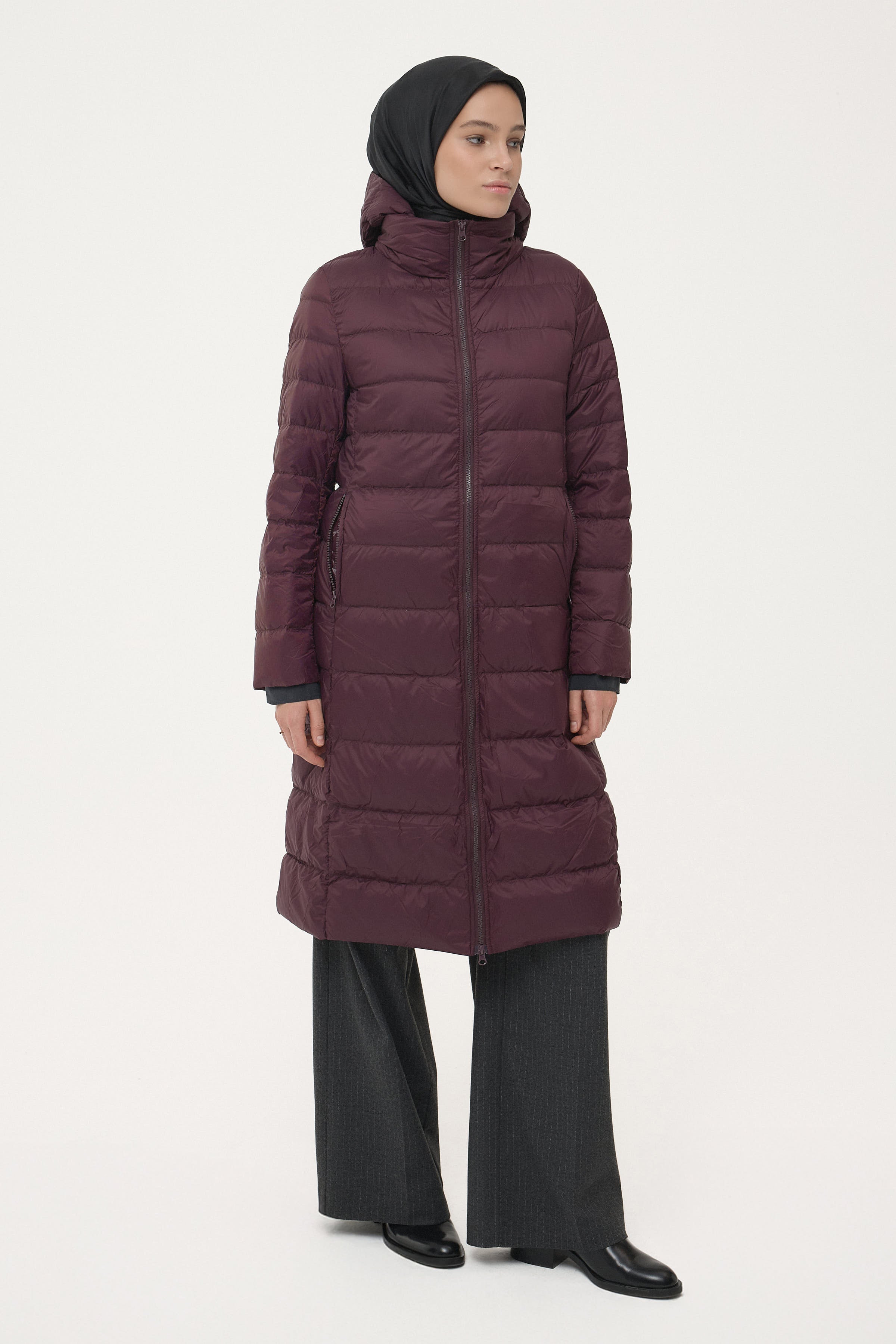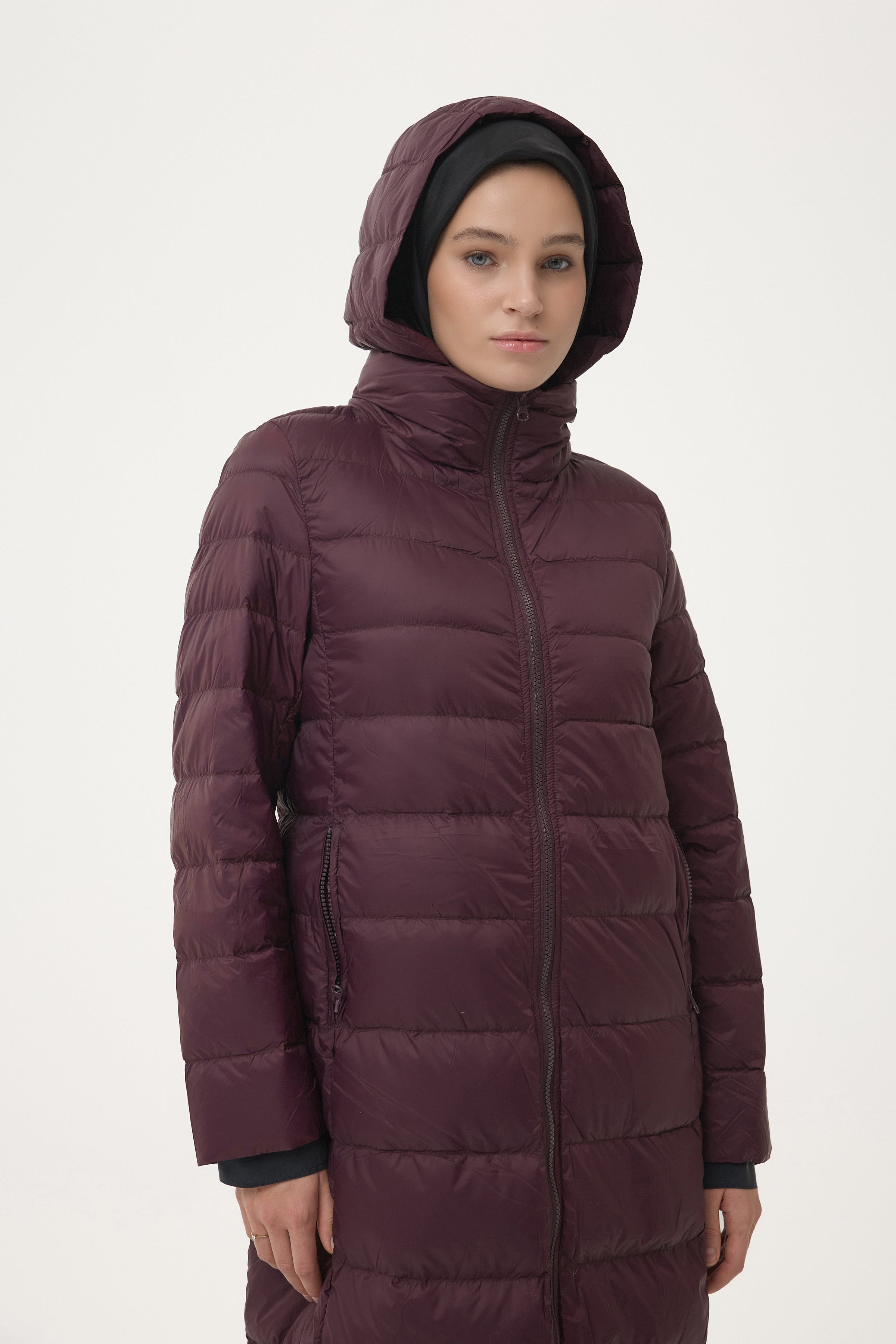 Fermuarlı Kaz Tüyü Kaban - Bordo