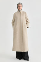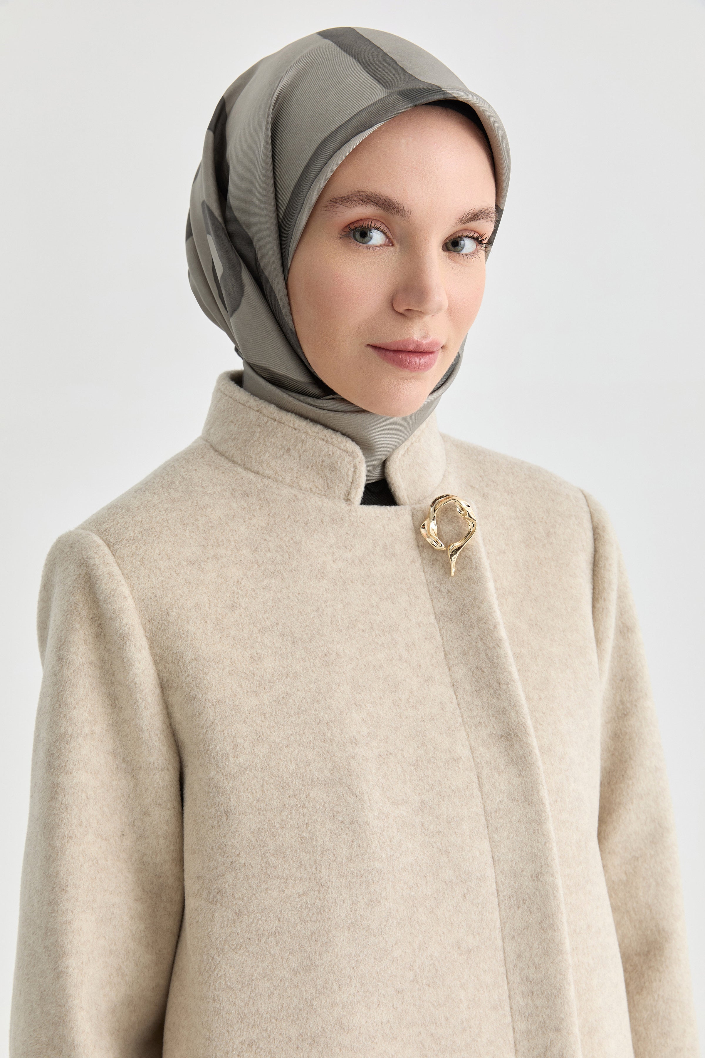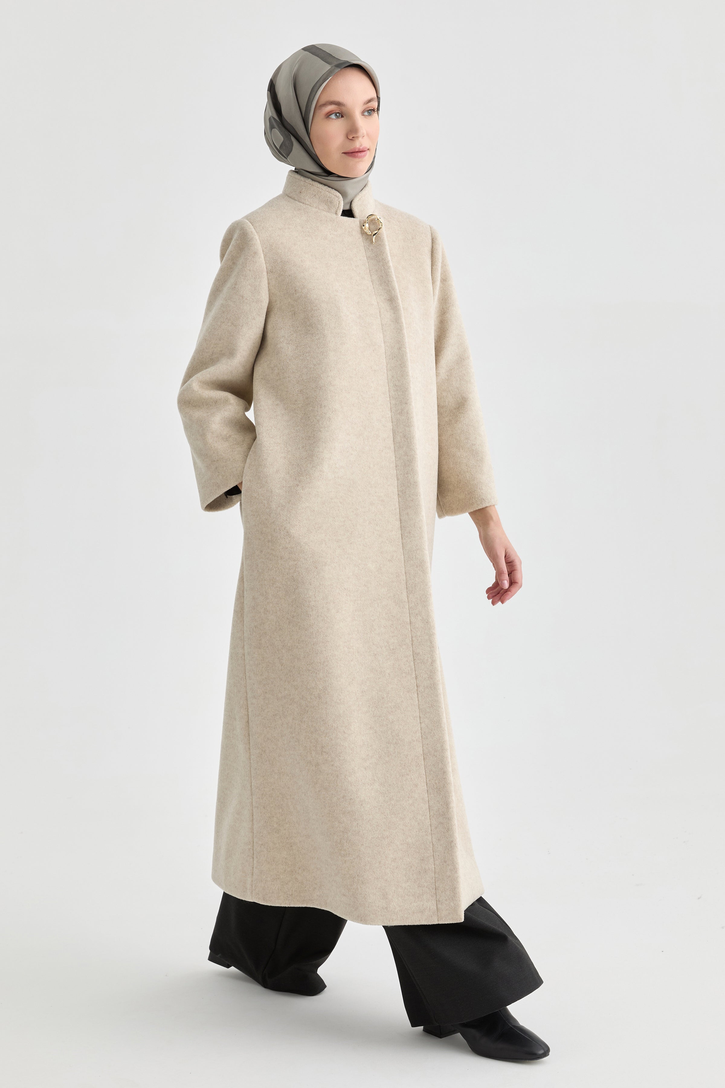 Gizli Patlı Broş Detaylı Kaban - Bej