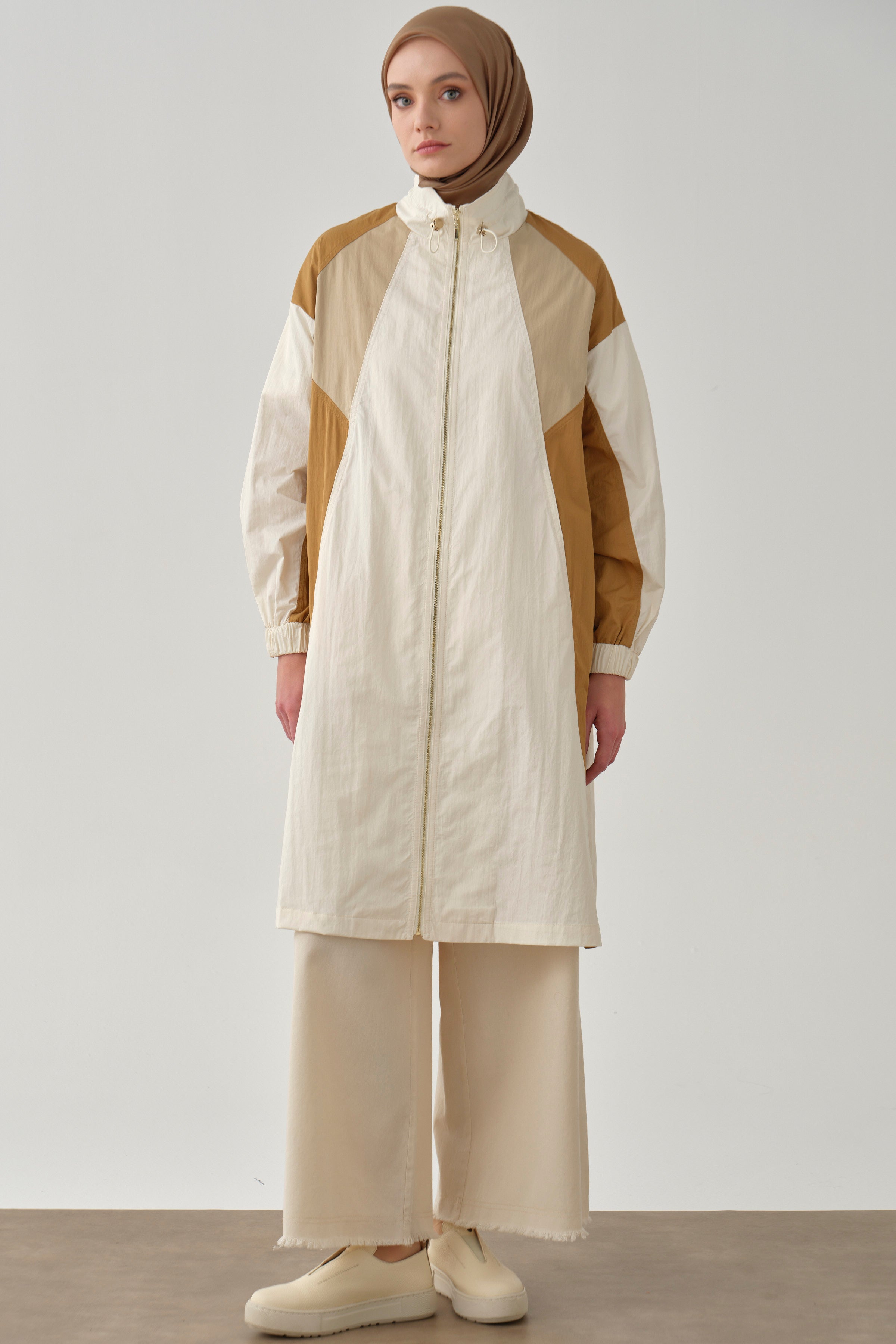 Kesik Detaylı Yağmurluk - Ekru-Camel