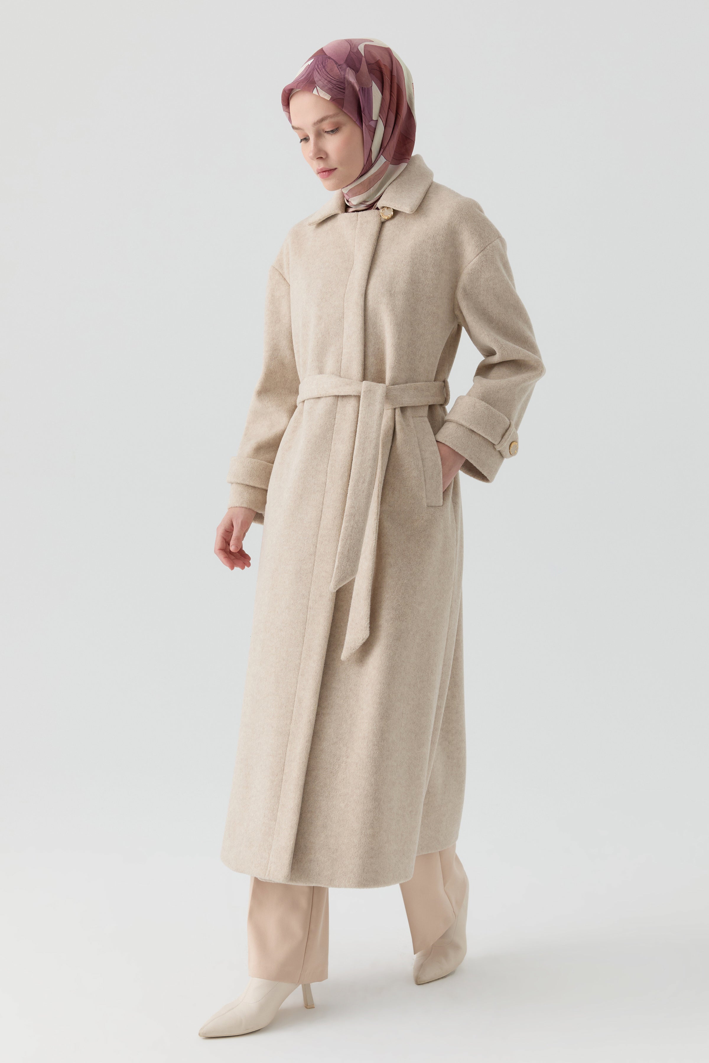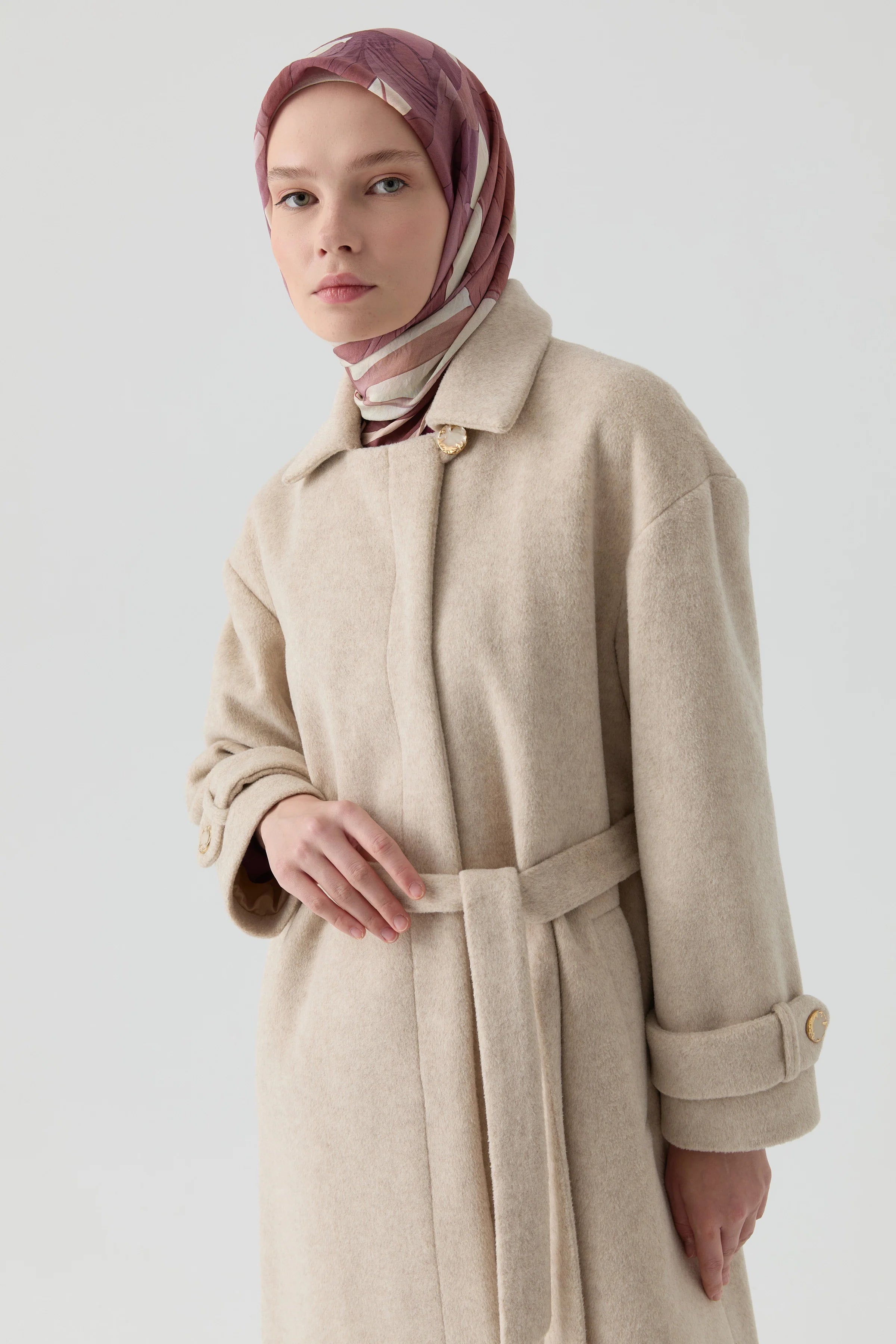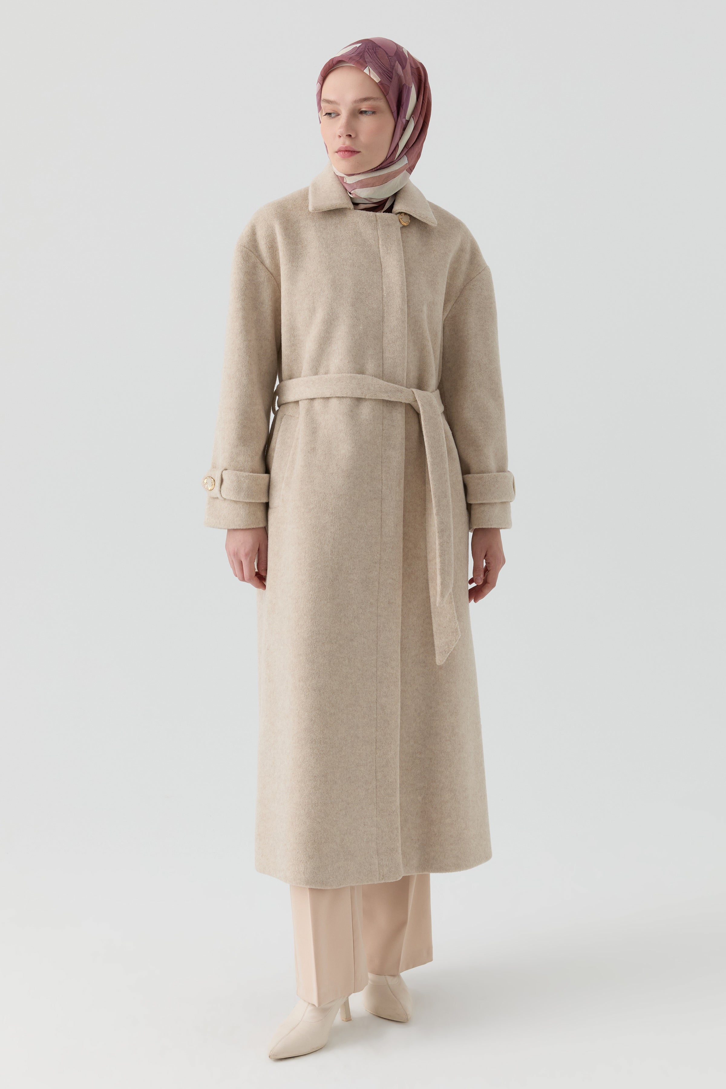 Kol Bant Detaylı Manto - Bej