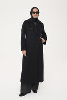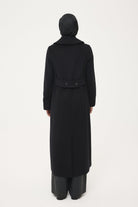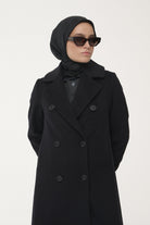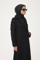 Yün Karışımlı Kruvaze Kapamalı Manto - Siyah