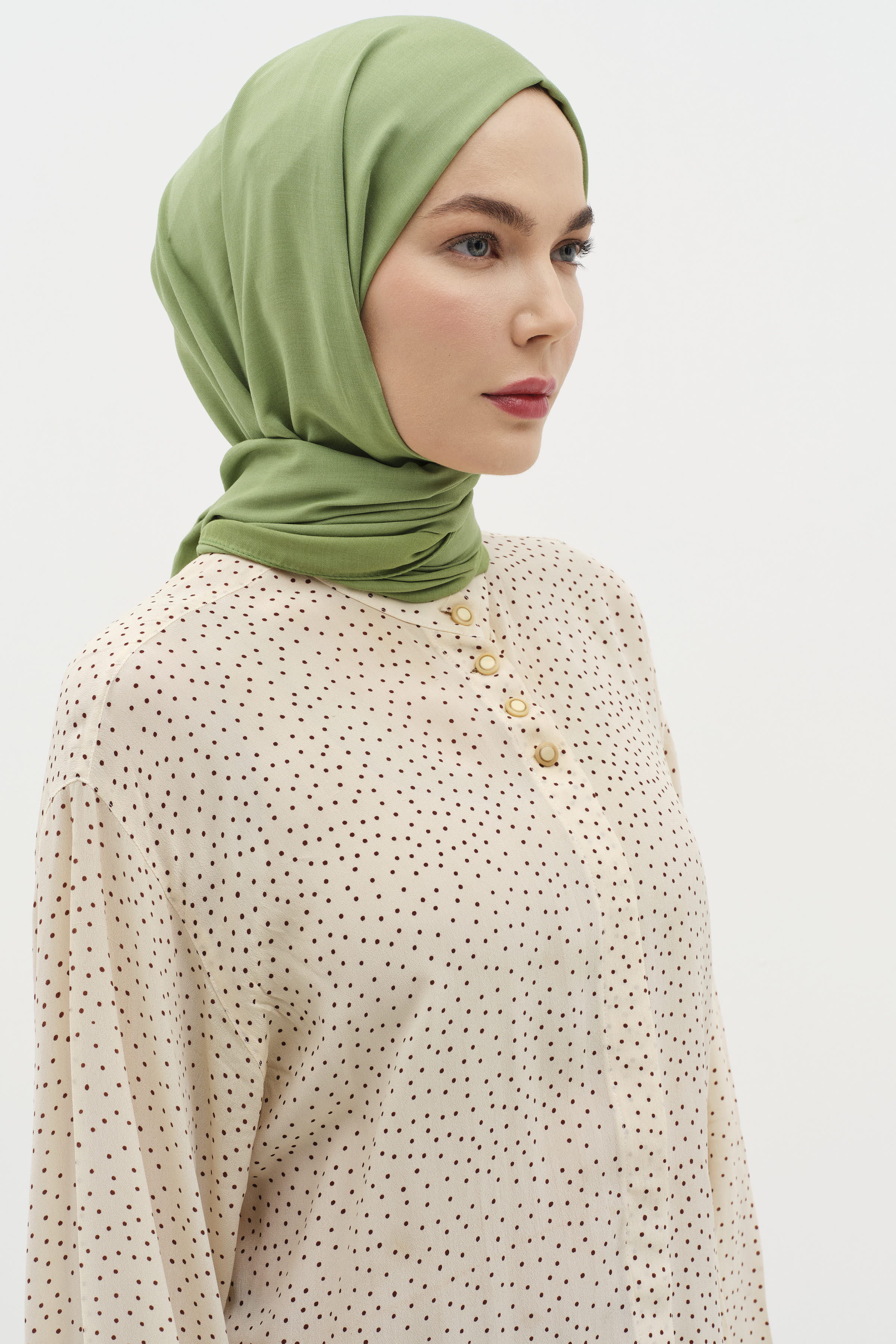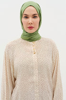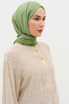 Natural Ton Sür Ton Kenarlı Şal - Göl Yeşili