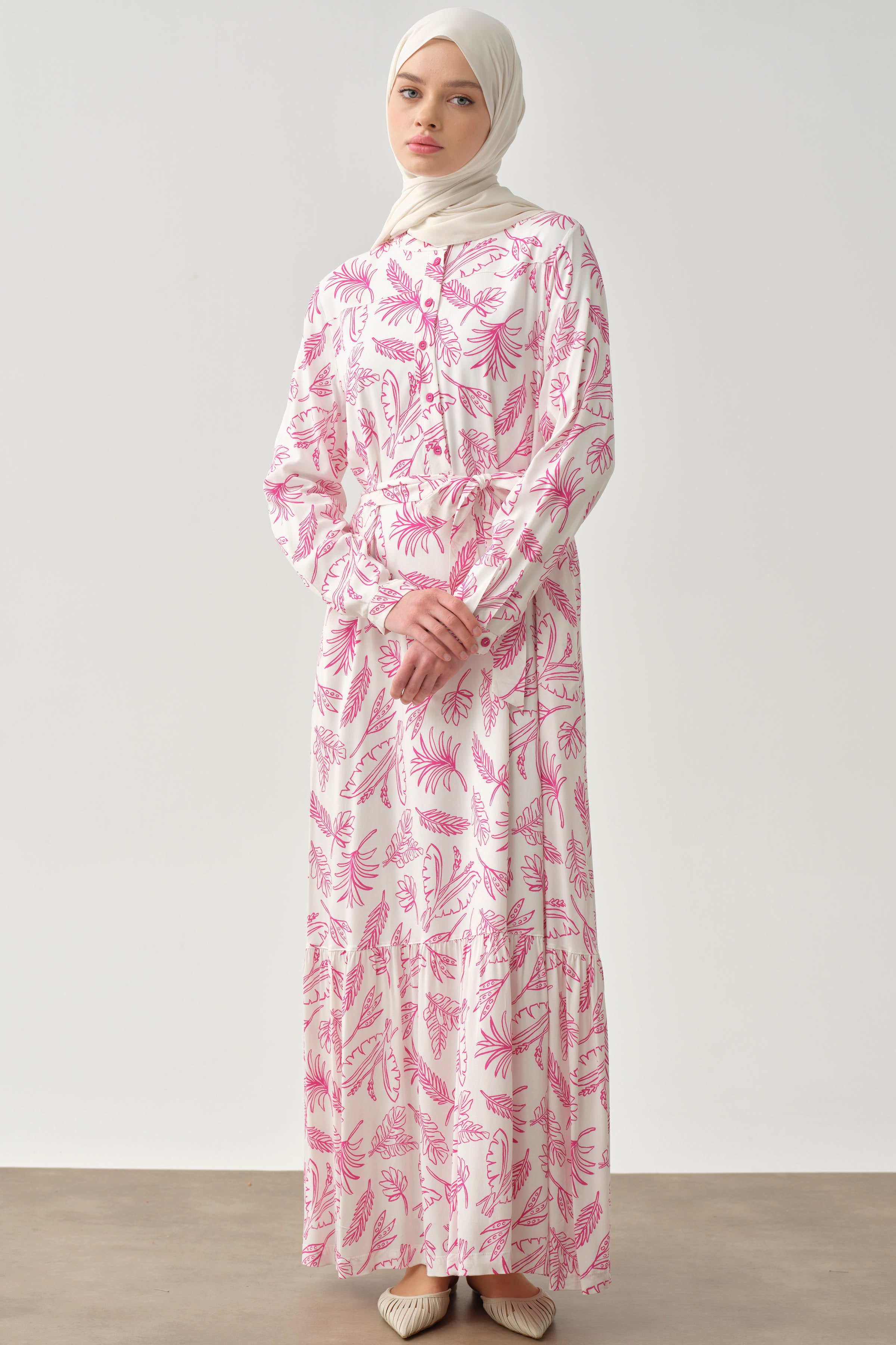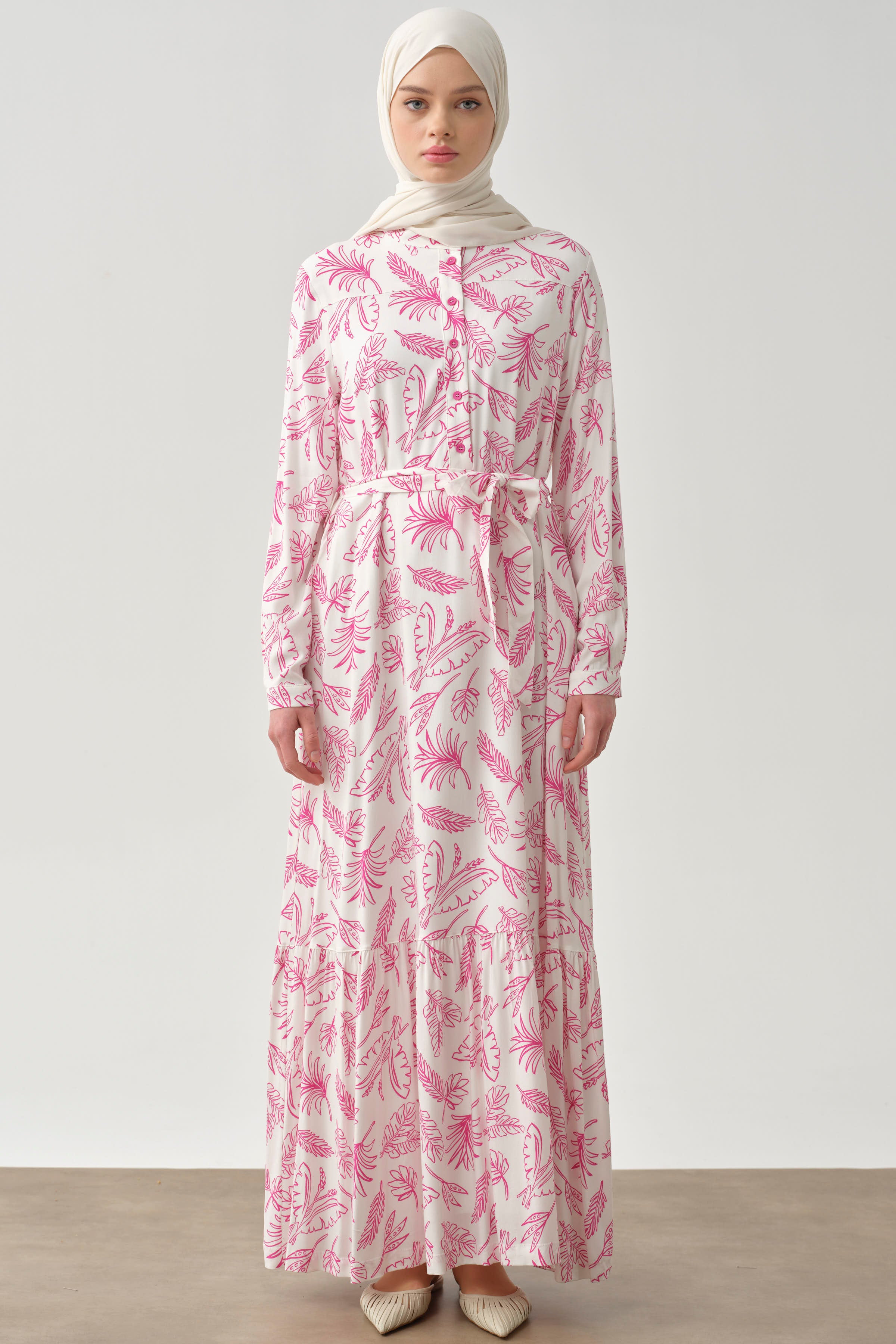 Günlük stilinize hareket katan ve özel günlerde şıklığınızı tamamlayan beli kuşaklı desenli elbise, rahat kesimi ve zarif detaylarıyla gardırobunuzun en özel parçalarından biri olmaya aday!