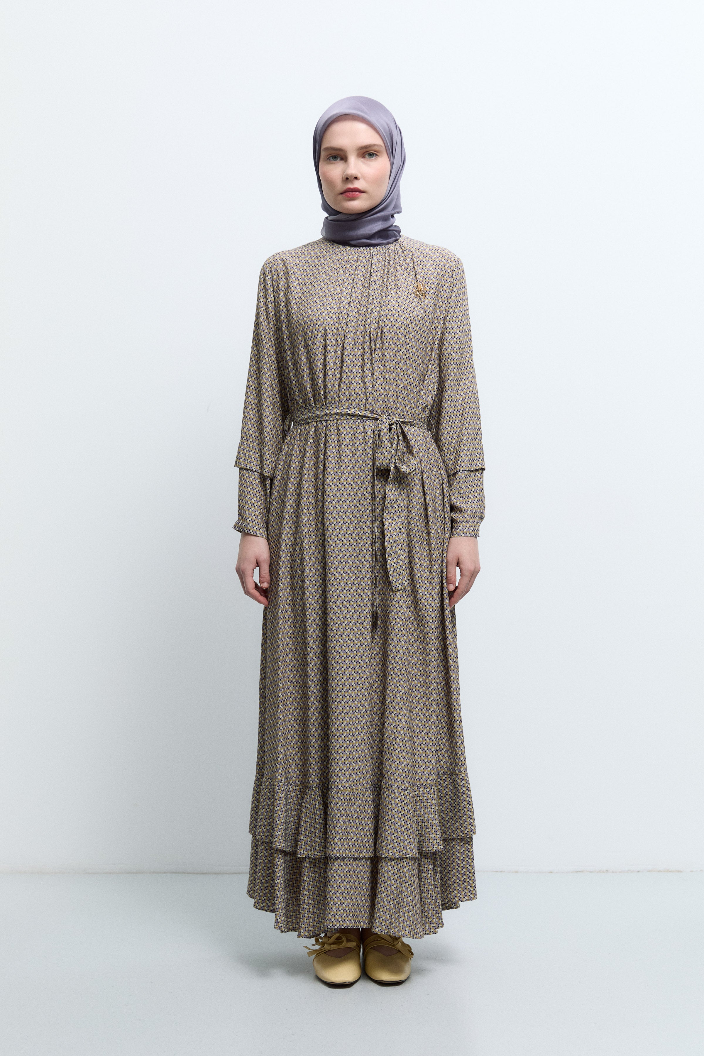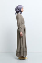 Etek Ucu Fırfırlı Elbise - Olive