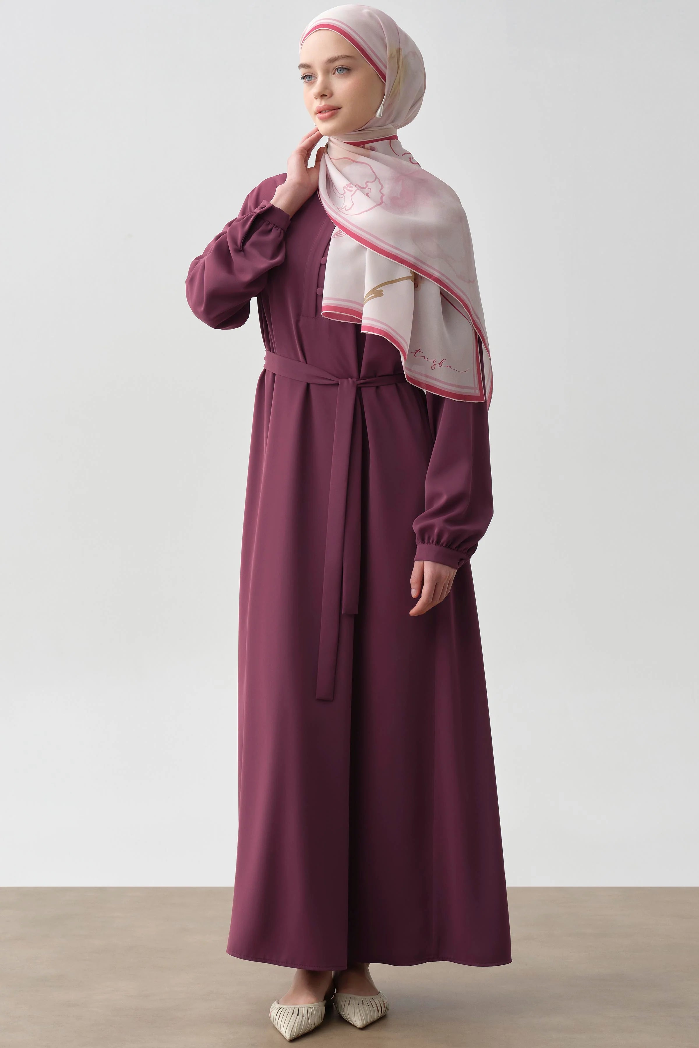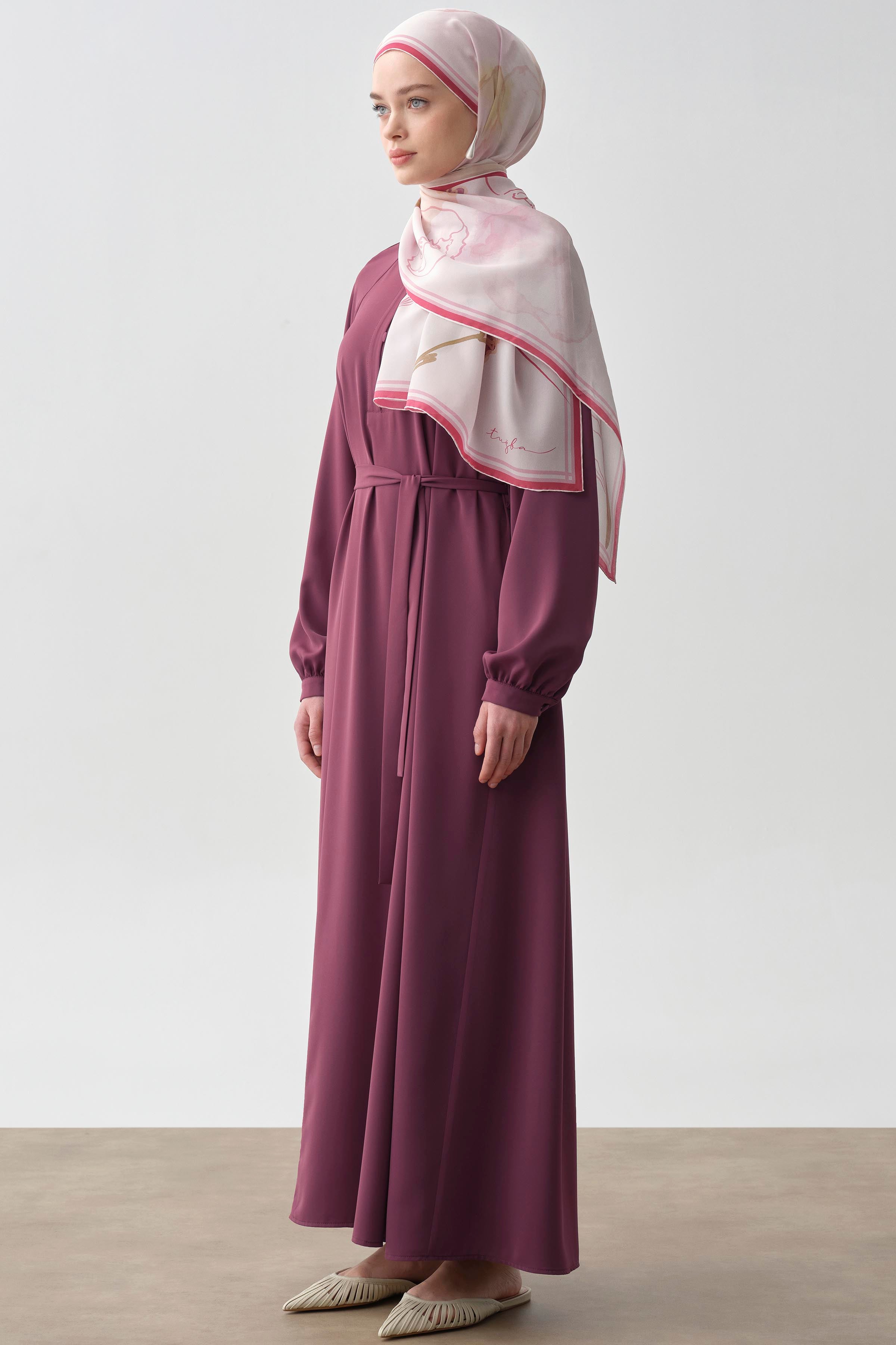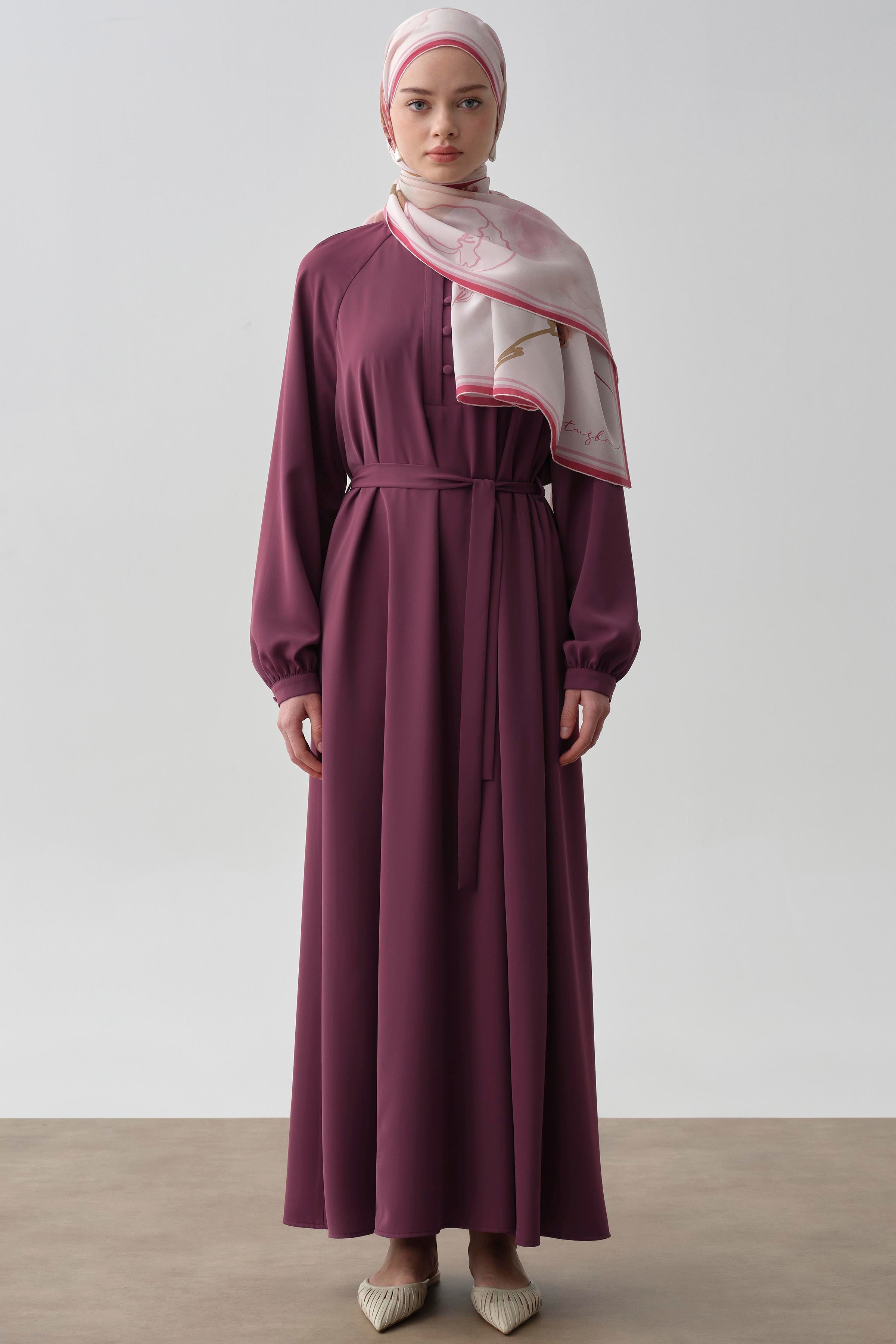 Yarım Pat Kuşaklı Elbise - Mürdüm