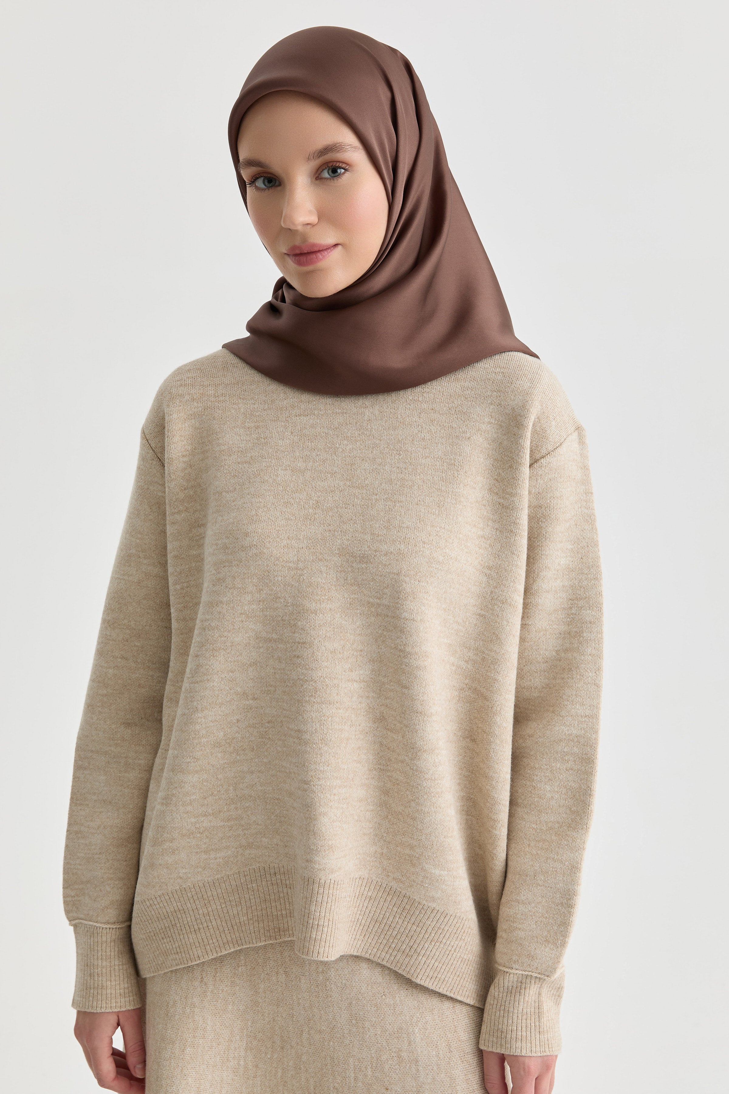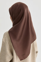 Düz Renk İpek Eşarp - Kahve
