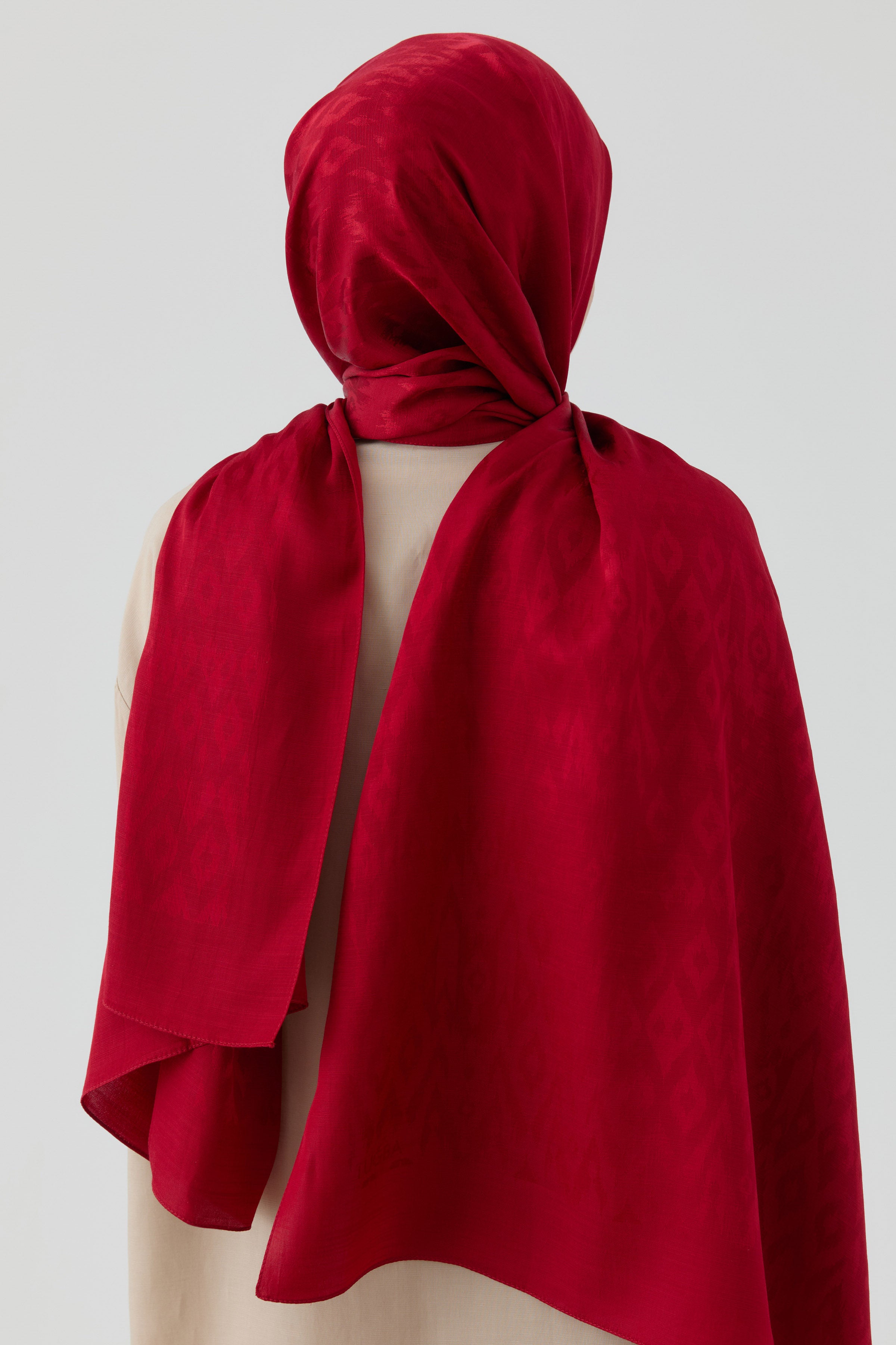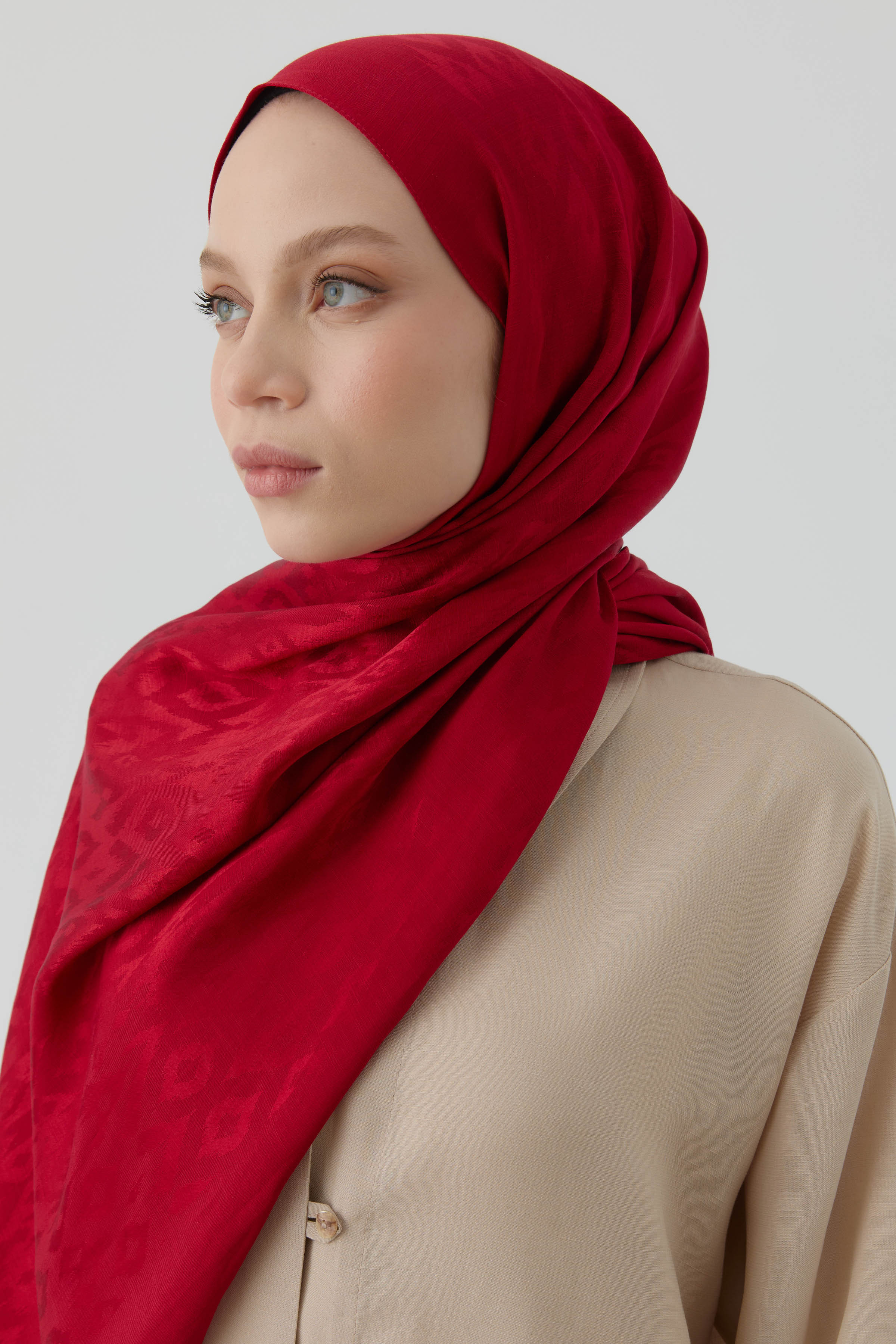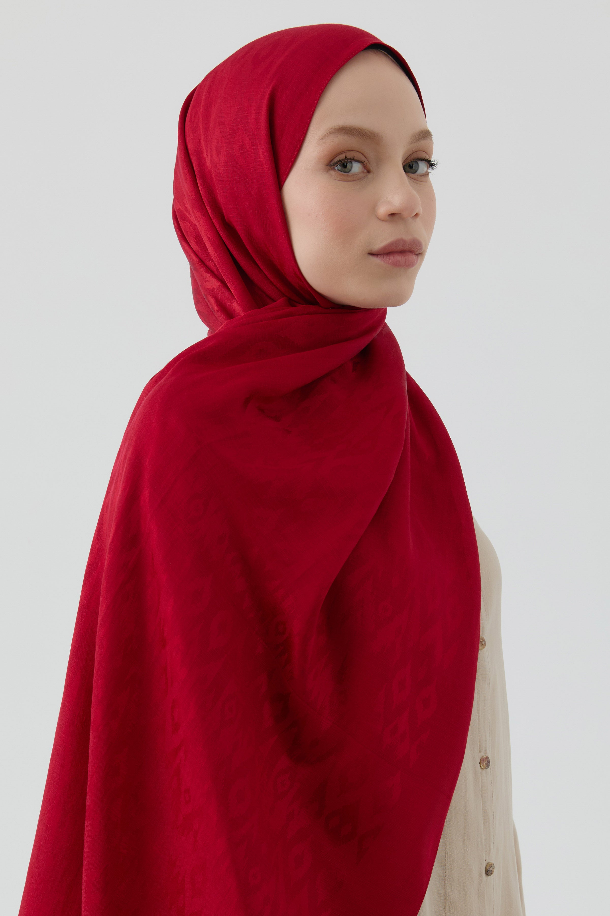 Etnik İkat Desenli Nida Naturel Şal - Kırmızı