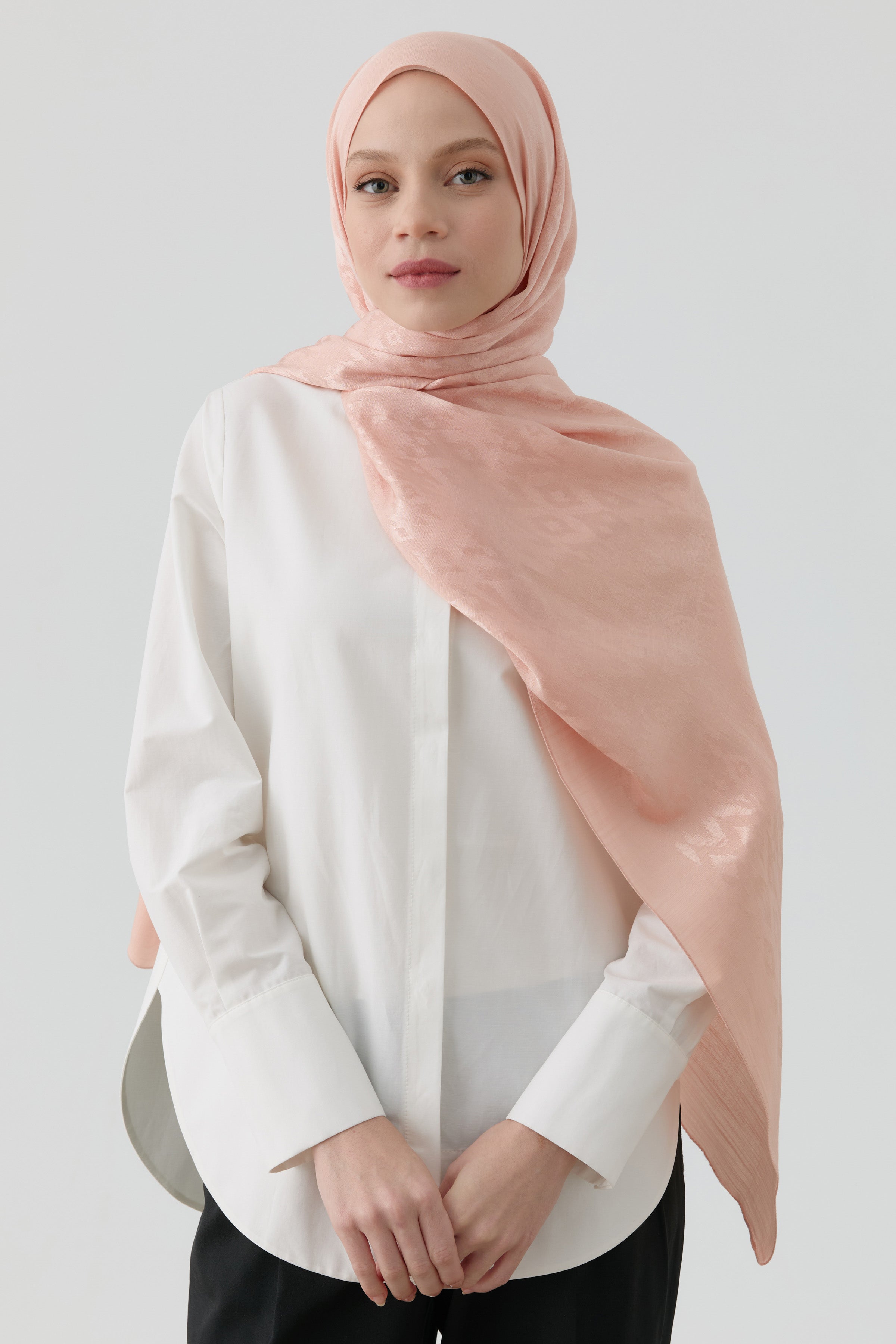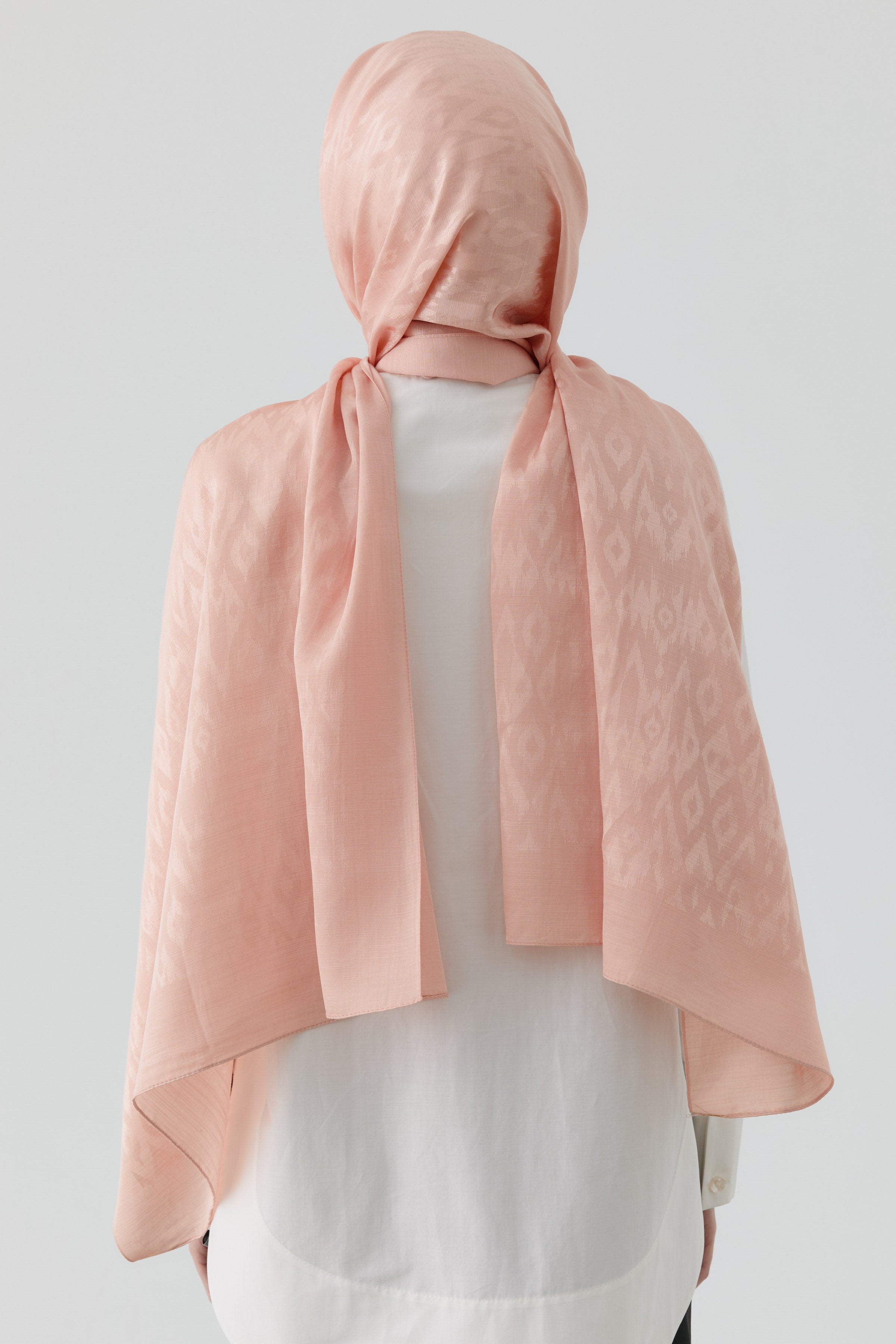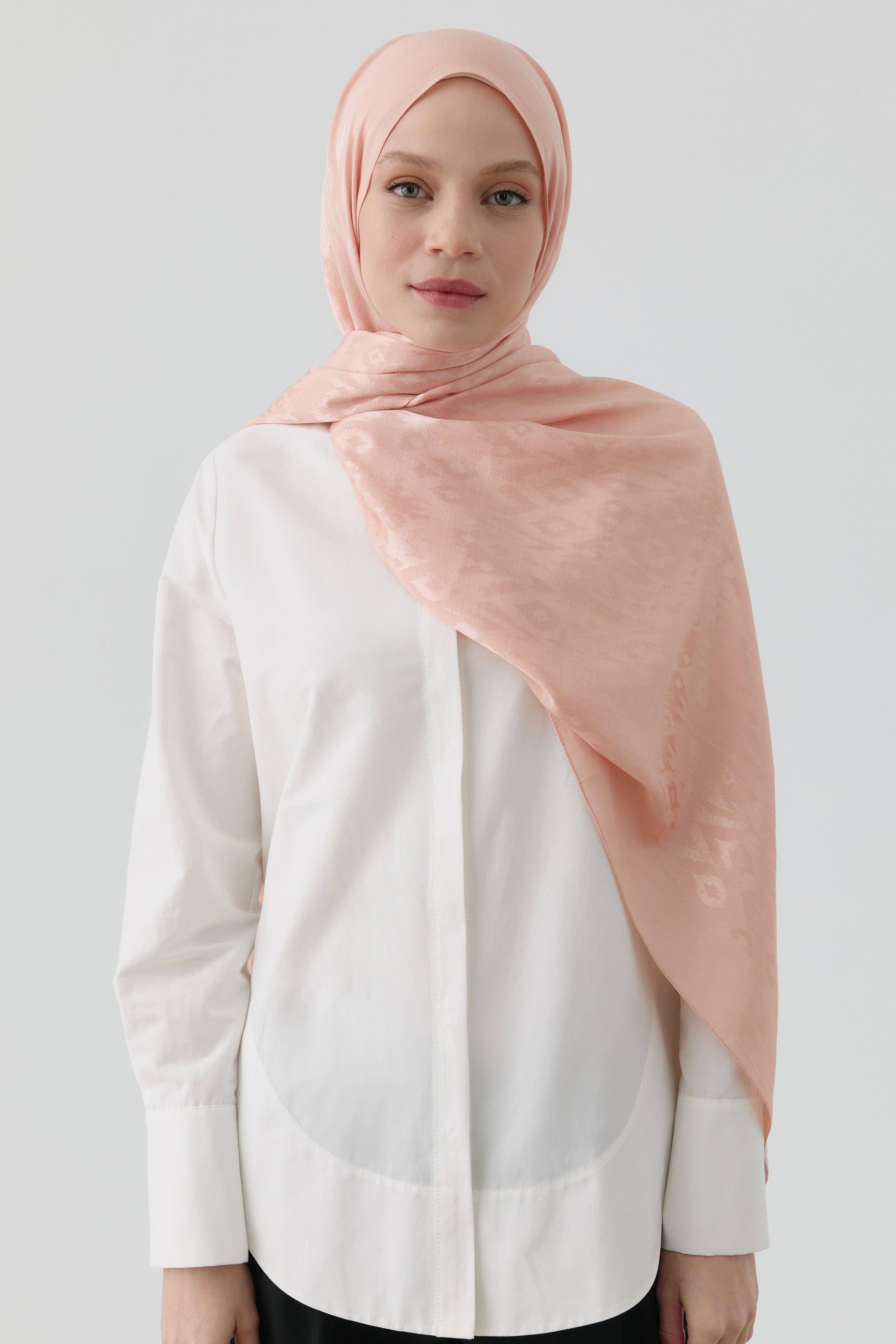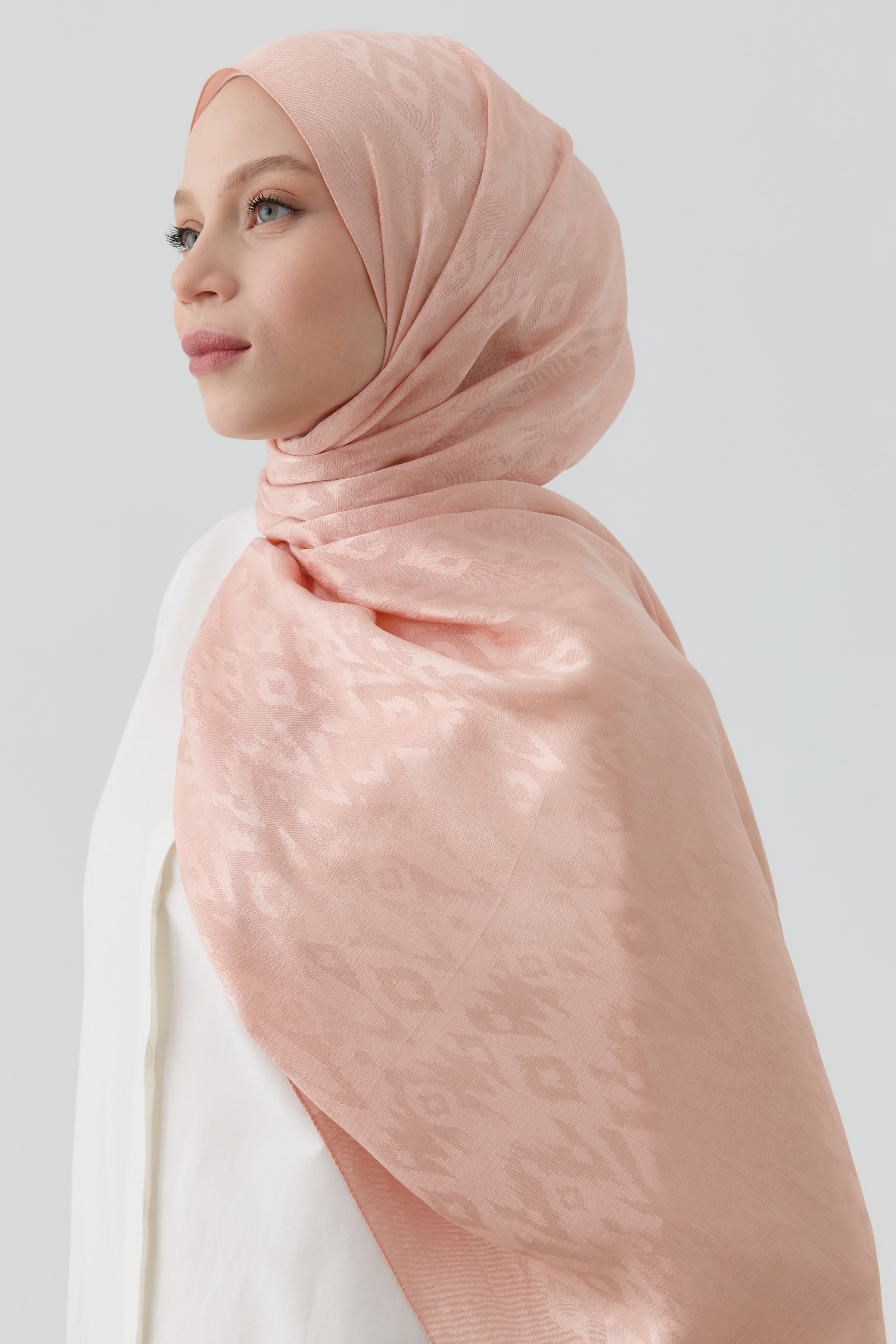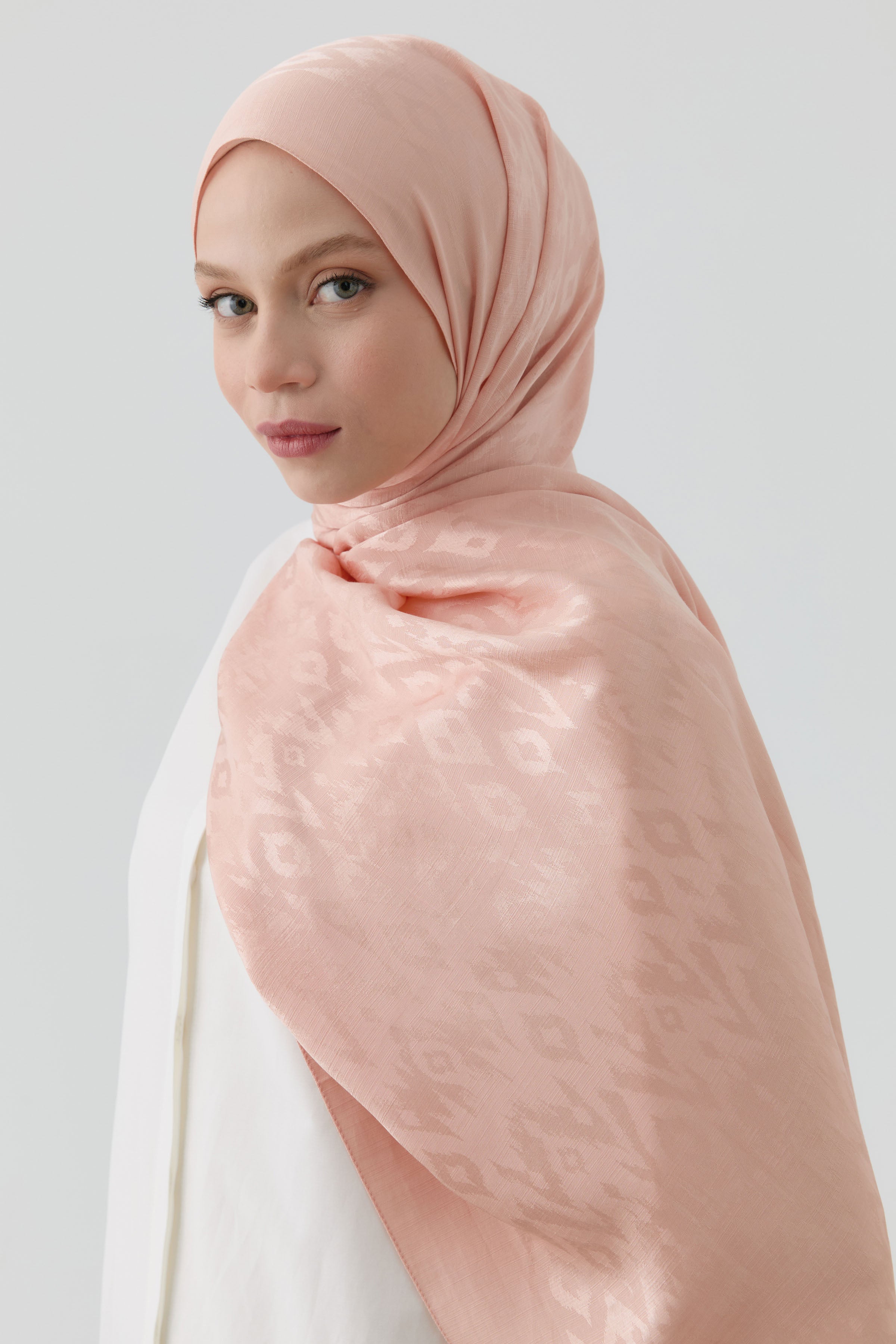 Etnik İkat Desenli Nida Naturel Şal - Somon