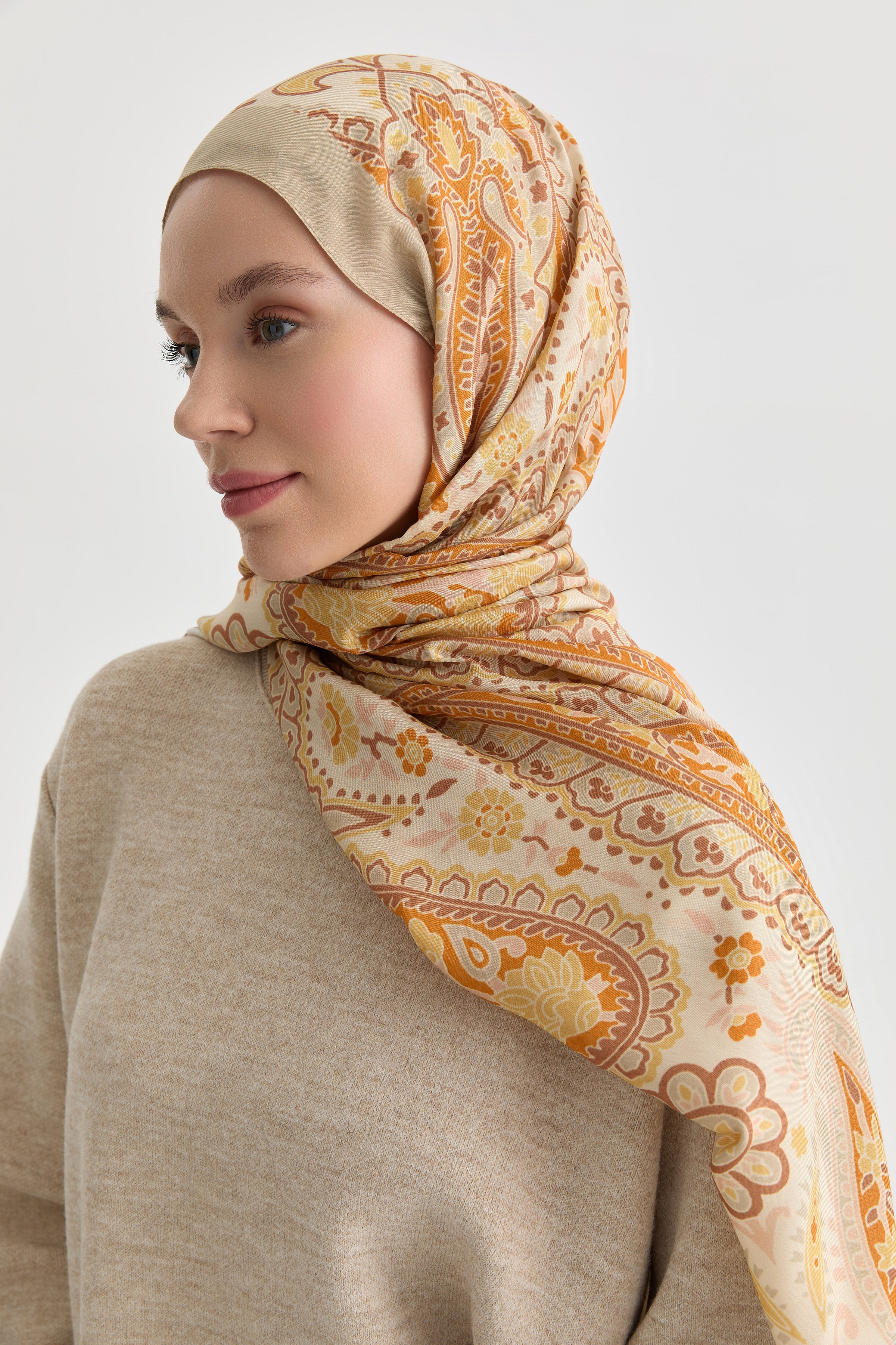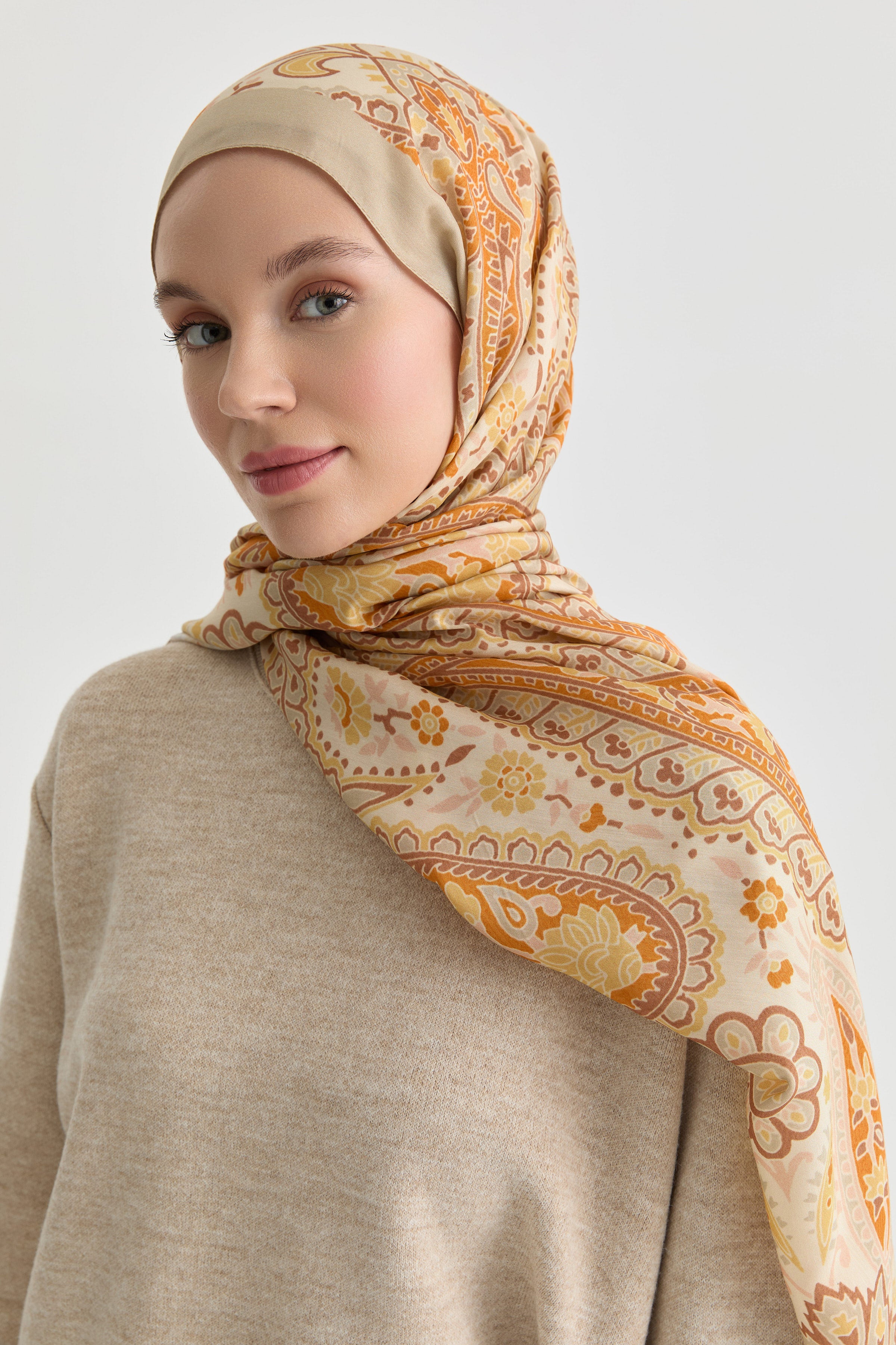 Zarif paisley desenleriyle tasarlanan bu natural şal, klasik motifleri modern bir yorumla yeniden canlandırır. Doğal dokusu cilde yumuşak bir temas sağlarken, ince kumaşı gün boyu hafif bir konfor sunar.