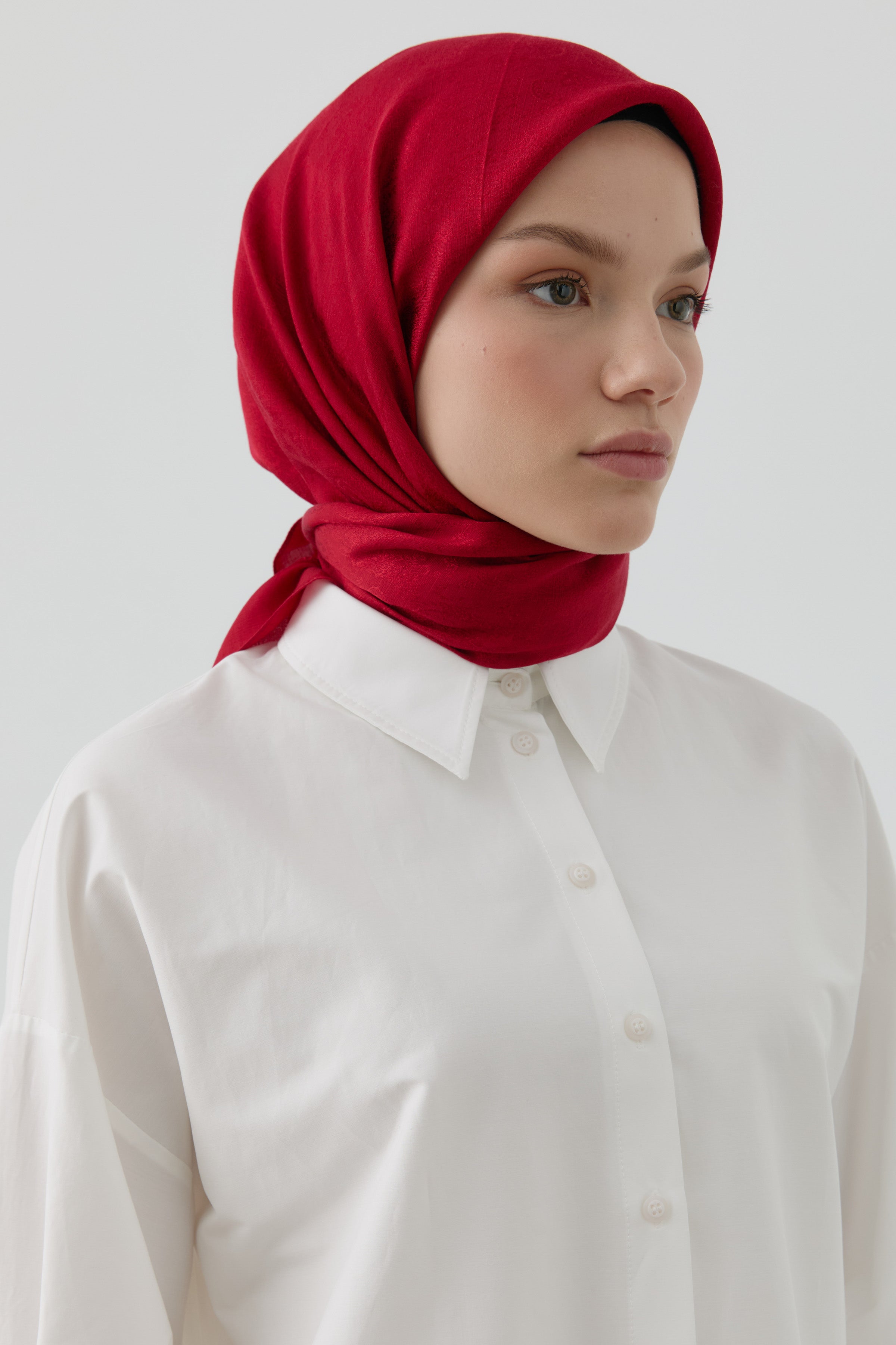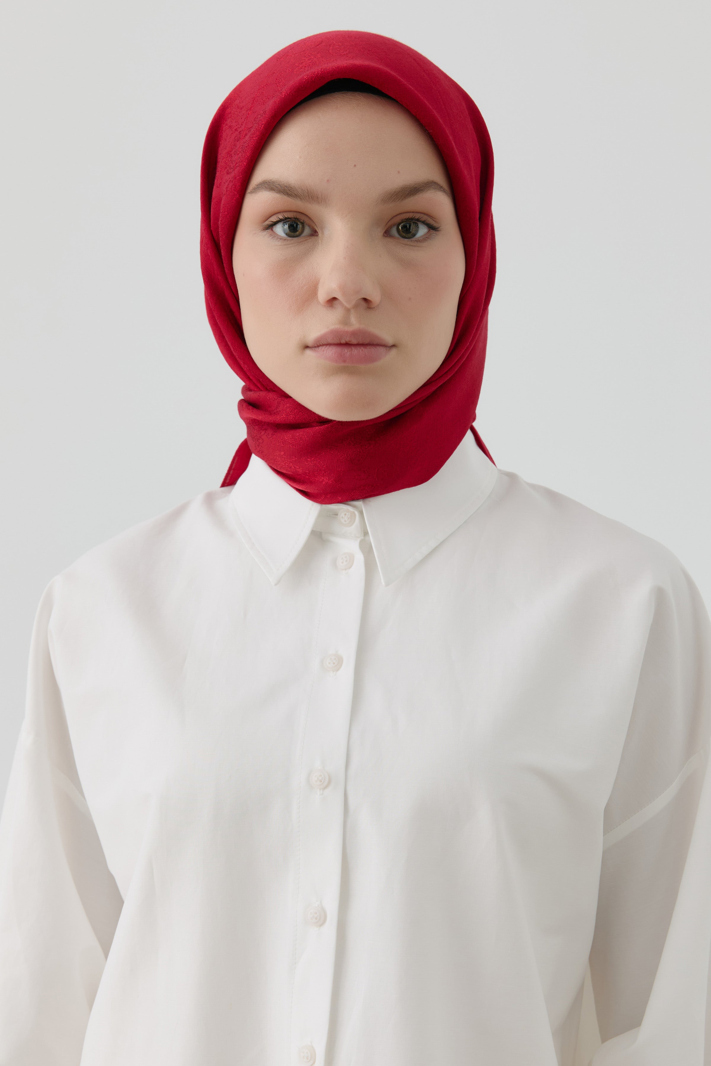 Etnik Şal Desenli Naturel Eşarp - Kırmızı