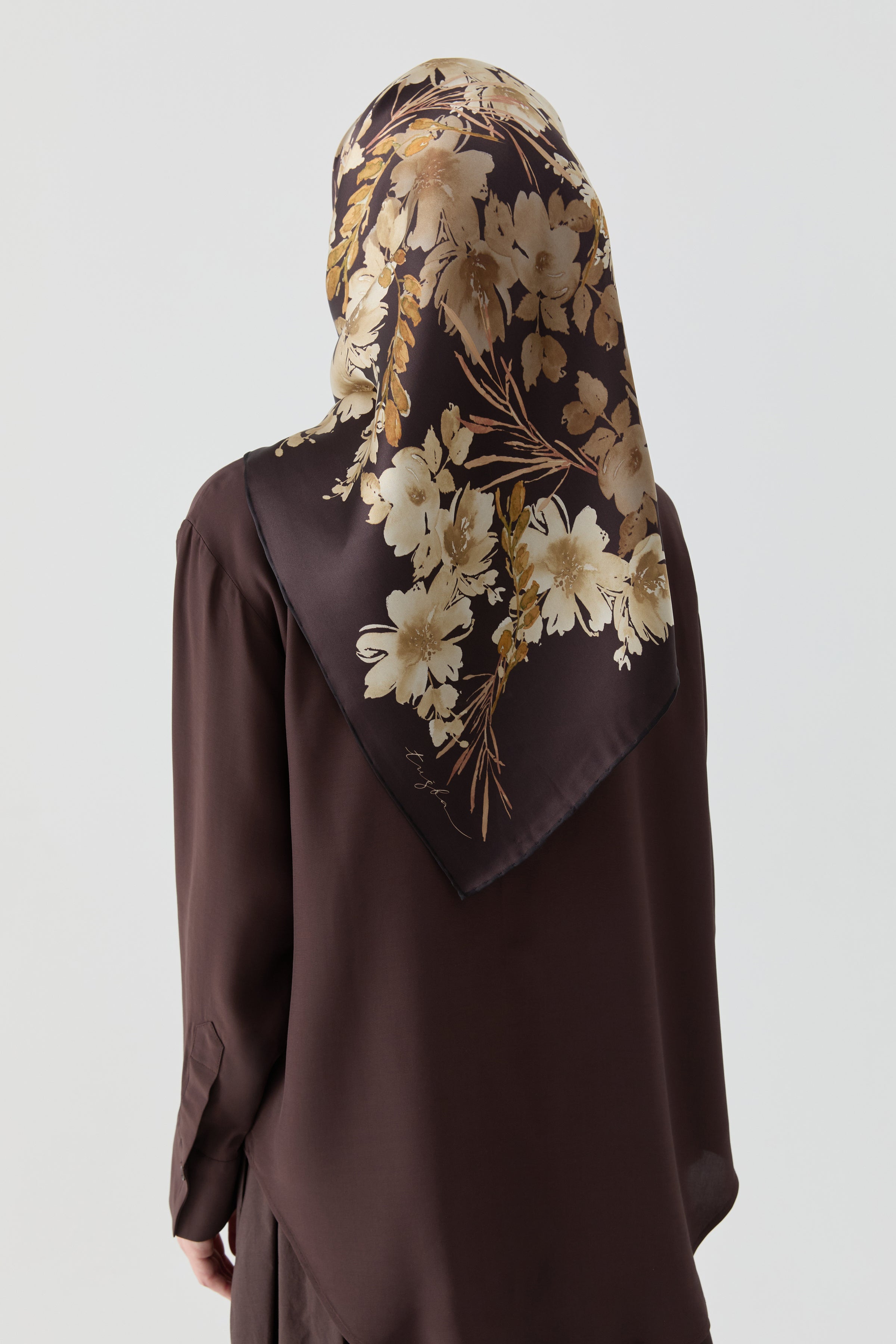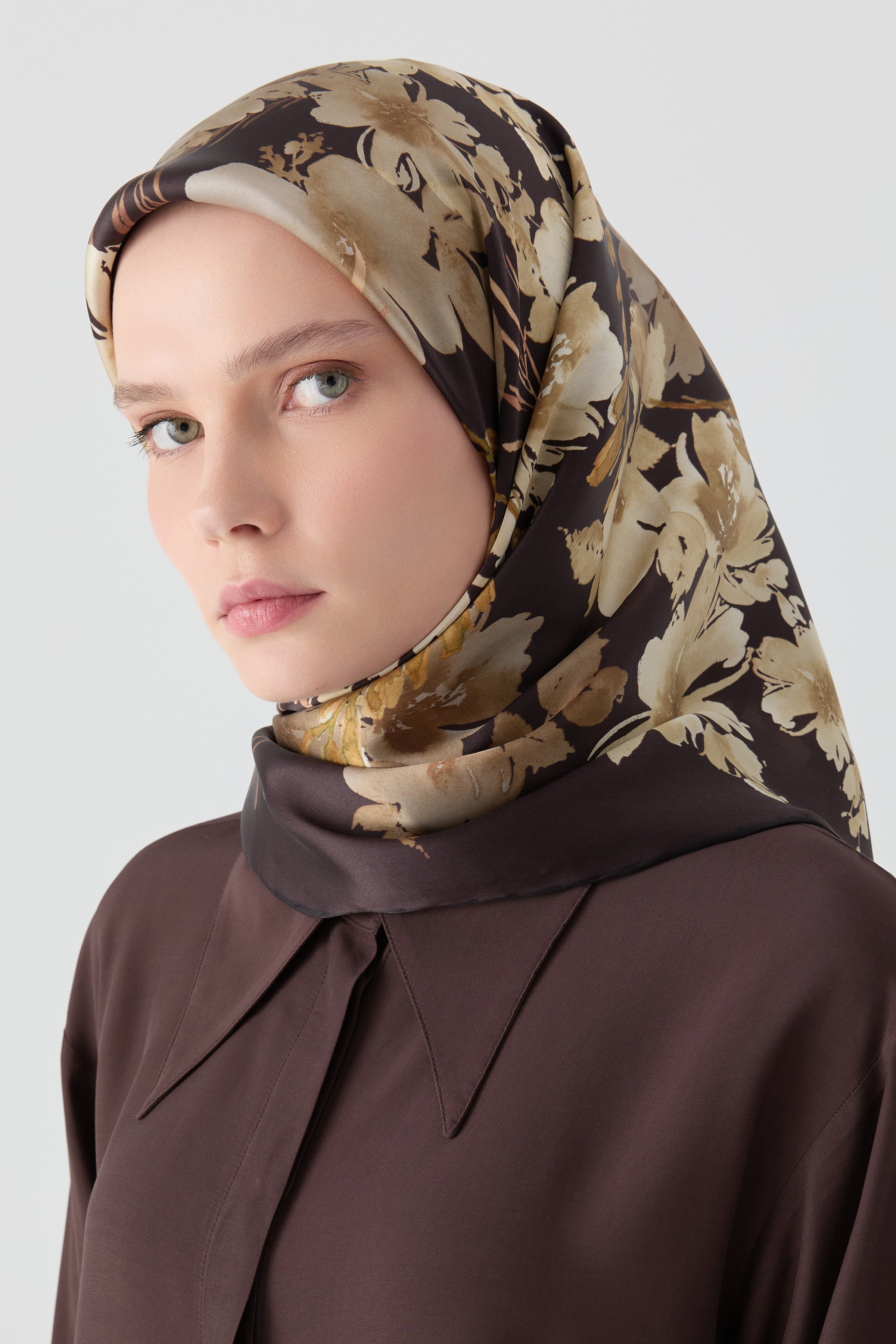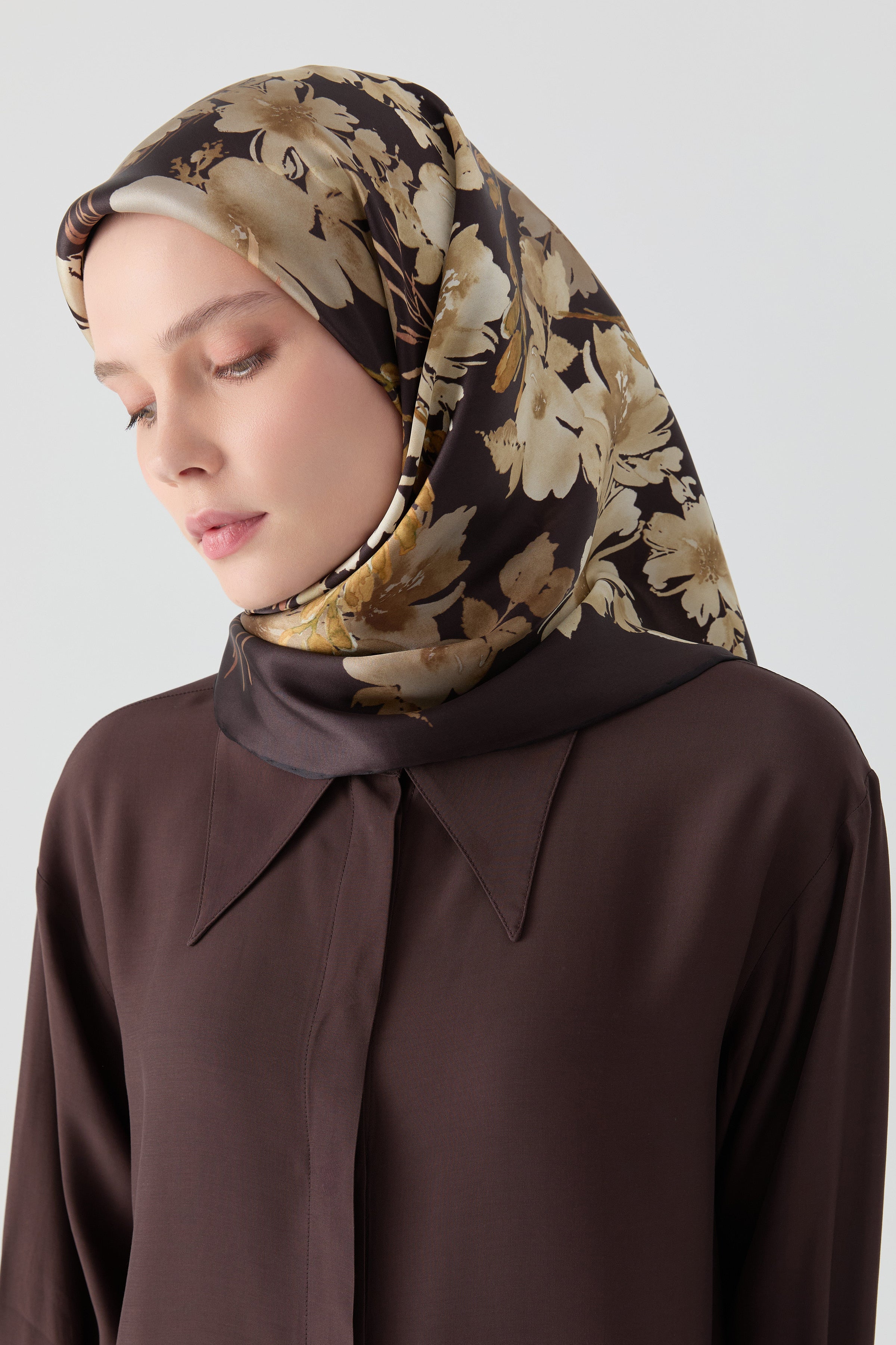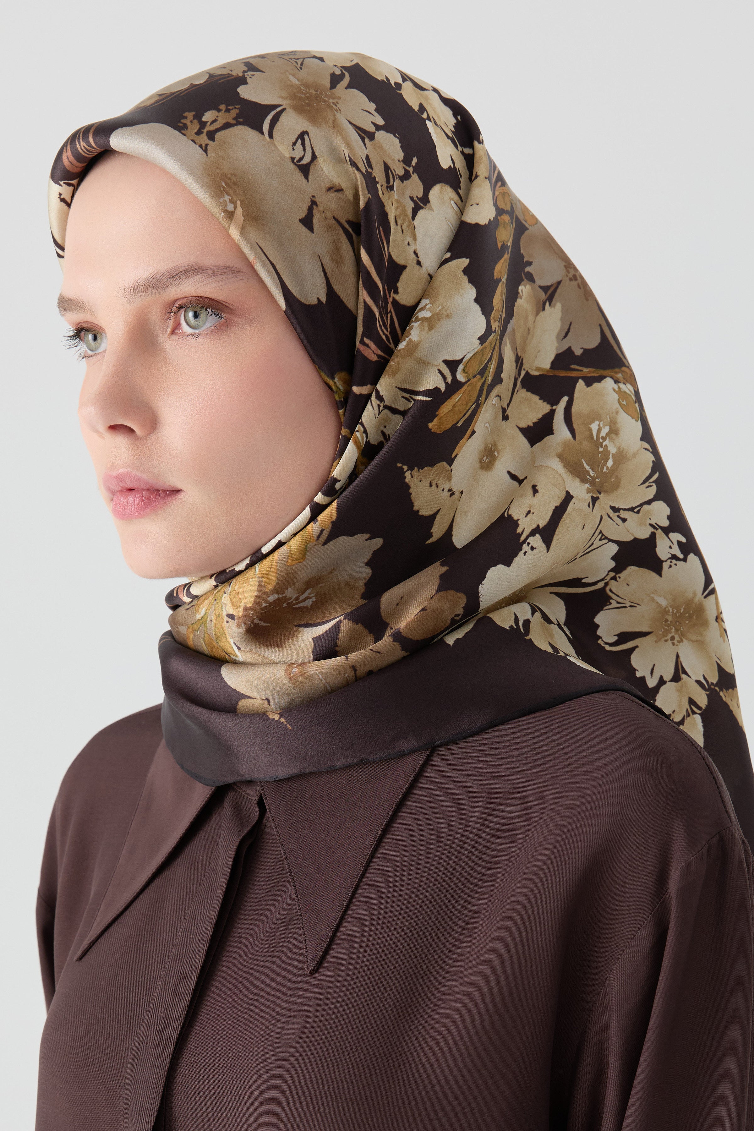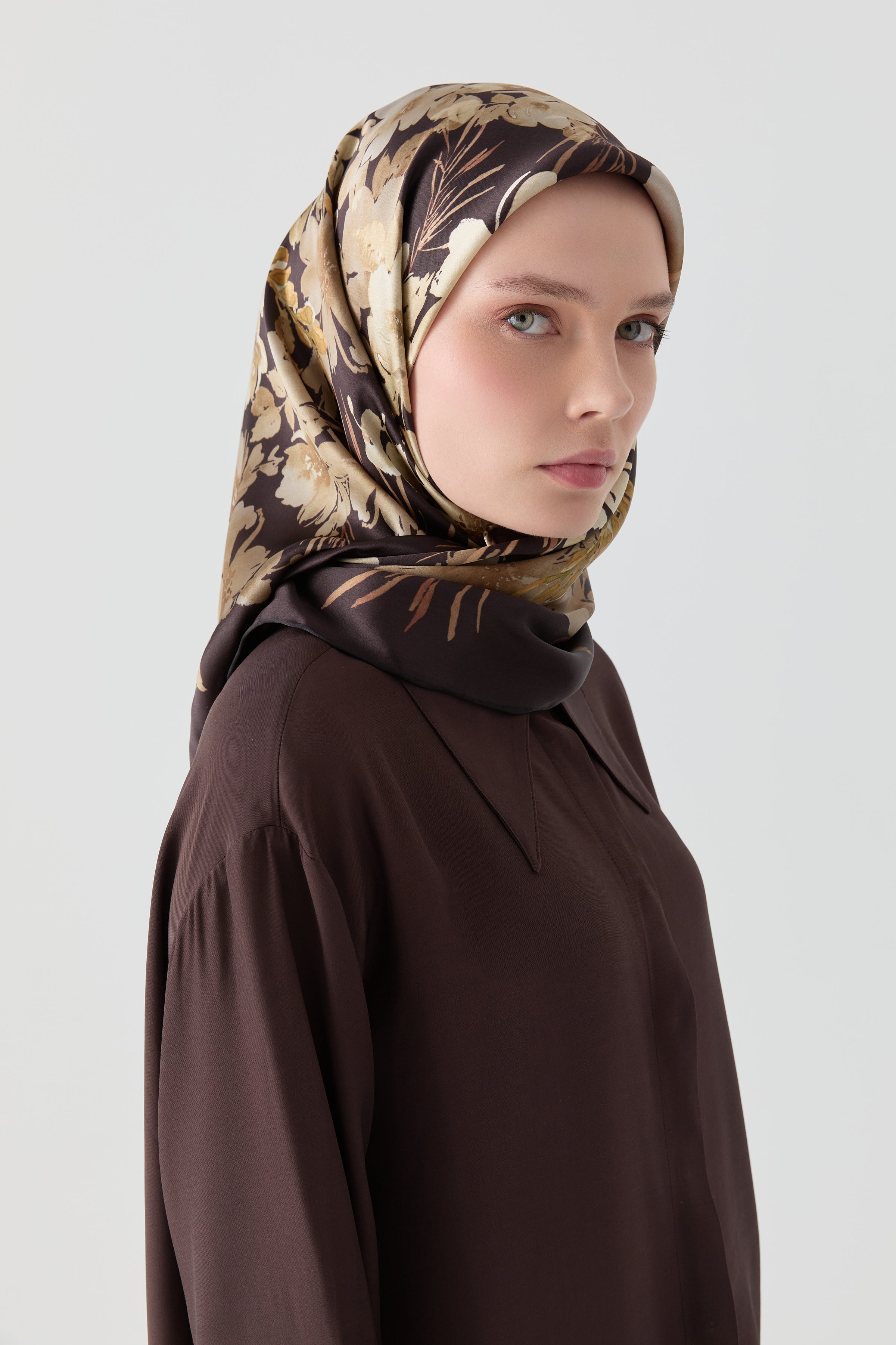 Gülistan Saten İpek Eşarp - Acı Kahve