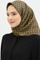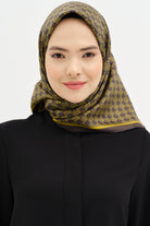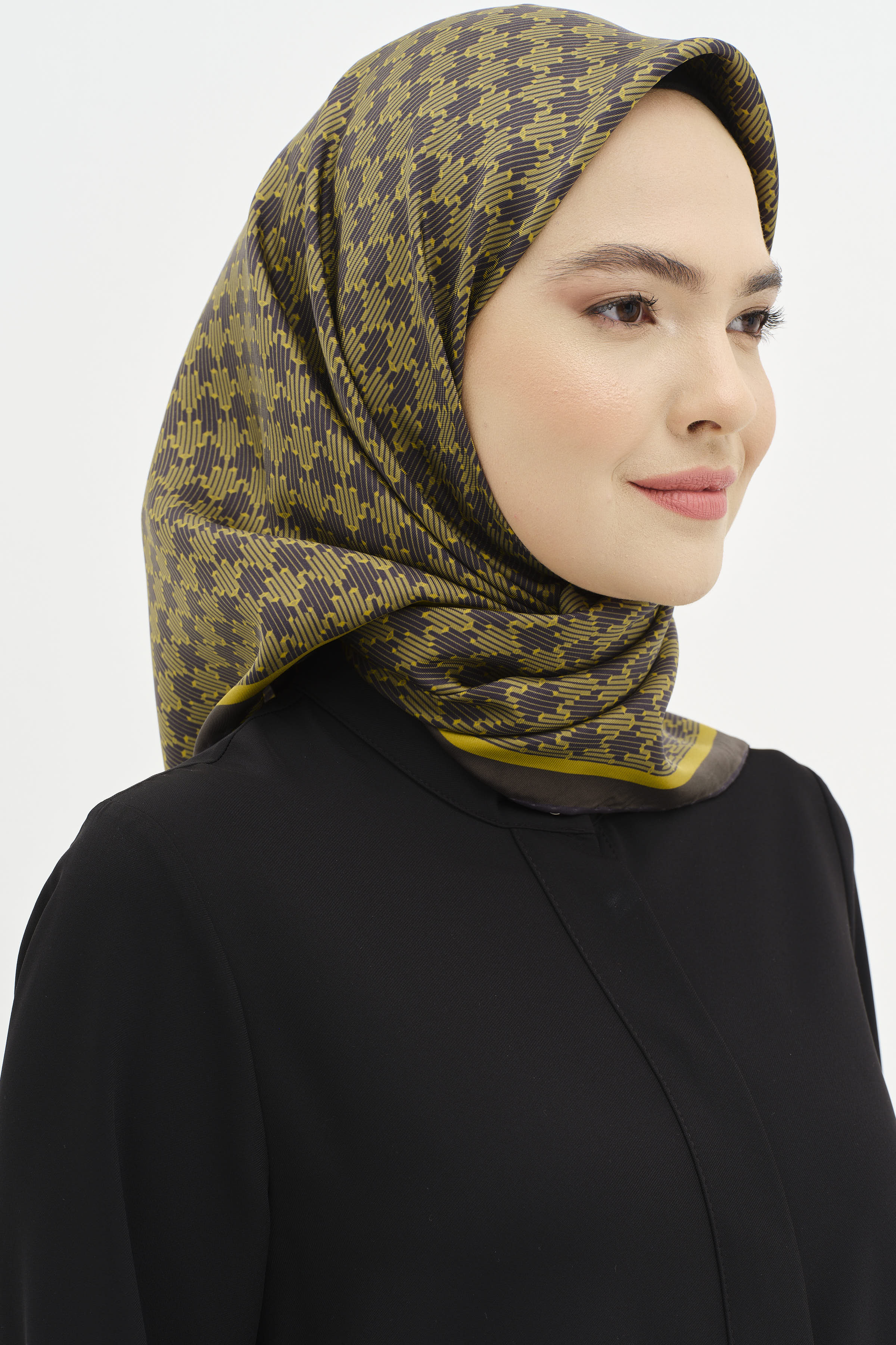 Mini Geometrik Desen İpek Eşarp - Petrol Yeşili