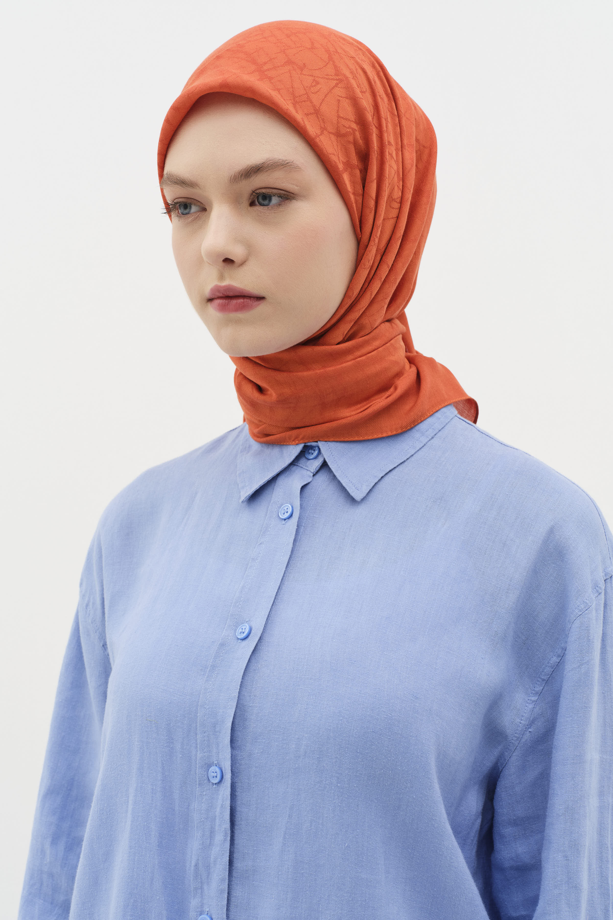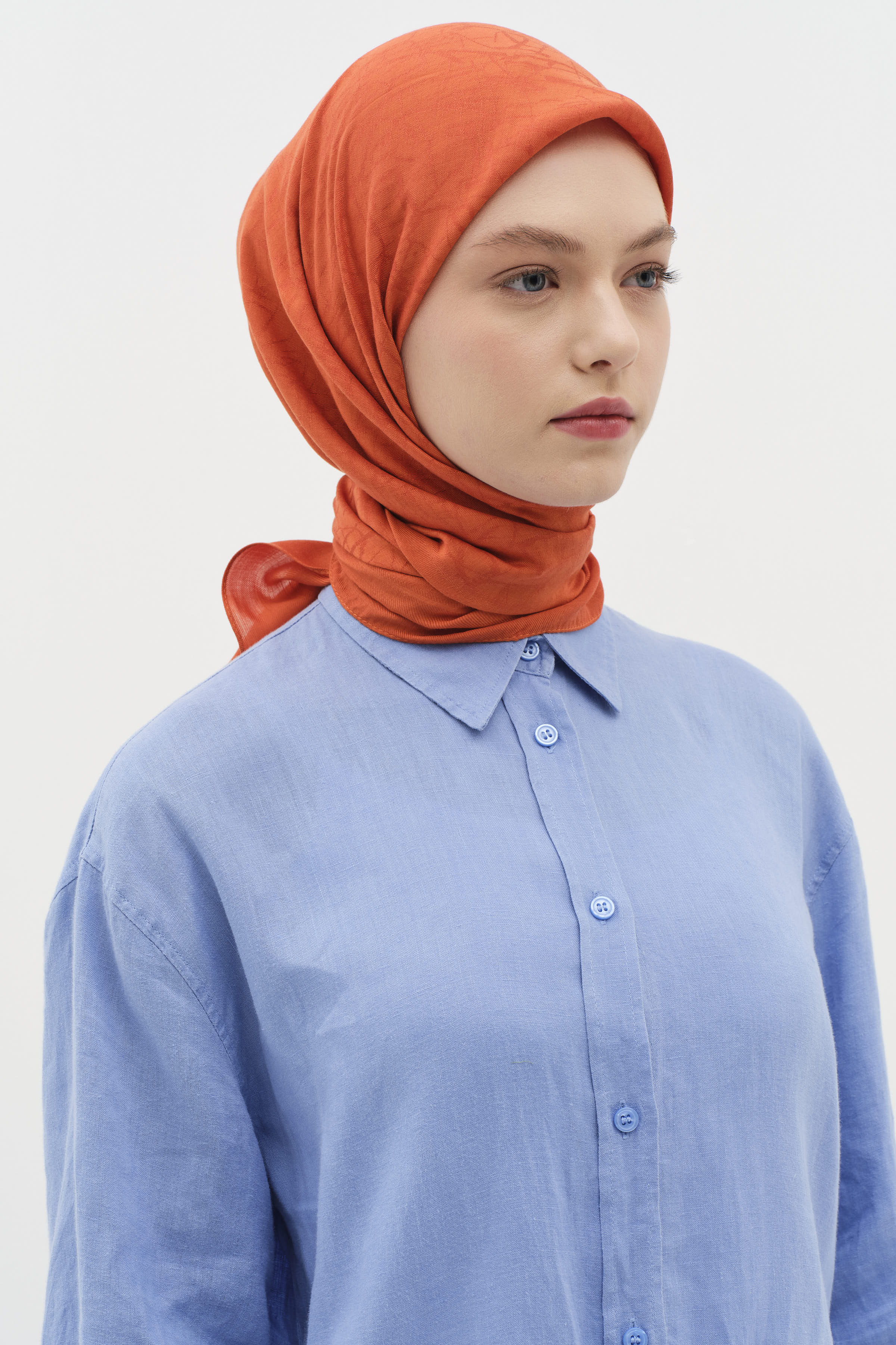 Natural Karışık Desenli Eşarp - Kiremit