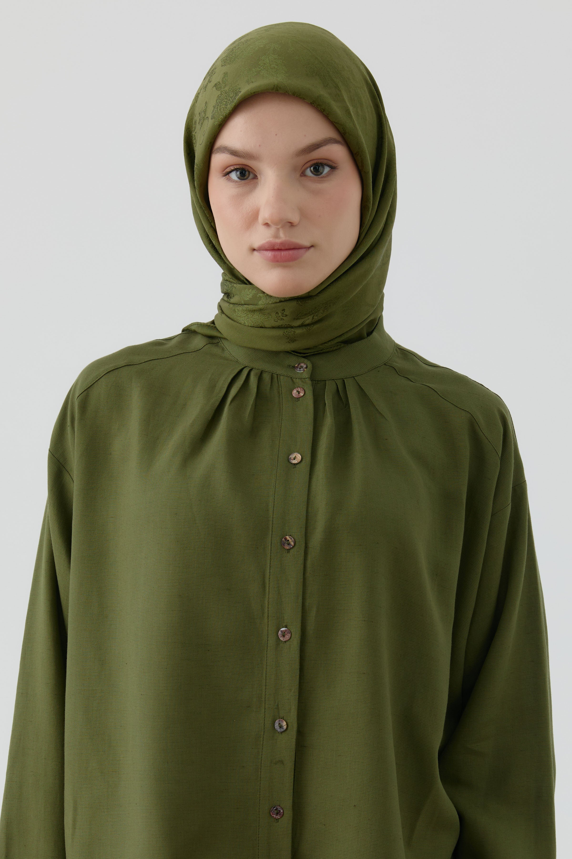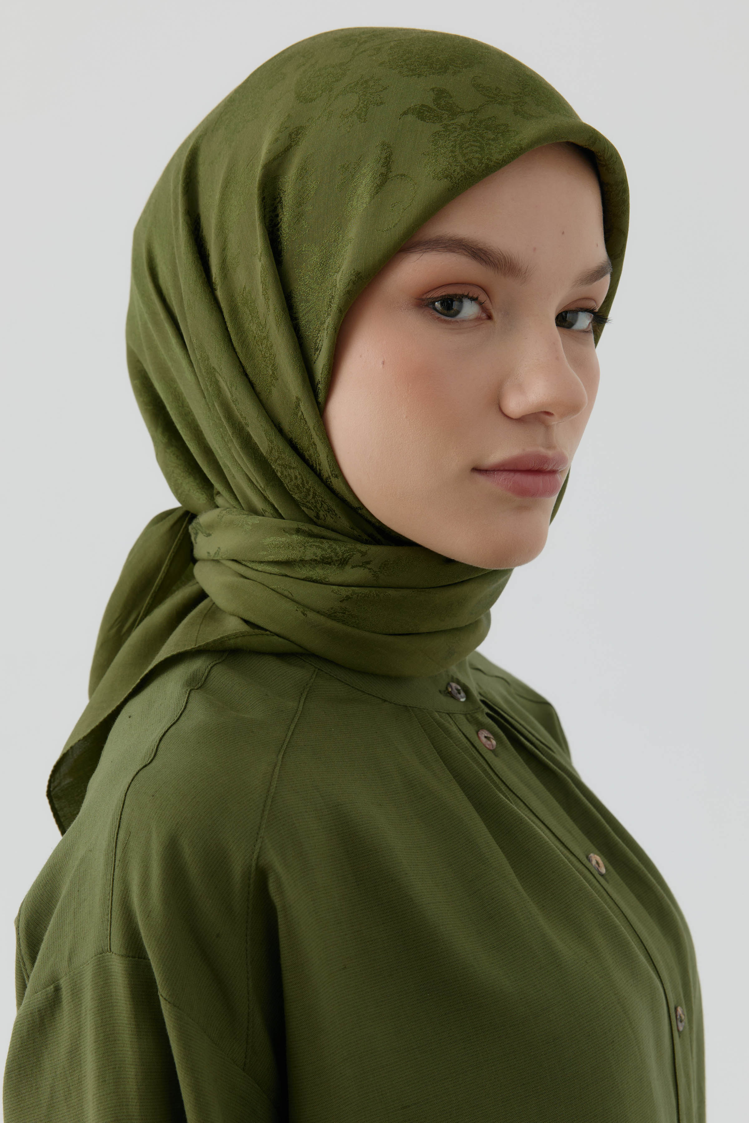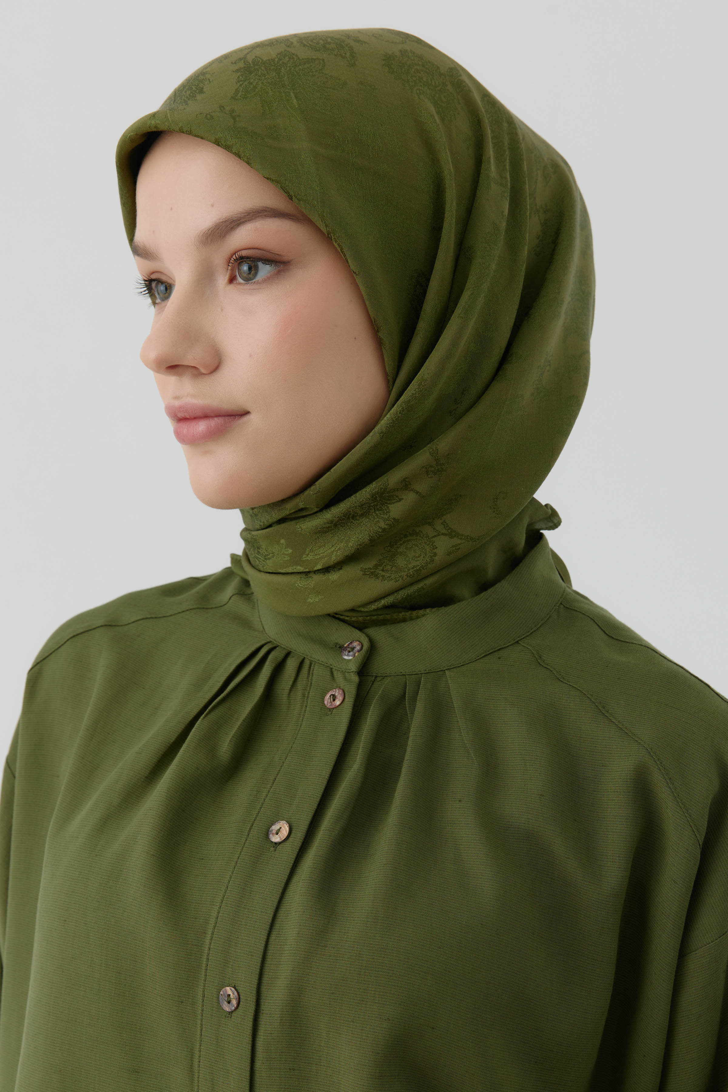 Nevgül Jakar Naturel Eşarp - Haki