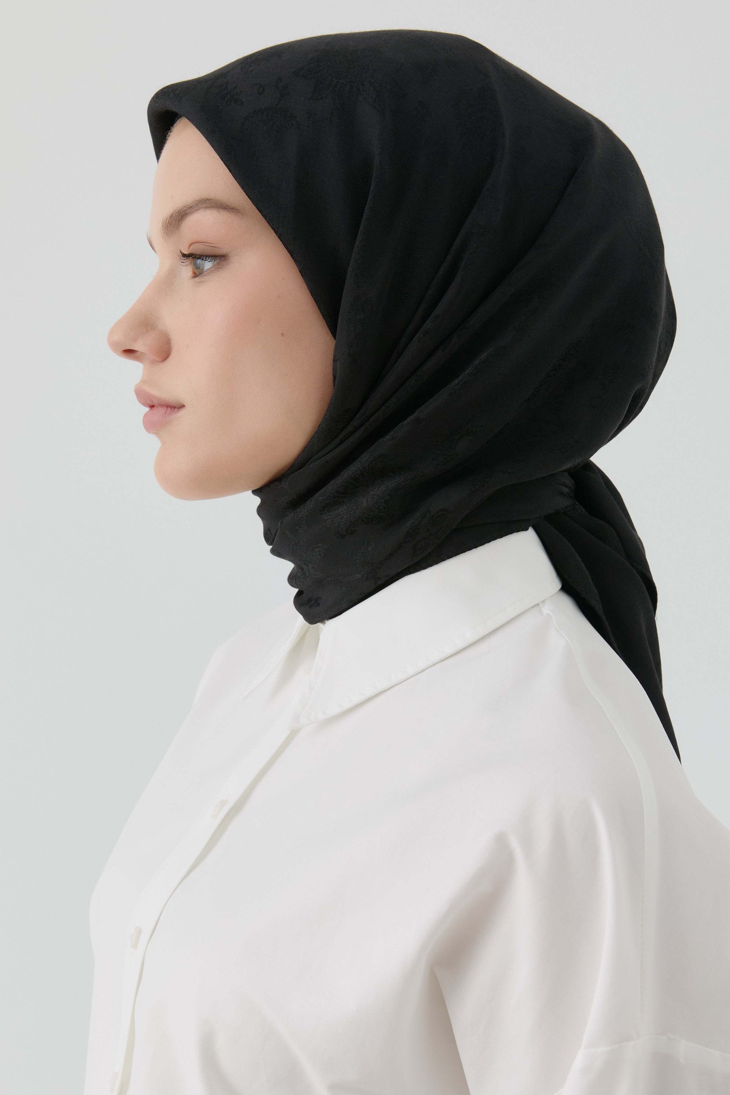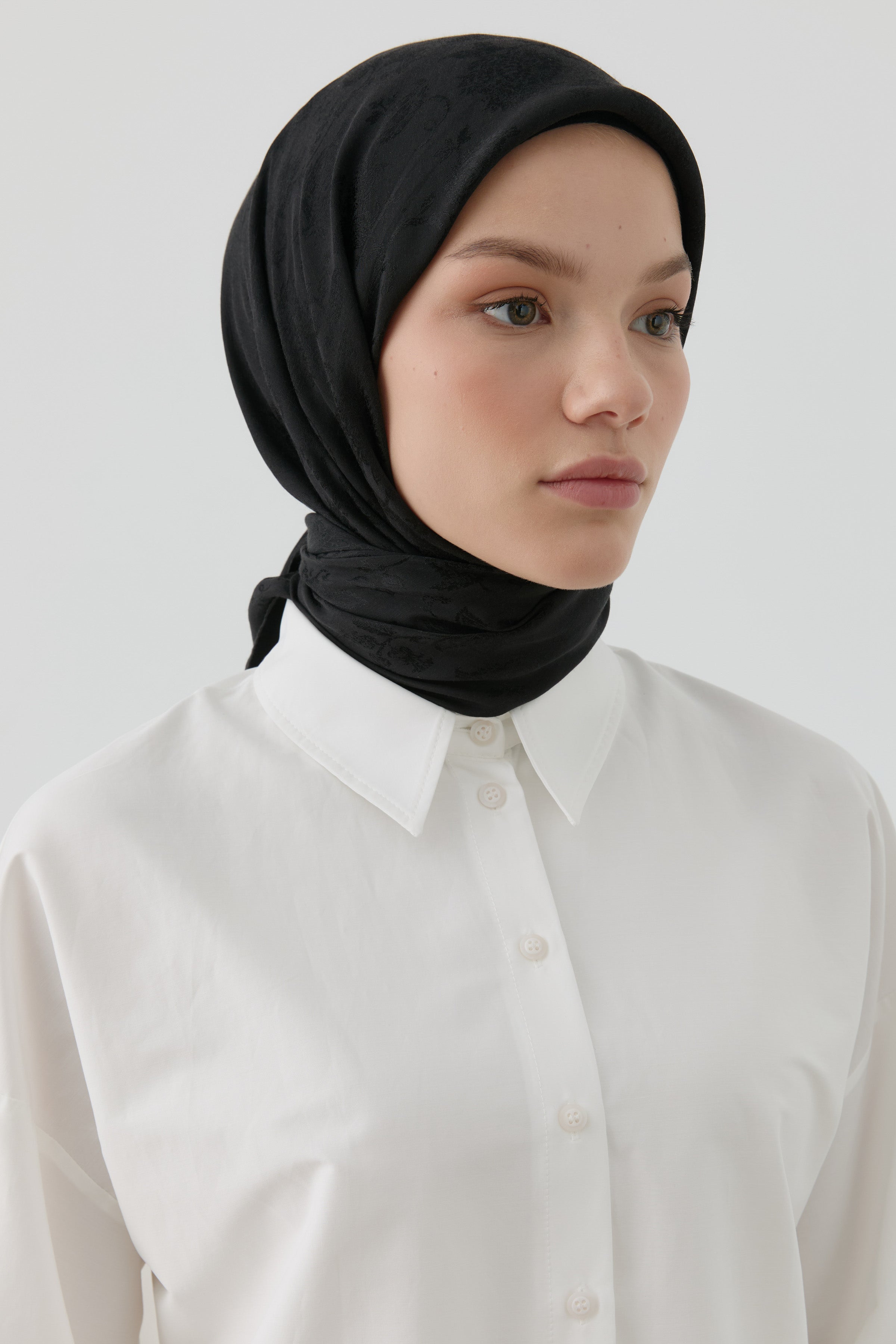 Zarif jakar dokusu ve floral desenleriyle öne çıkan eşarp, doğal yapısıyla konforlu bir kullanım sunar. Sade şıklığı sevenler için ideal bir tamamlayıcıdır.