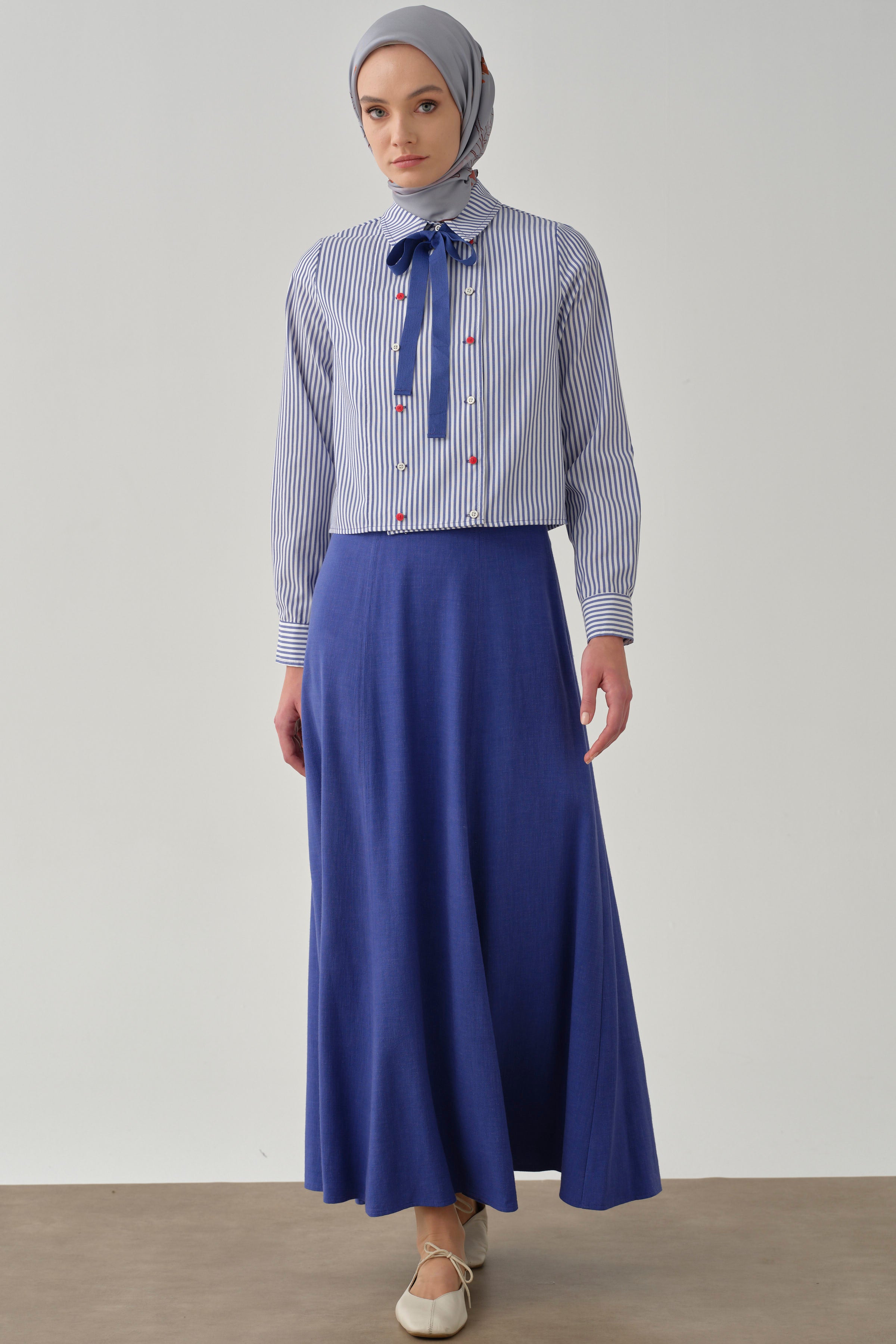Altı Parçalı Dikiş Detaylı Etek - Saks