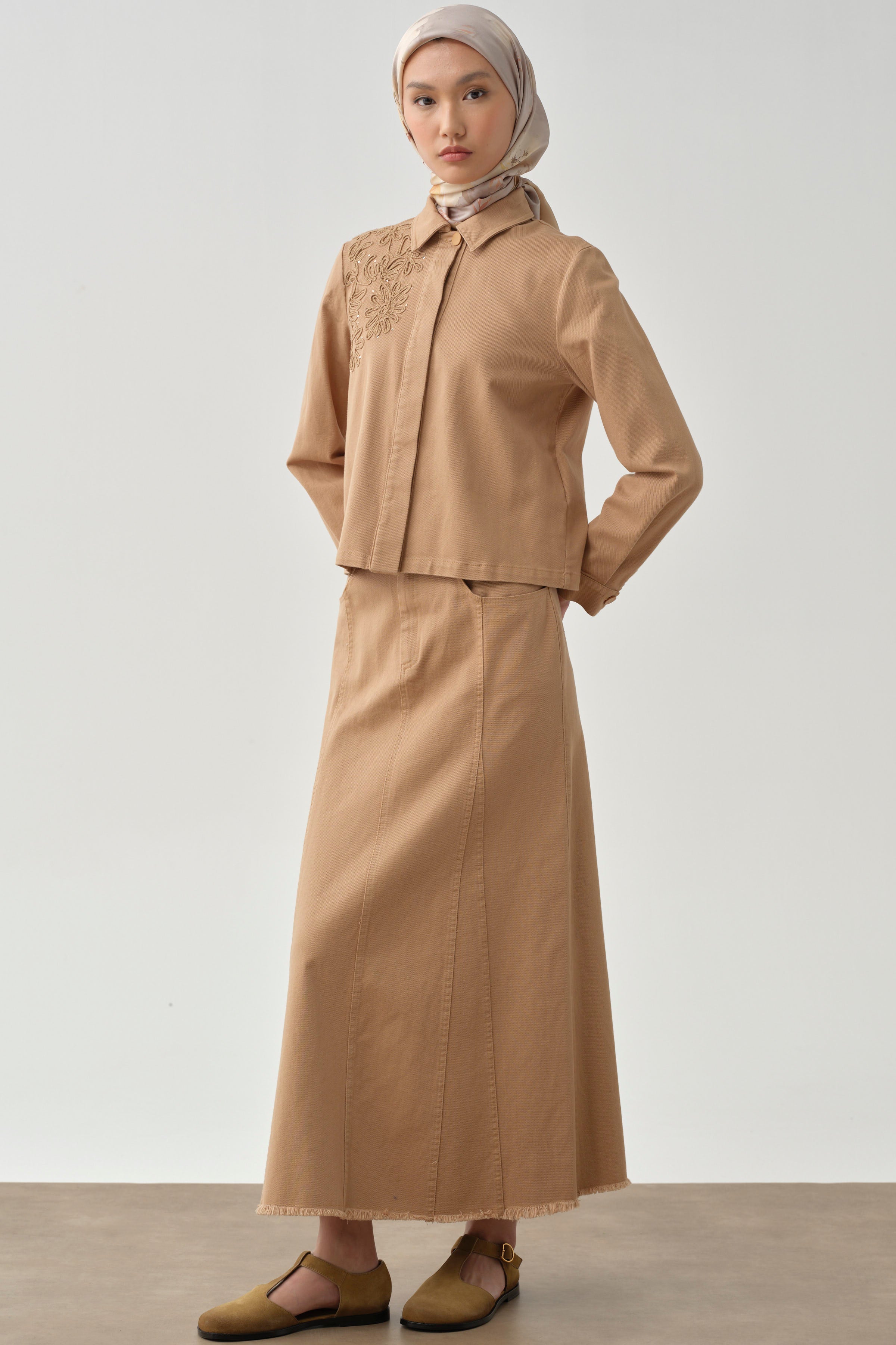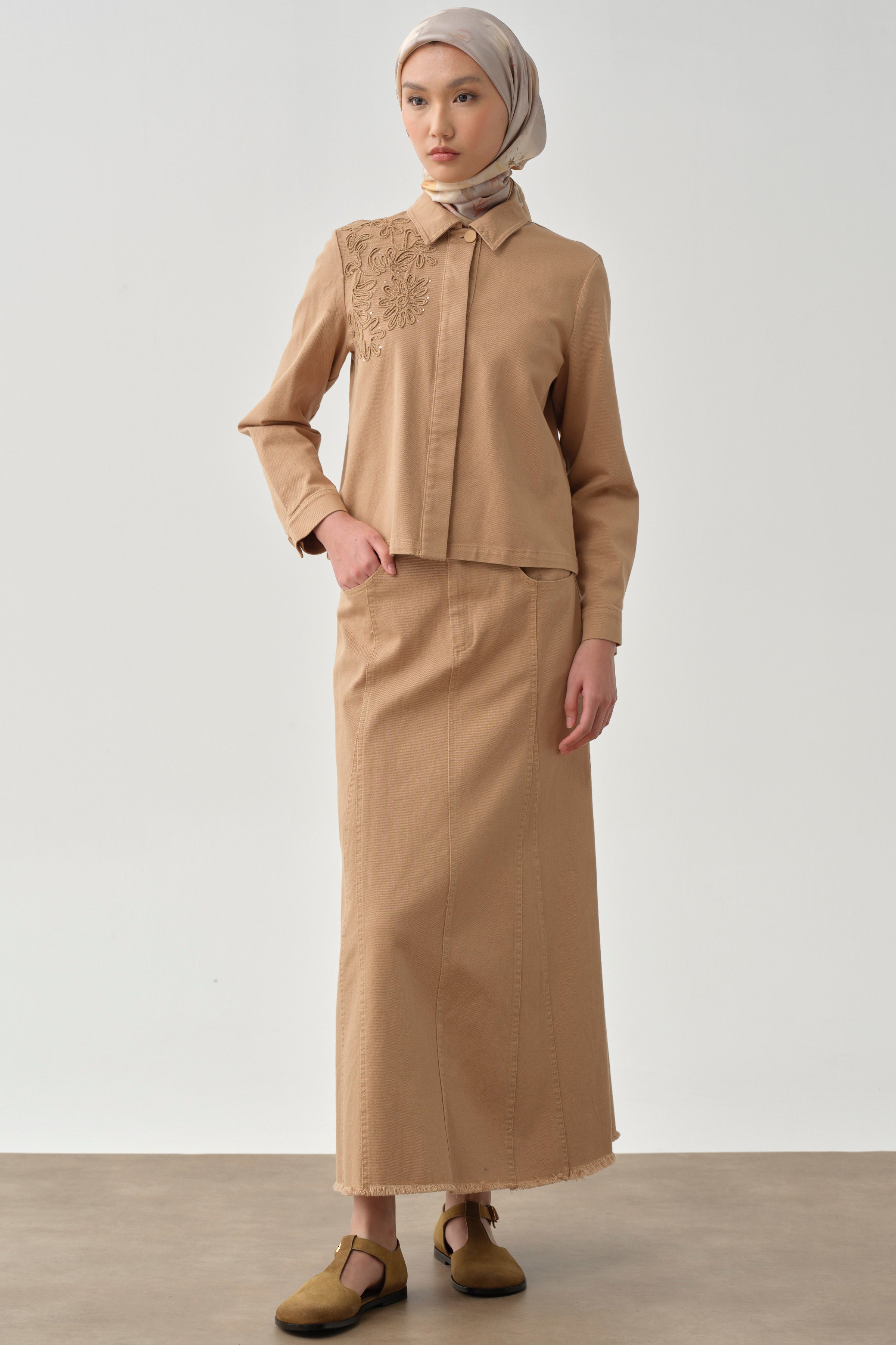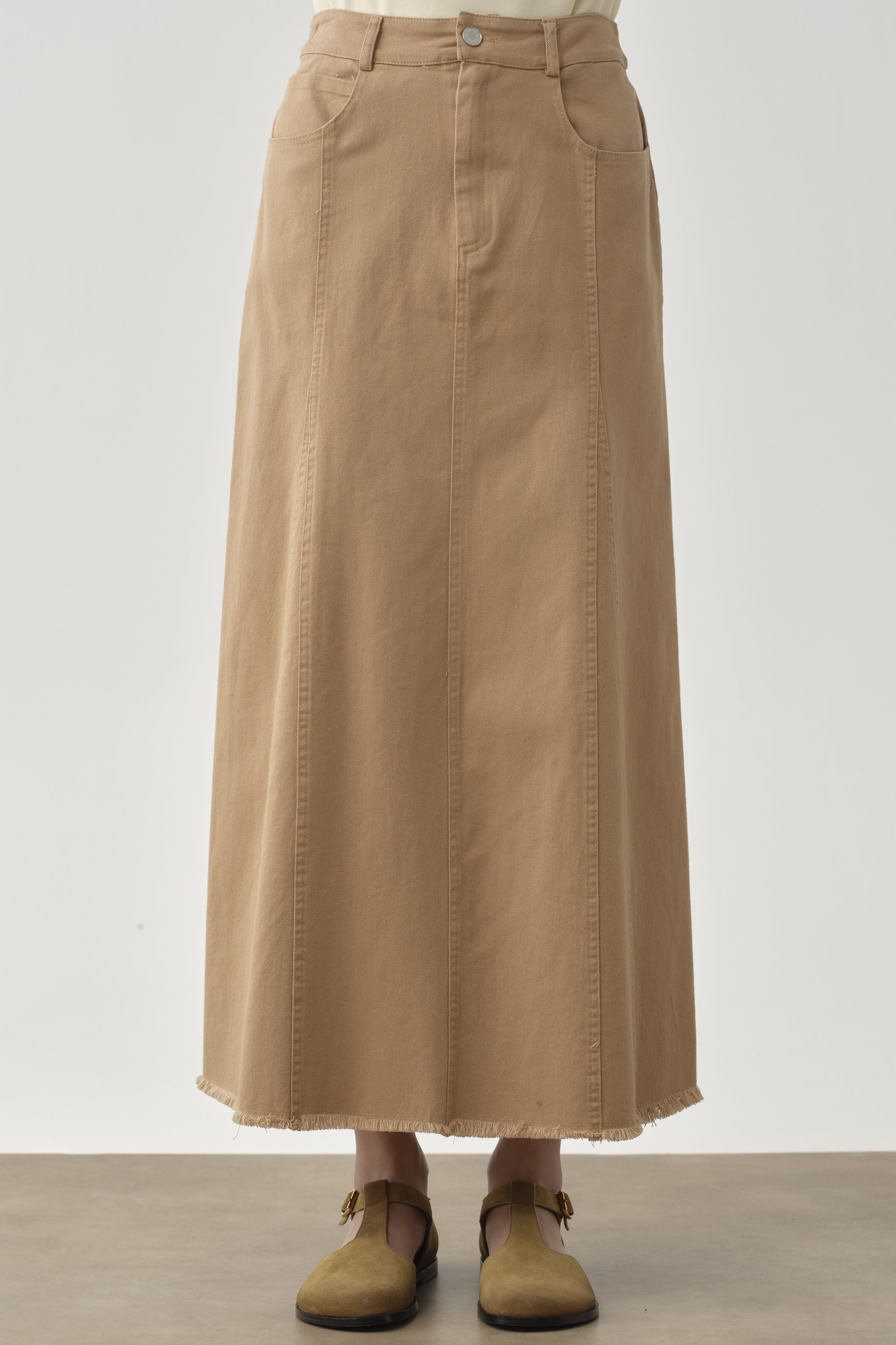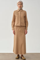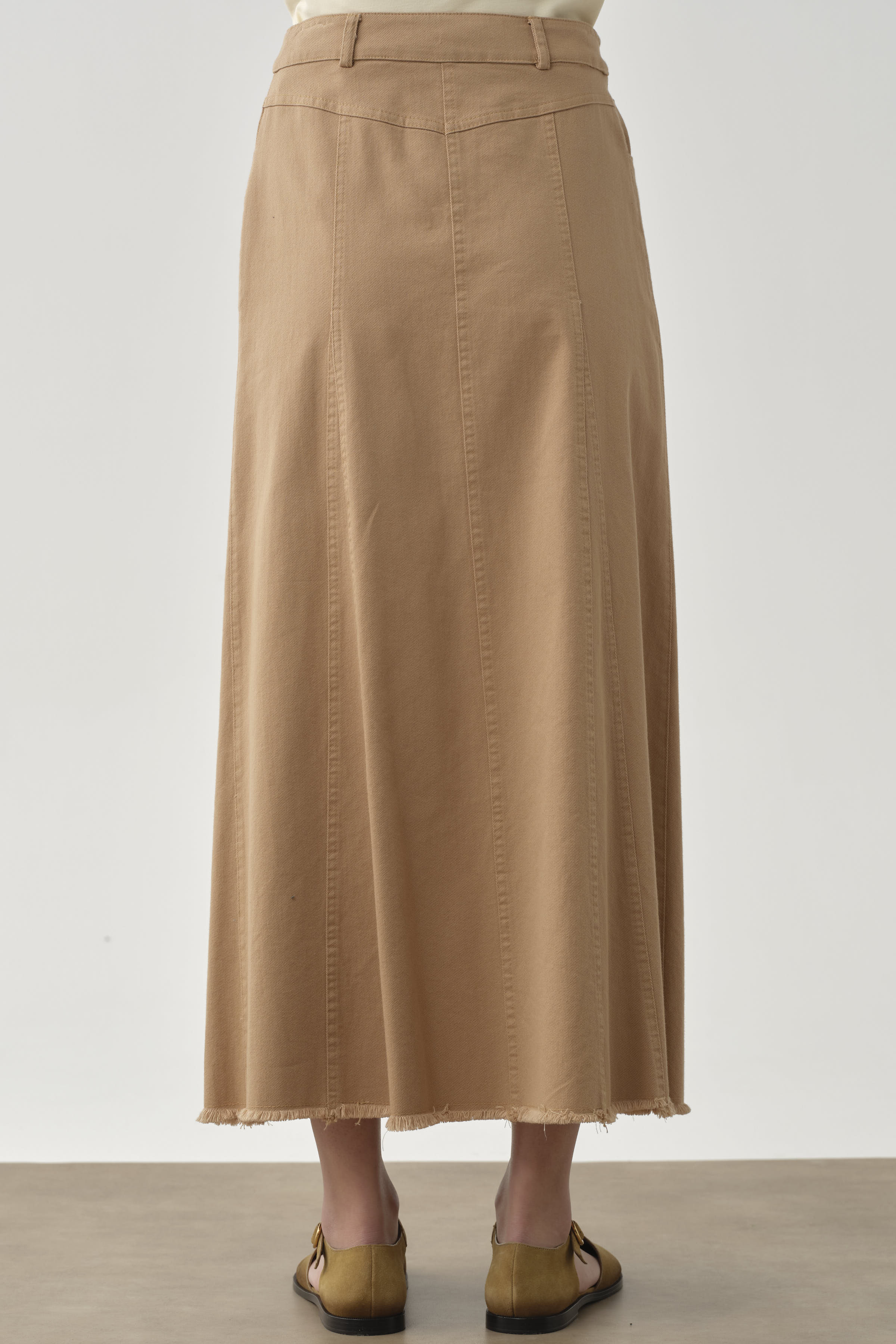 Püskül Detaylı Cepli Canvas Etek - Camel