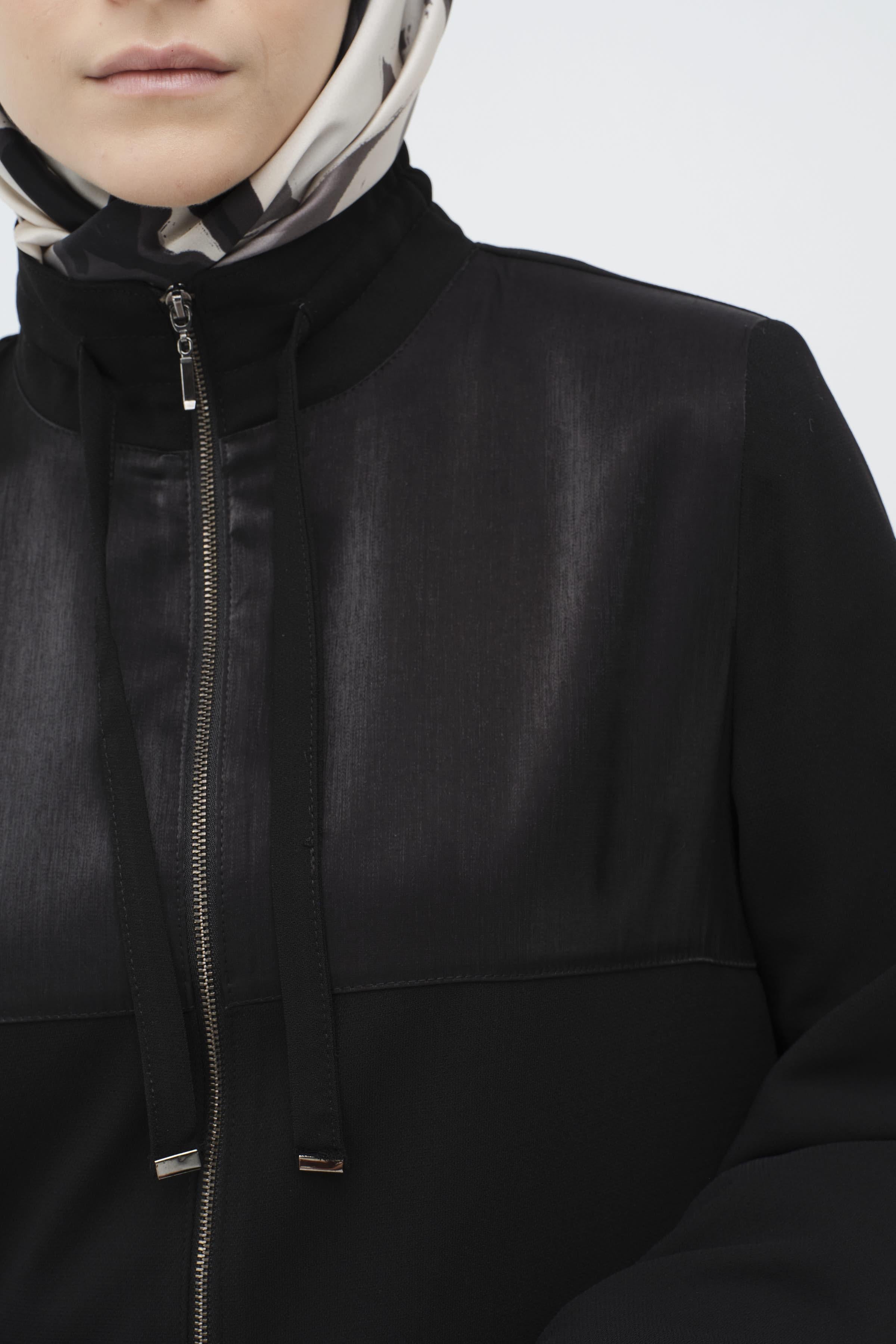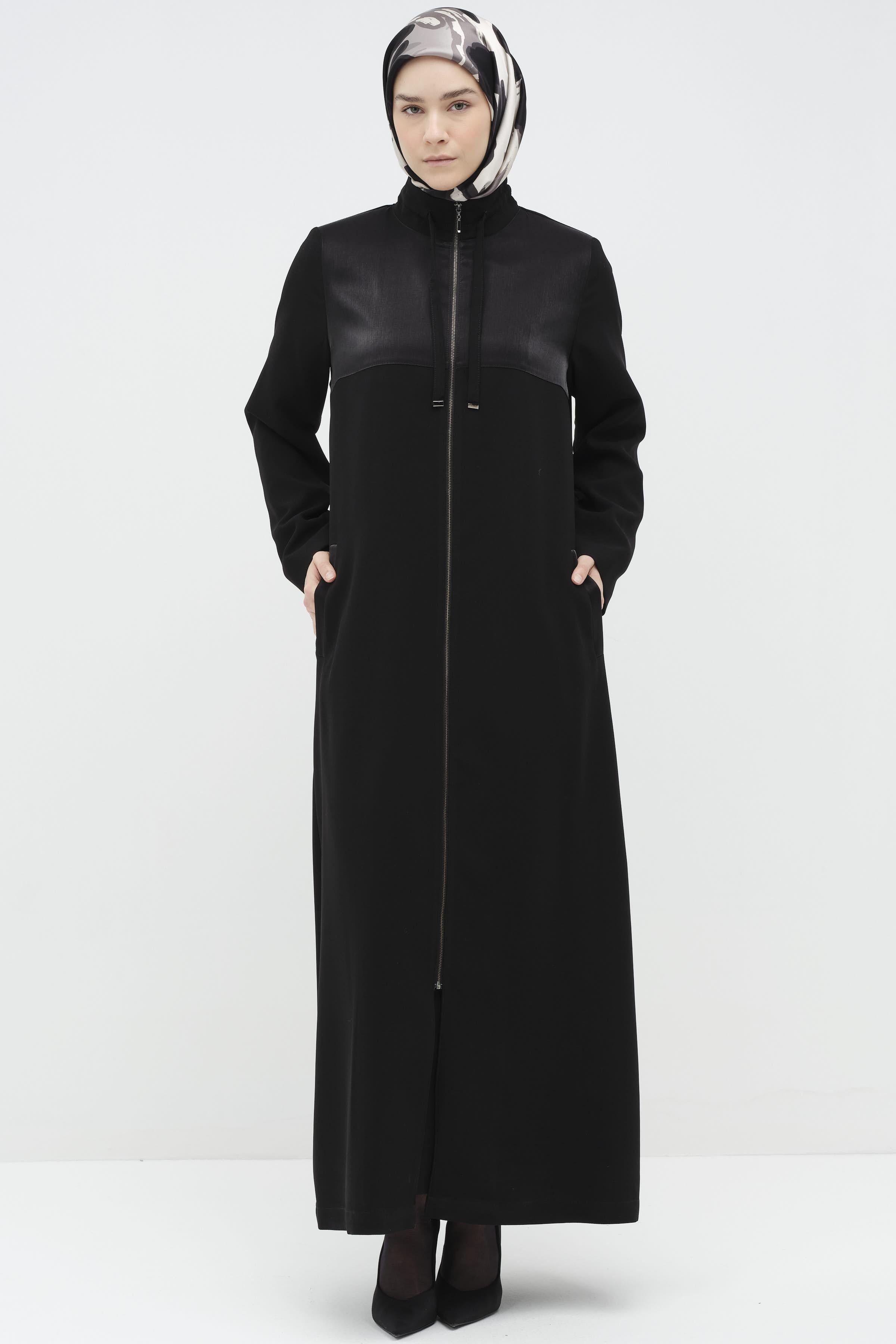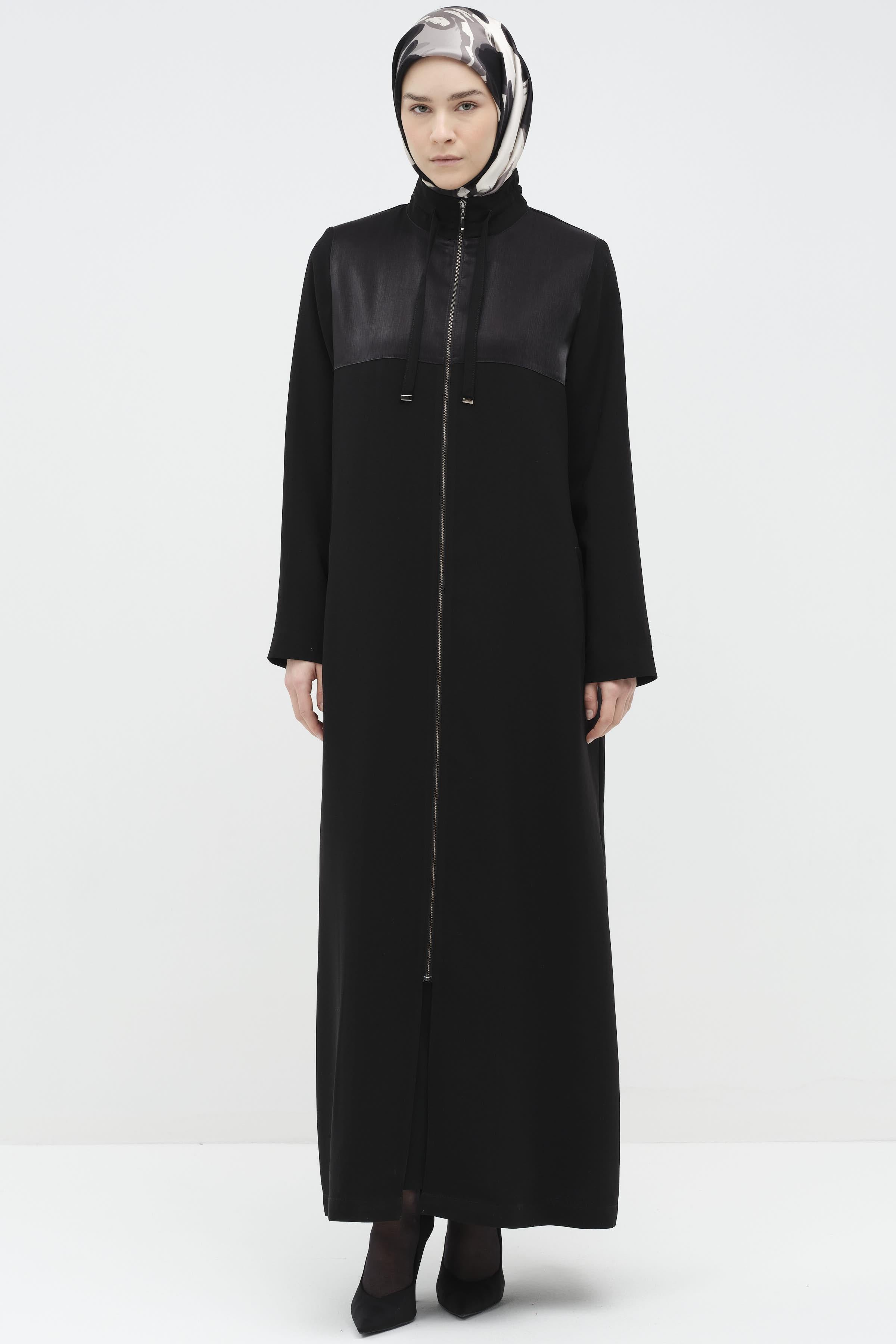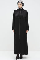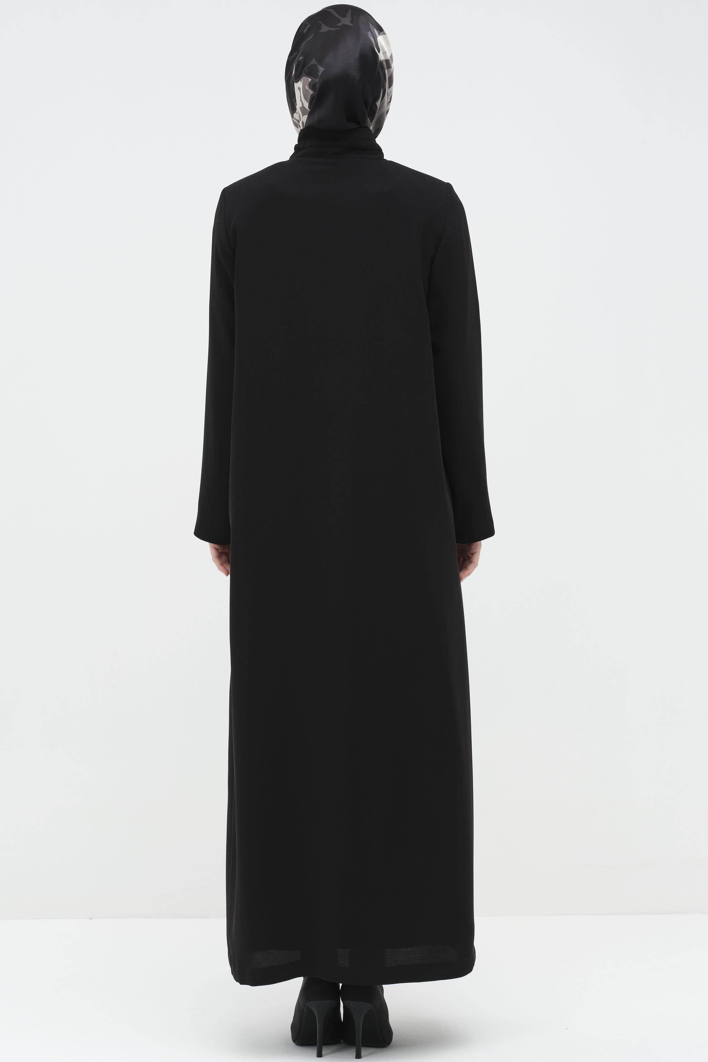Fermuar Kapamalı Garnili Ferace - Siyah